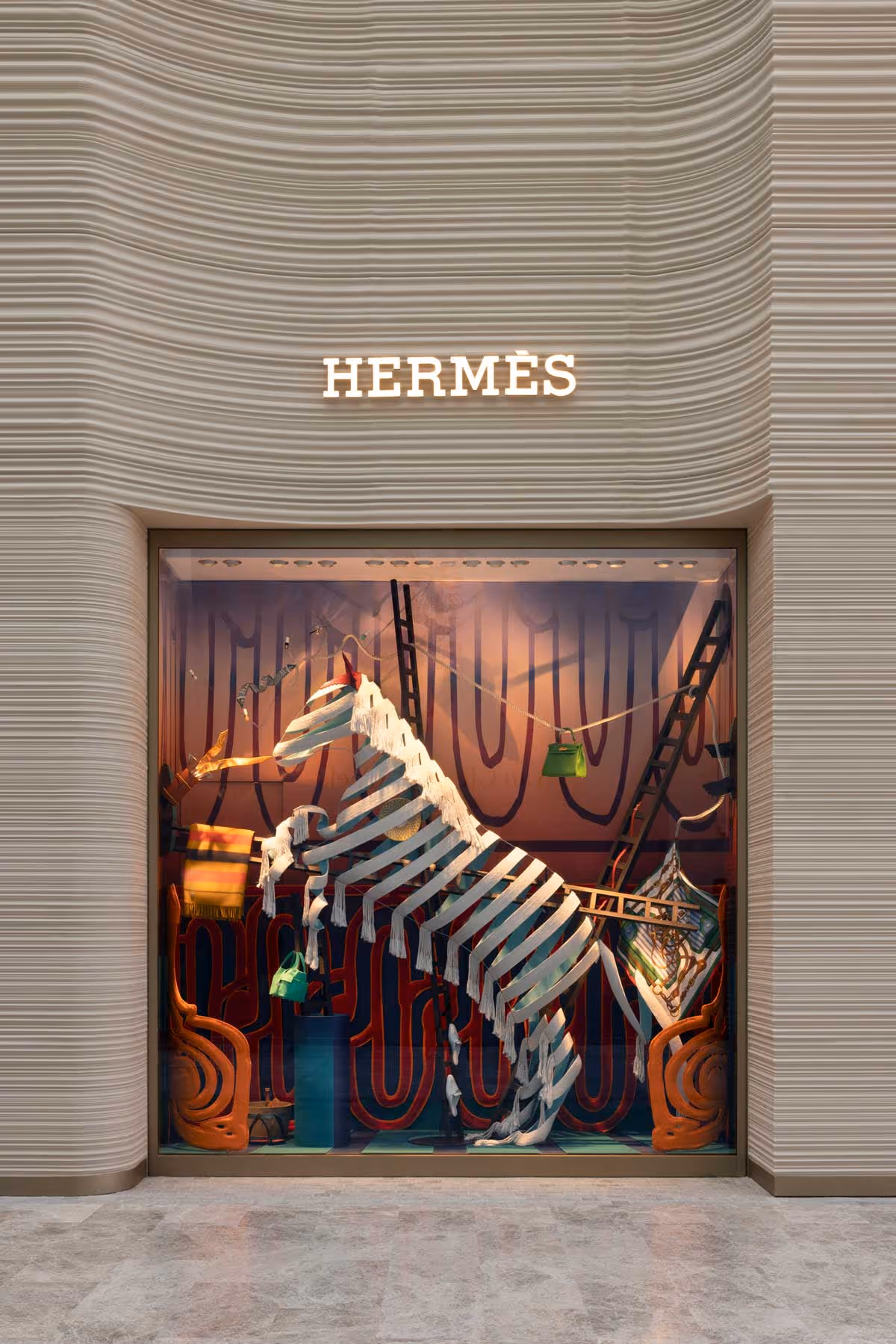 في قلب المدینة الحدیثة ودائمة التغییر، تدعو Hermès عملاءھا الأوفیاء وزوارھا الكرام إلى اكتشاف الإبداع والمھارة الحرفیّة في مجموعاتھا ضمن جو یحتفي بالإرث المحلّي من خلال التصمیم الفرید للمتجر.
