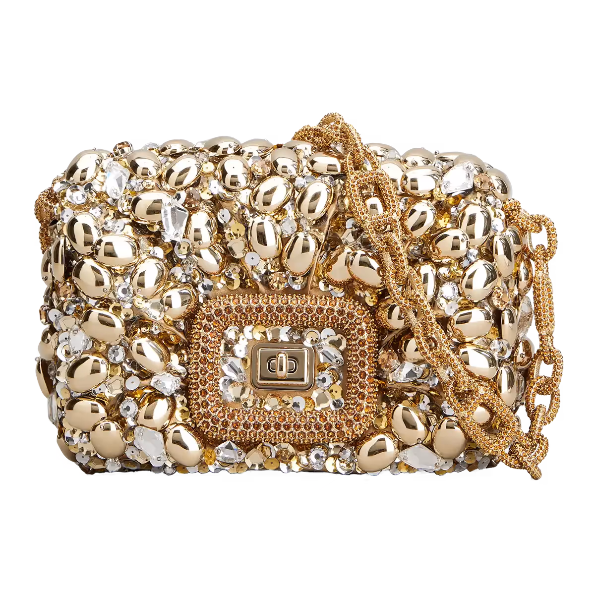 In Ancient Egypt, scarab shaped jewels were often inscribed with the names of pharaohs and queens. Indeed, the creature was a symbol of the eternal cycles of life and death, guiding royalty even in the afterlife. Still today, the creature’s unique ability to transform and navigate through darkness is seen as a biological prowess. A loyal tribute to the scarab’s natural appearance, this creation is designed using polychromatic crystals, rhinestones, and sequins, akin to the creature’s reflections of deep hues of black, indigo, blue and green. These beads and rhinestones of varying sizes, hand encrusted on black satin, make this colourful and joyful handbag an accessory but also a designer piece of jewellery on its own. The creation of this Pièce Unique took approximately 40 hours.
