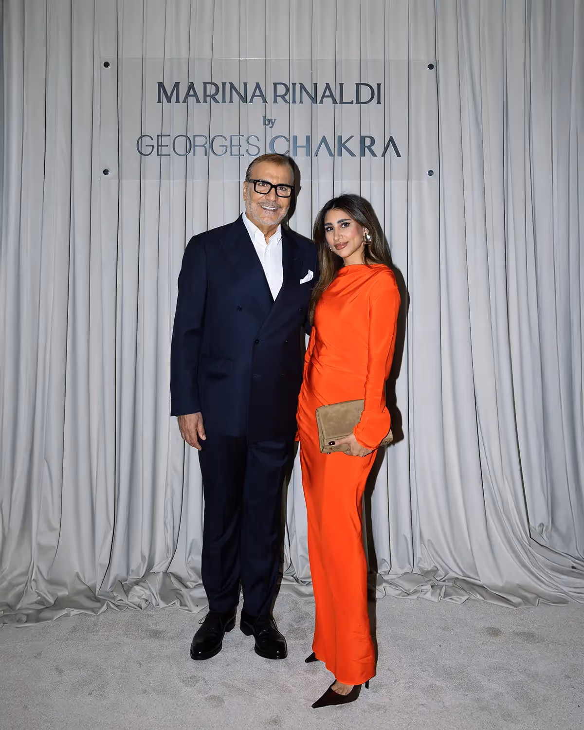 جورج شقرا، أحد أبرز مصممي الأزياء في العالم العربي، أضفى بأسلوبه المميز وبراعته في التكوين لمسة خاصة على هذا التعاون الذي يحتفي بجمال المرأة وقوتها في آنٍ واحد. وخلال الأمسية، استمتع الحضور بعرضٍ حيّ رسم فيه بخطوطه الرشيقة على الورق تصاميم تنبض بالحياة، كاشفًا عن فلسفته في الدمج بين الرقة والبنية، وبين التفاصيل الدقيقة والفخامة العصرية التي تميّز Marina Rinaldi.