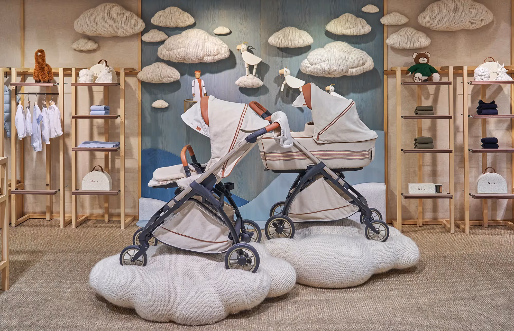 يفتح المتجر المؤقت لحديثي الولادة أبوابه ليكشف عن رؤية Loro Piana للأطفال الصغار، في عالم خيالي ناعم يفيض بالدفء والنعومة. في أرض الأحلام، حيث تعمّ الخراف الصوفية والسحب الناعمة على خلفية من الألواح باللون الأزرق الفيروزي والأثاث الخشبي المصنوع من البلوط، تشمل مجموعة الأطفال حديثي الولادة قطعًا مصمّمة بالتعاون مع شركة Inglesina. وتتألف التشكيلة من بدلات دافئة مريحة، وسترات منفوخة، ومعاطف مفصّلة، وبدلات قطنية، وقبّعات، ومرايل مصنوعة من أجود أنواع القطن والكتان والكشمير.