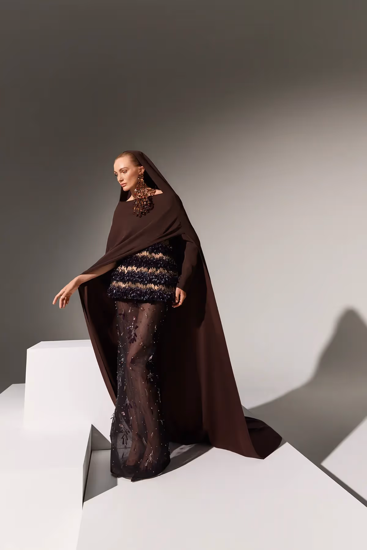 وإلى جانب التصاميم الاستثنائية، تضم التشكيلة مجموعة من الإكسسوارات المبتكرة لتعزيز جمال وجاذبية الأزياء، وتشمل أقراط مصممة من الكريستال باللونين البني والبرتقالي،وبروش للكتف مطلي بالذهب ومزين باللؤلؤ وأحجار شبه كريمة، ما يضفي رونقاً خاصاً مستوحىً من سحر الأزياء الكلاسيكية الراقية على كامل قطع التشكيلة.