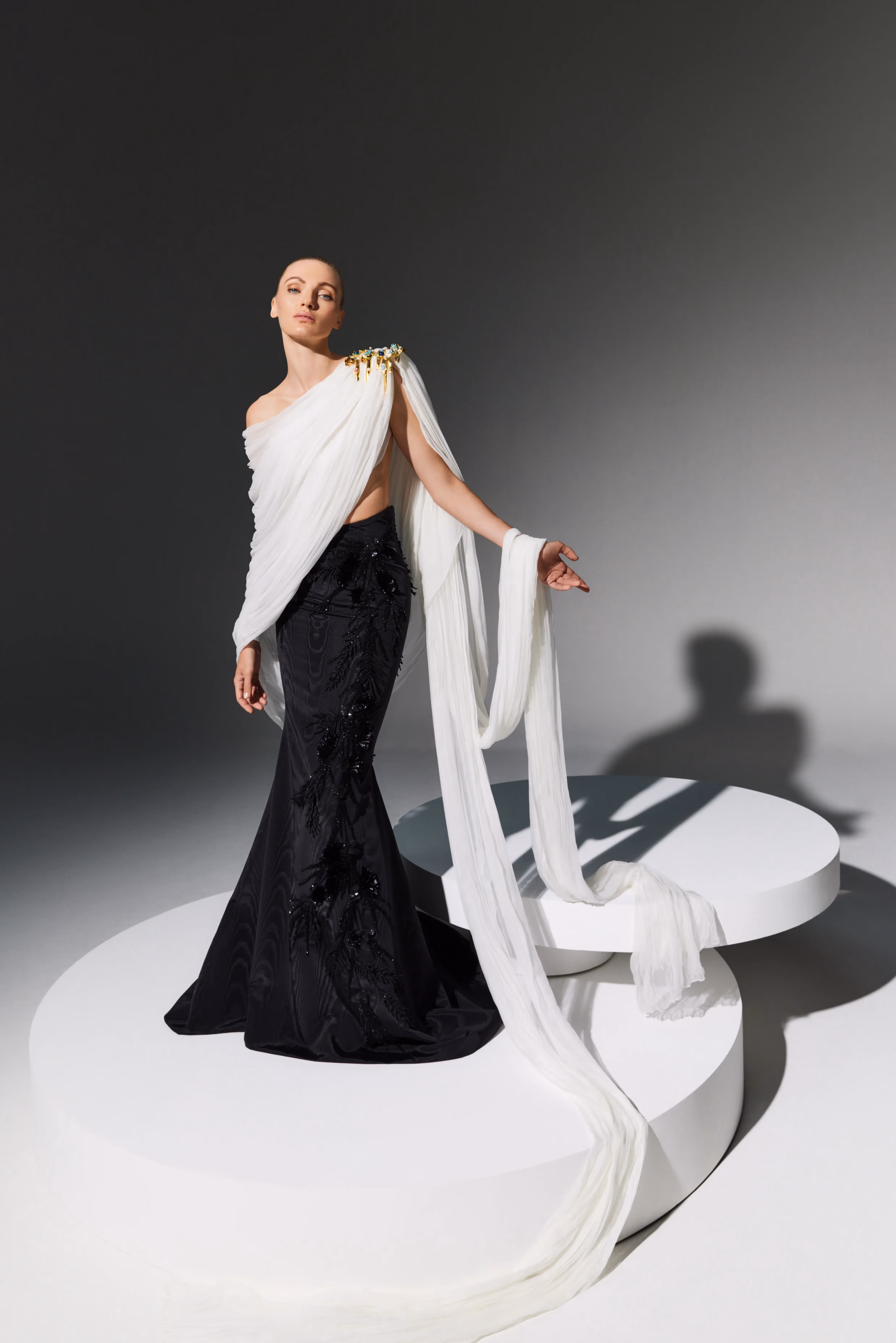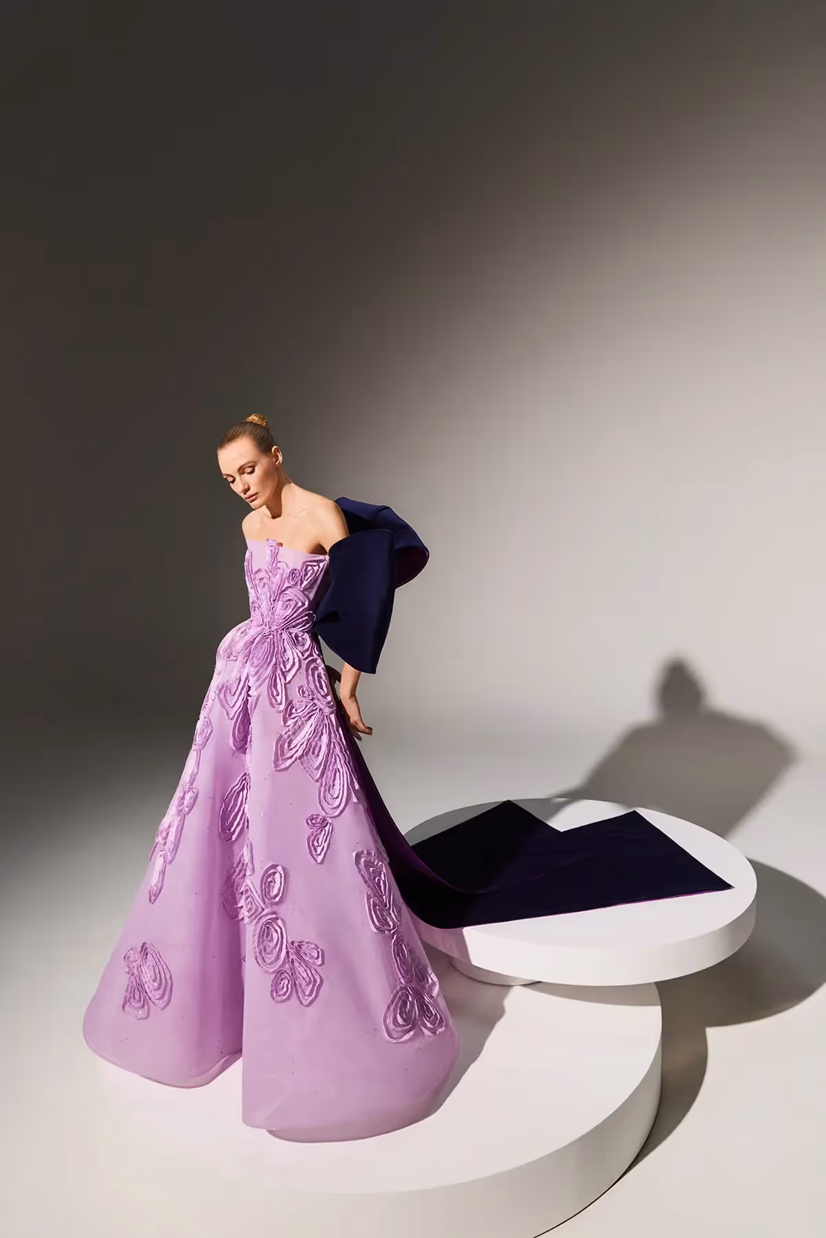 تستكشف تشكيلة "Untamed Harmonies" التفاعل بين الحرية والإبداع، مستوحيًا الإلهام من نسيج غني من التأثيرات. كلفستان هو إبداع فريد من نوعه يتجاوز حدود الموضوع الشامل، مما يعكس شغفا لمصممين تجاوز المفاهيم التقليدية في التصميم والسماح لخيالهم بالازدهار في عصر غامض حيث الهروب من الواقع أمر ضروري