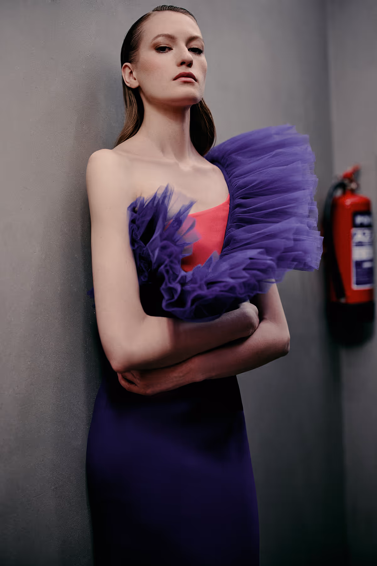 وتشكل القصات الهندسية المستوحاة من فن العمارة أساس تشكيلة Fourteen Reasons، في صورةٍ تعكس الإحساس بالقوة والقدرة على التكيف وتتكامل مع تفاصيل أنثوية رقيقة. وتبرز ضمن التشكيلة قصات هندسية تشبه السترات الرسمية إلى جانب السراويل المميزة بقصاتها المحددة، والفساتين الأنيقة التي تعزز الإحساس بالانسيابية والحركة. وتتألق القطع بتصاميم مبتكرة من أفخم أنواع الأقمشة، مثل الجلد بألوان مطفية والدانتيل المميز بتفاصيل هندسية والساتان، والتي تضفي جميعها إحساساً بالعمق إلى إطلالات التشكيلة التي تجمع بين الأناقة العصرية والكلاسيكية.