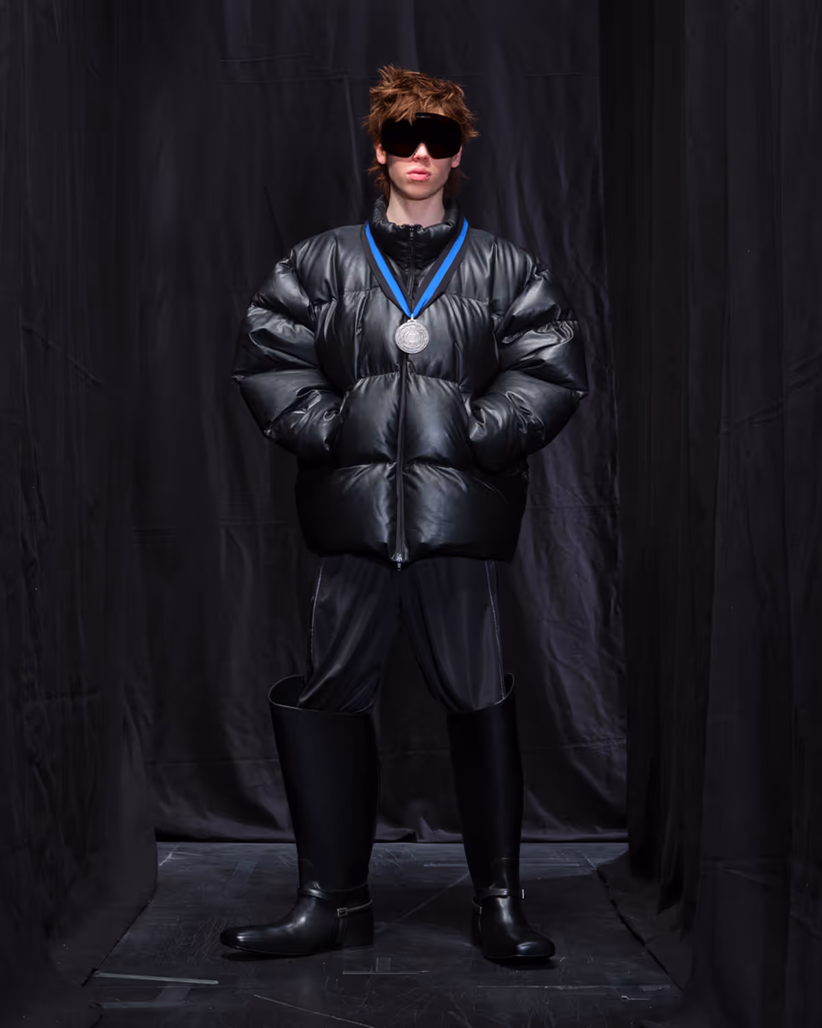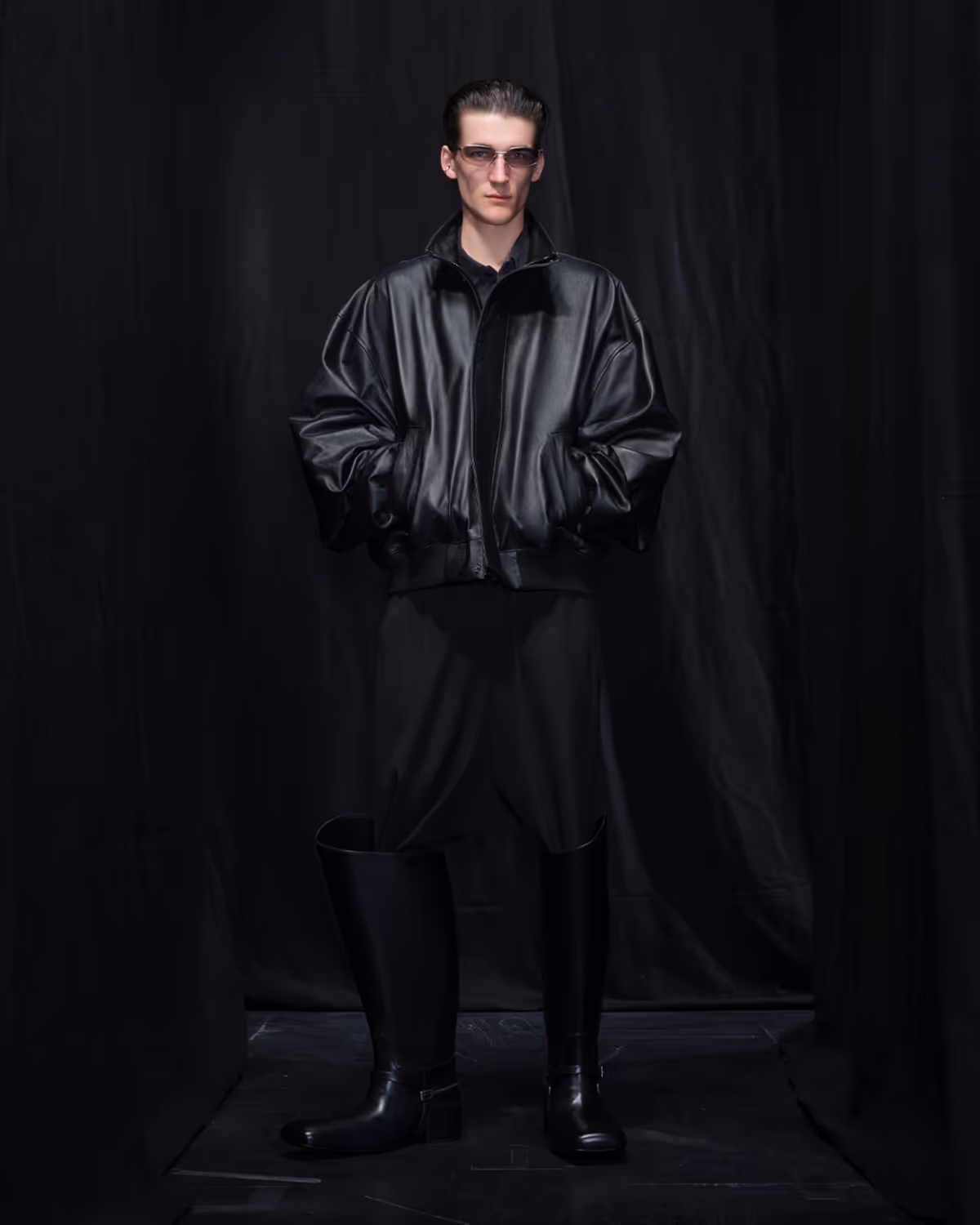 مشدداً على قابلية التكيف من النهج التشريحي، تم تصنيع ملابس خارجية نموذجية في أسلوب ديمنا: هارينغتون بومبر، جاكيت خلد موليتون مبطن، ومعطف بافر، تليها أطقم ملابس عمل راكبي الخيول التي تنتهي بروب حمام سويد من بالنسياغا I بوما مبطنة بموليتون عكسي.