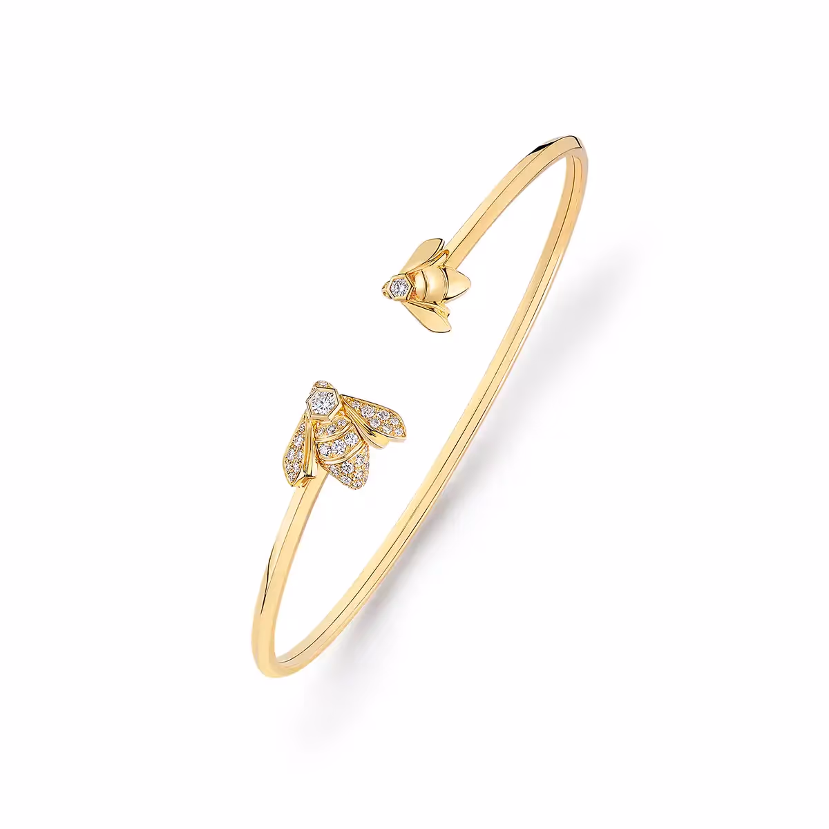 تؤكّد النحلة المُتطوّرة باستمرار على إمكاناتها المُميّزة فتظهر بأشكال وأحجام مُختلفة هذا العام. على خاتم بخطوط مُحدّدة، يقوم الألماس المرصوف بتعزيز قيمته. على قلادة أو كقرط أذن مسماري رقيق، يكون شكلها أكثر بساطة، مع بطن وأجنحة من الذهب المصقول الناعم أما الرأس فمُرصّع بحجر ماسي بالقطع اللمّاع. على سوار مُخرّم بفتحة مرنة لا تُعيقالمعصم، مُستوحى من شعار toiet moi "توا إي موا"، يجمع بين هذين التمثيلين على قطعة واحدة من المجوهرات، مما يدلّ على تنوّع استخدام تصميم النحلة.