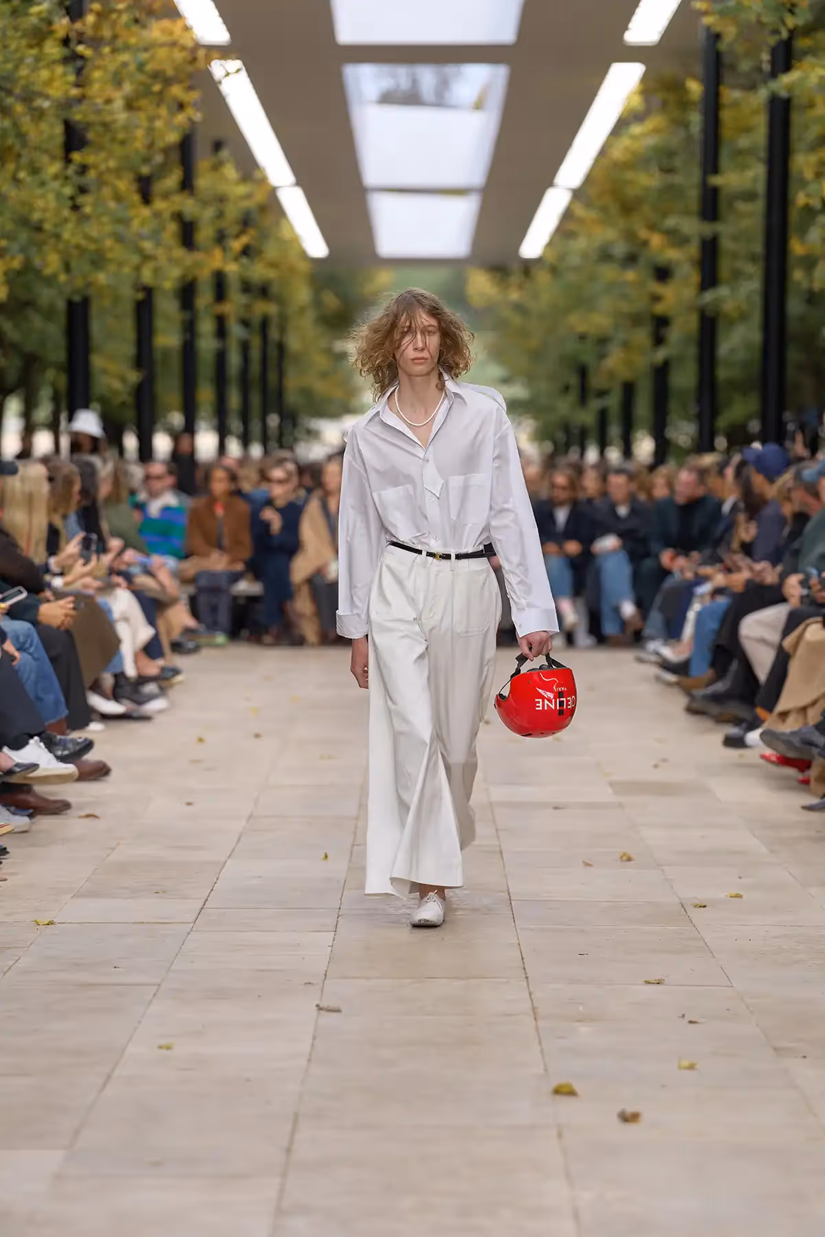 في هذا العرض، اتخذ مايكل رايدر، المدير الإبداعي الجديد للدار، منظورًا مختلفًا وملموسًا للألبسة الجاهزة، مع تقديم رؤيته الأولى الرسمية للملابس الجاهزة بطريقة واضحة ومتميزة. لقد كسر رايدر تقاليد اختيار المكان المعتاد للعروض، فاختار بدلاً من الصناديق البيضاء أو المخازن المنسية موقعًا بعيدًا 45 دقيقة غرب باريس، في حديقة سانت كلود الواسعة، التي تتجاوز مساحتها 1000 فدان، حيث المساحات الخضراء المثالية والسماء الزرقاء، لتصبح الشمس والضوء جزءًا من تجربة العرض.