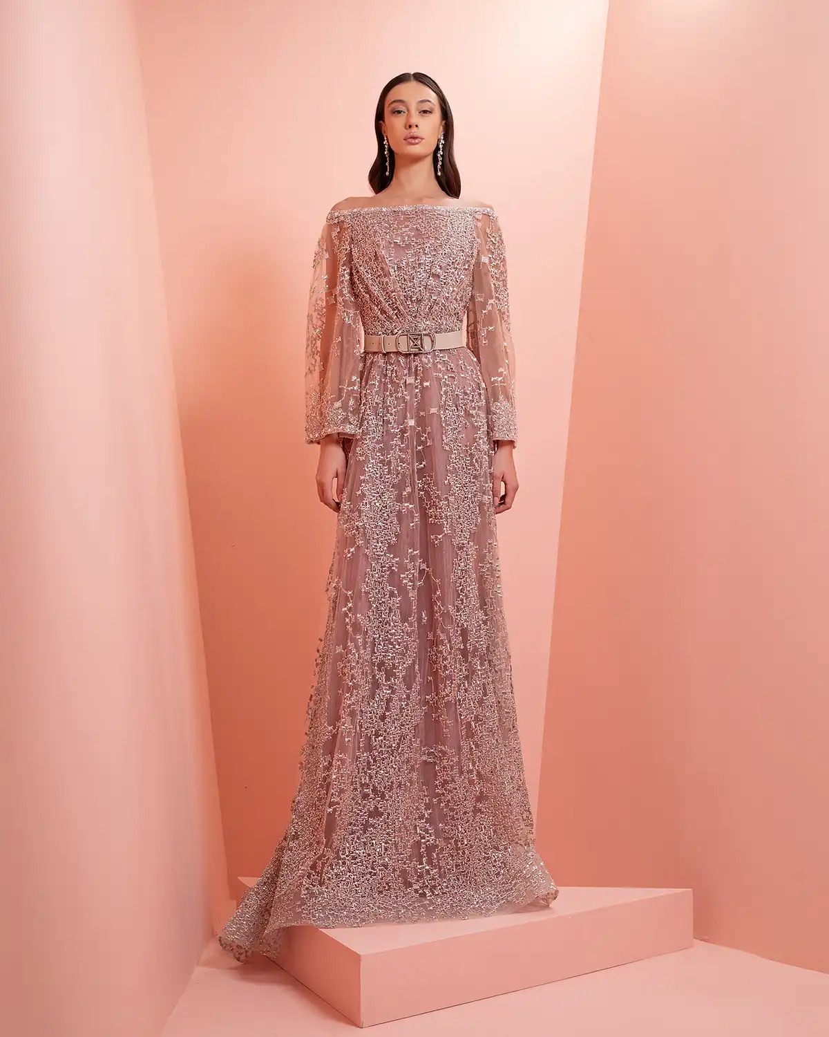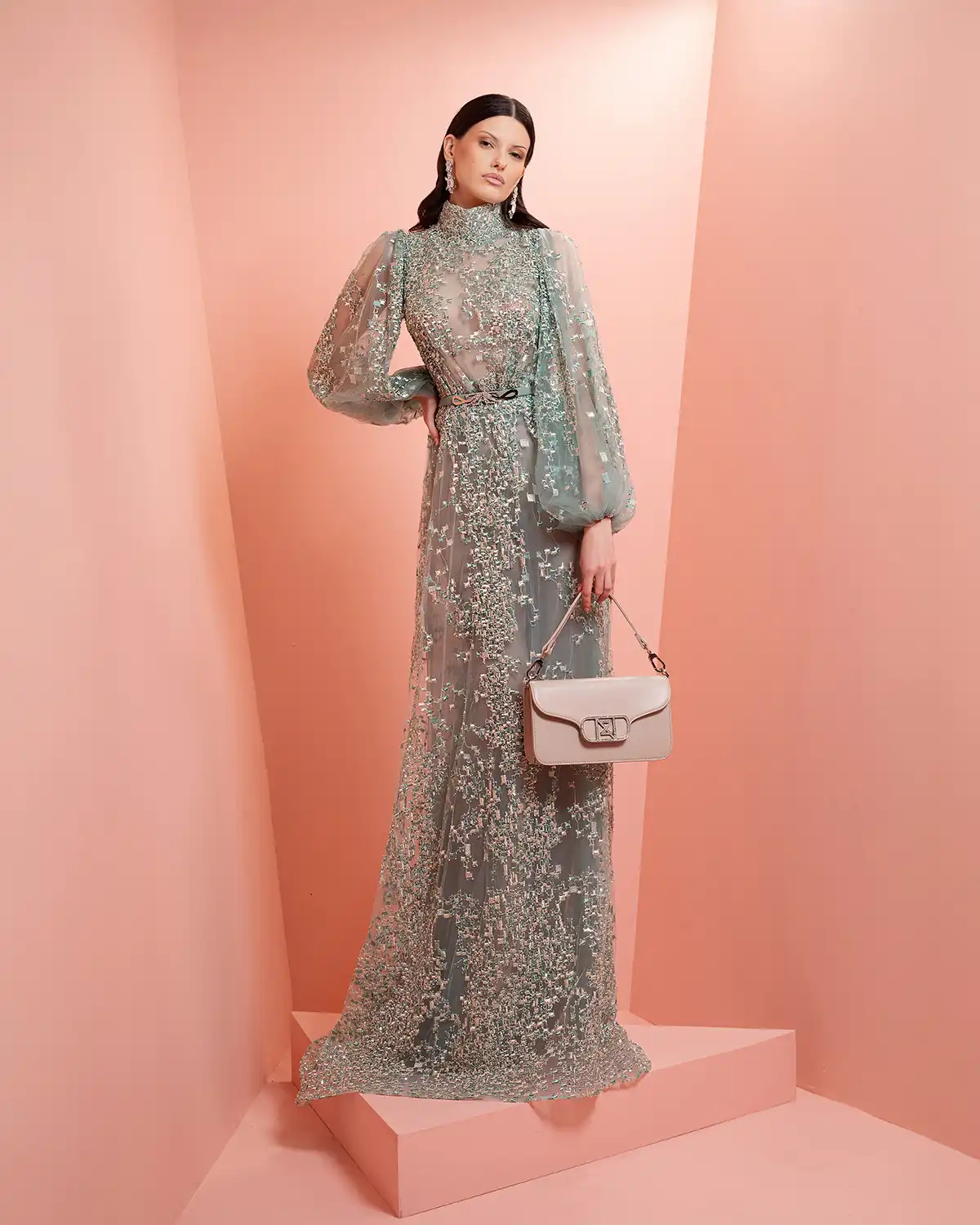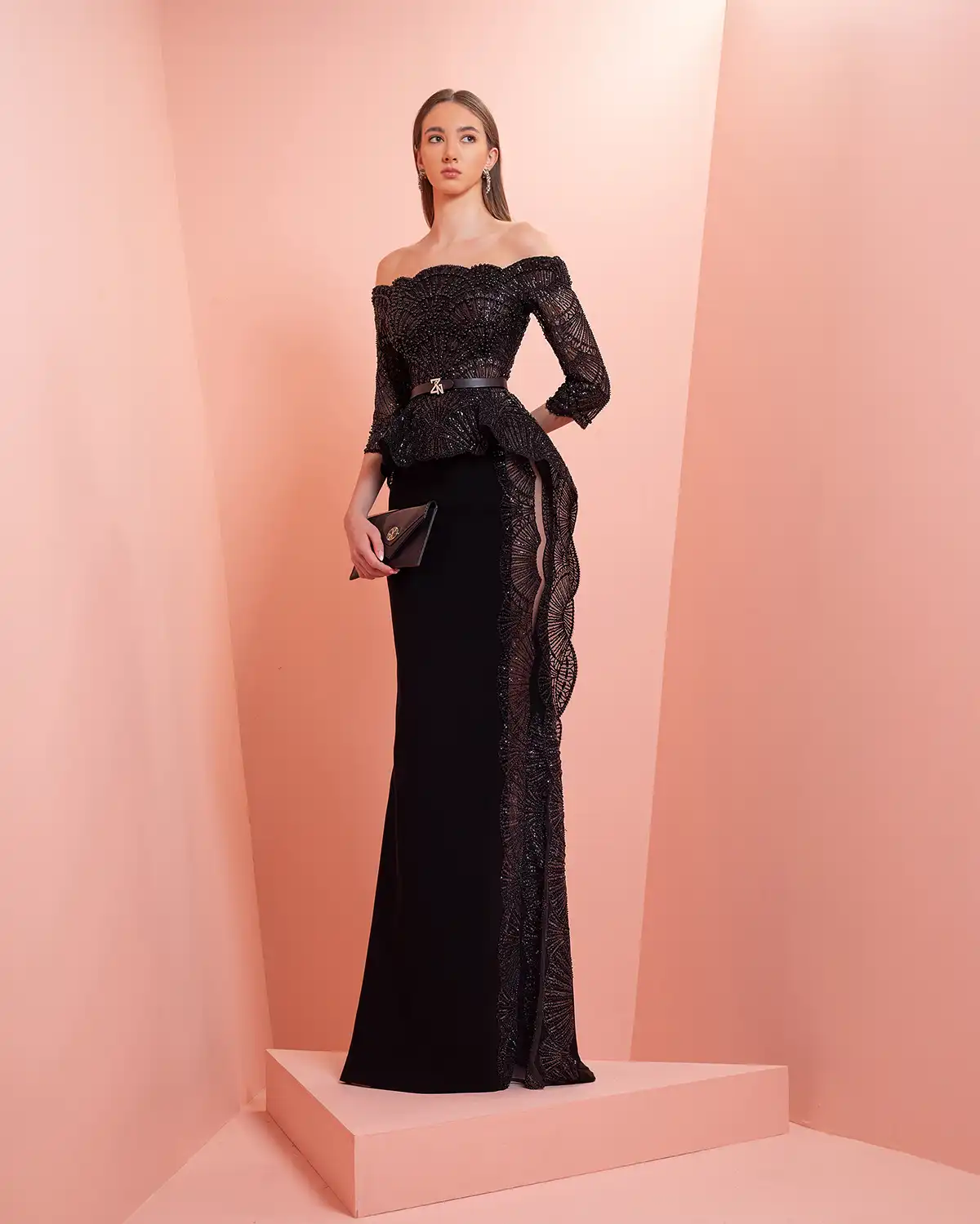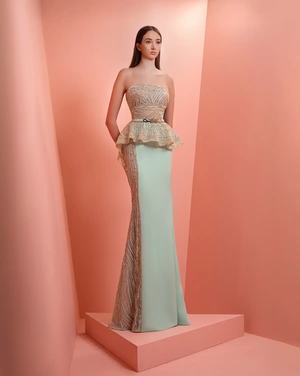يحمل اسم المجموعة "NUANCE" أكثر من معنى، إذ يعكس مفهوم التدرّج على مستويات عدة. يظهر ذلك أولاً في الألوان التي تتنقل بين الدرجات الفاتحة والقوية أو تمتزج بانسيابية داخل القطعة الواحدة. كما يتجلى التدرّج في الأقمشة المستخدمة، من الكريب والشيفون إلى التول والدانتيل، مرورًا بالريش الذي يضيف لمسة حالمة ودرامية، وصولًا إلى التصاميم المزدانة بالشك والتطريز اللامع التي تضفي بريقًا ناعمًا.