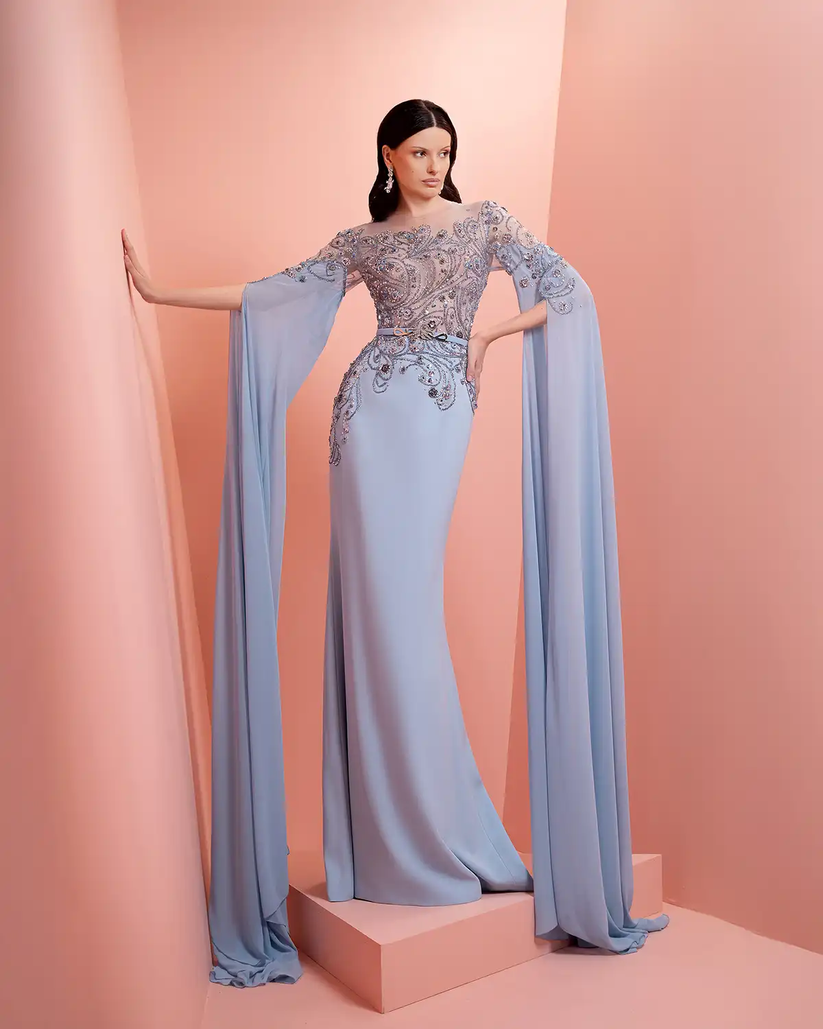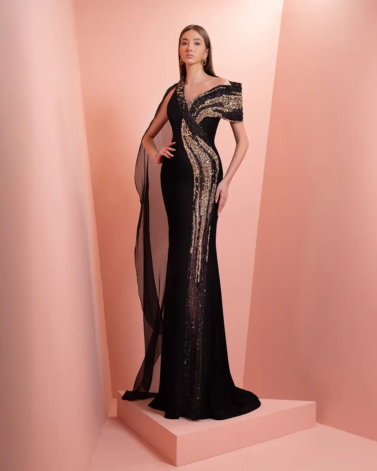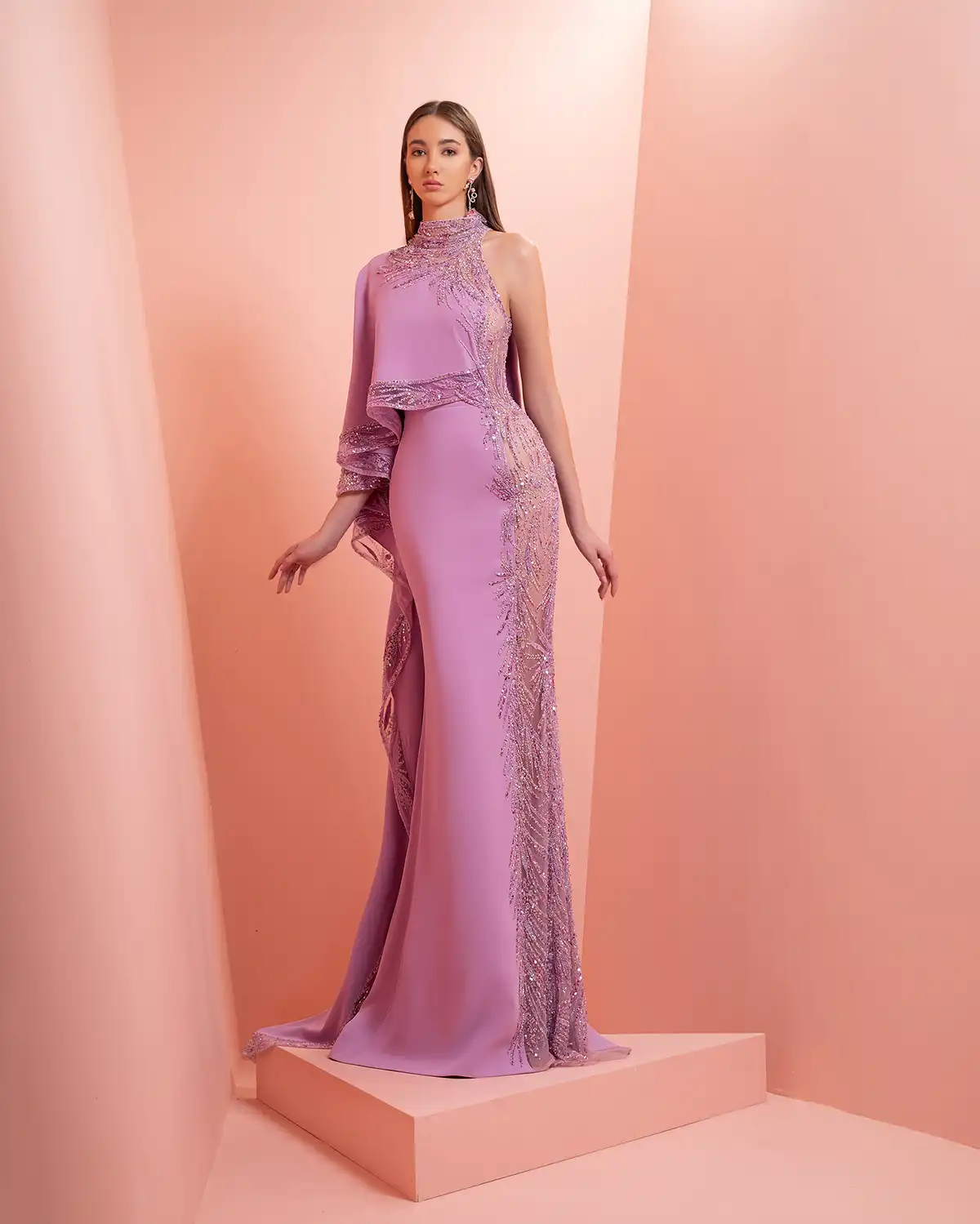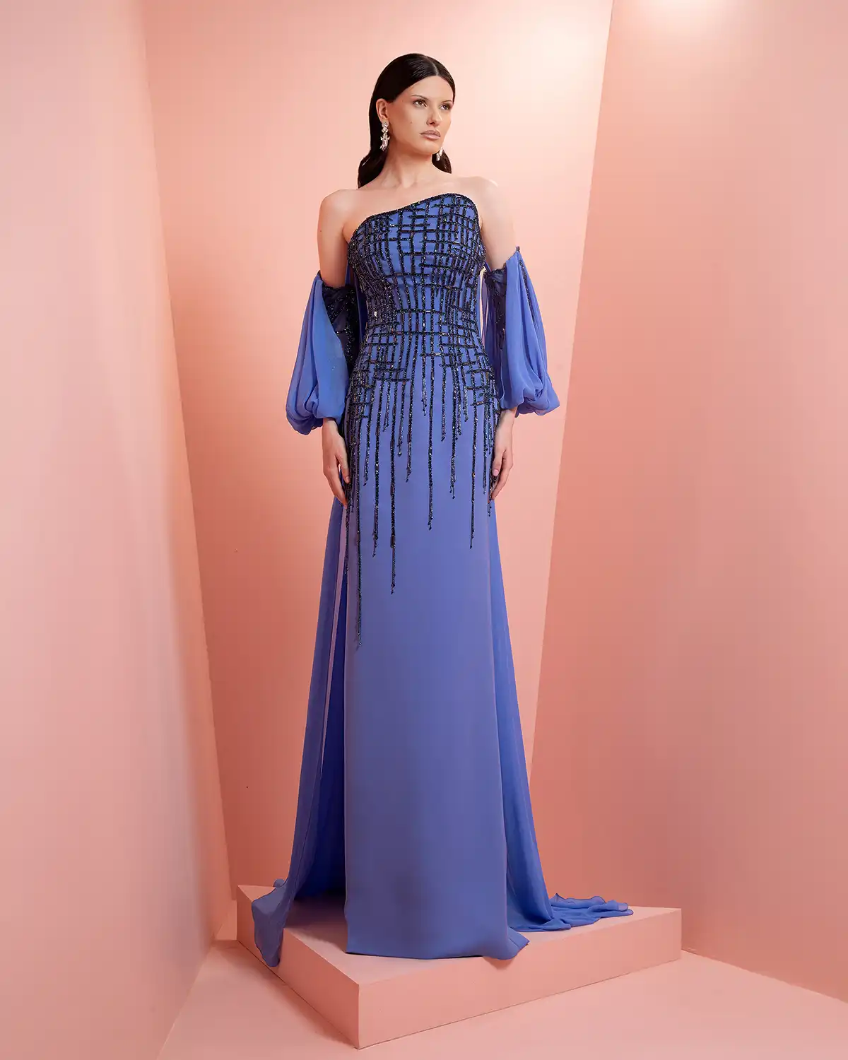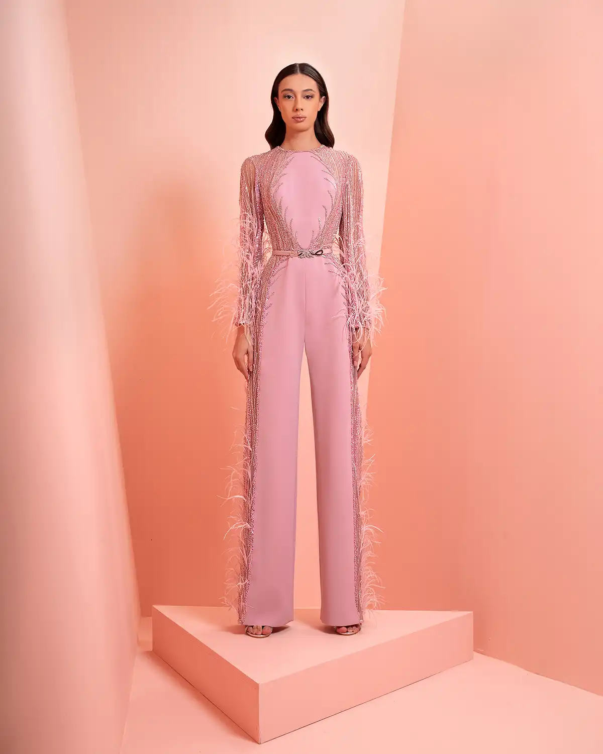 يحمل اسم المجموعة "NUANCE" أكثر من معنى، إذ يعكس مفهوم التدرّج على مستويات عدة. يظهر ذلك أولاً في الألوان التي تتنقل بين الدرجات الفاتحة والقوية أو تمتزج بانسيابية داخل القطعة الواحدة. كما يتجلى التدرّج في الأقمشة المستخدمة، من الكريب والشيفون إلى التول والدانتيل، مرورًا بالريش الذي يضيف لمسة حالمة ودرامية، وصولًا إلى التصاميم المزدانة بالشك والتطريز اللامع التي تضفي بريقًا ناعمًا.