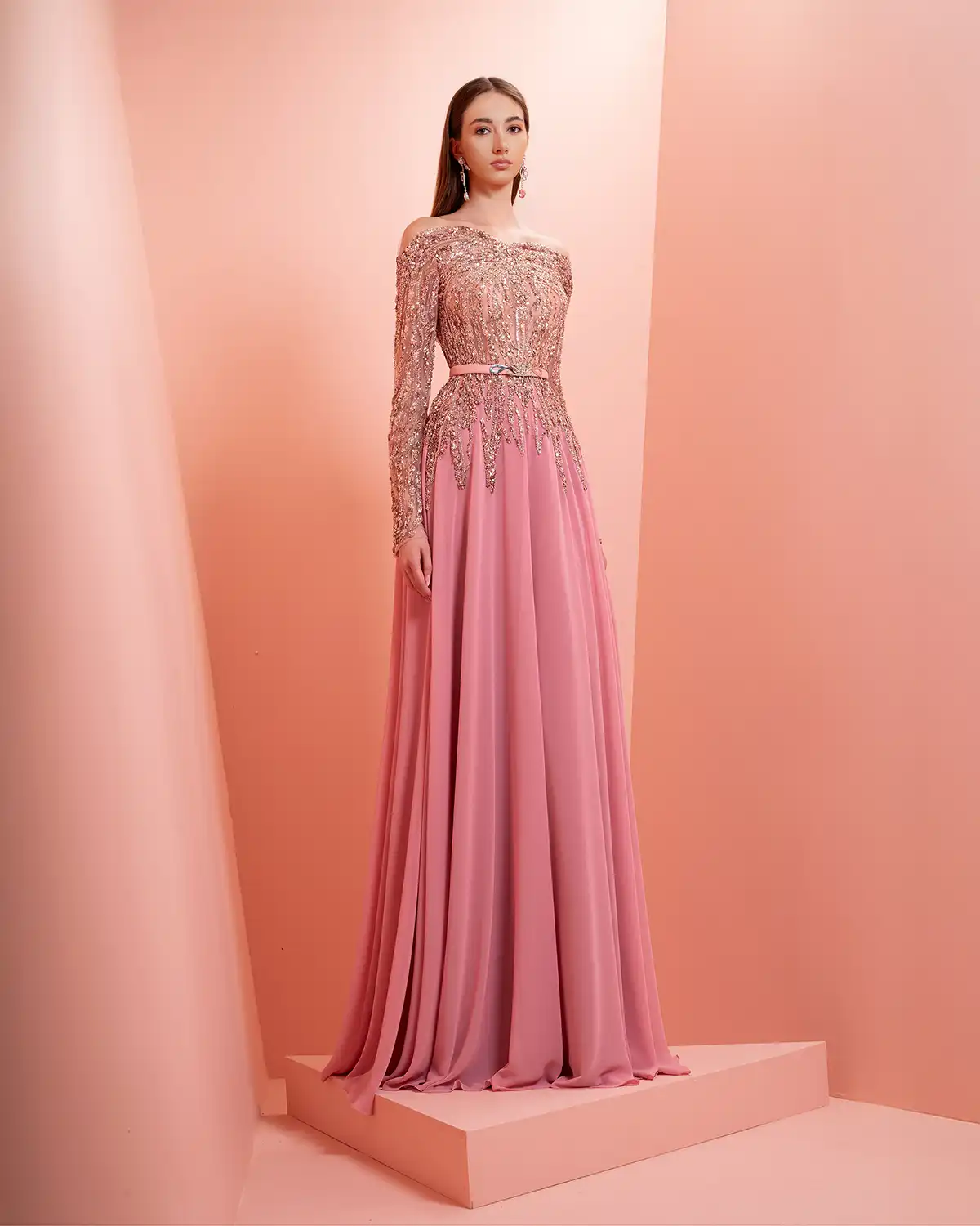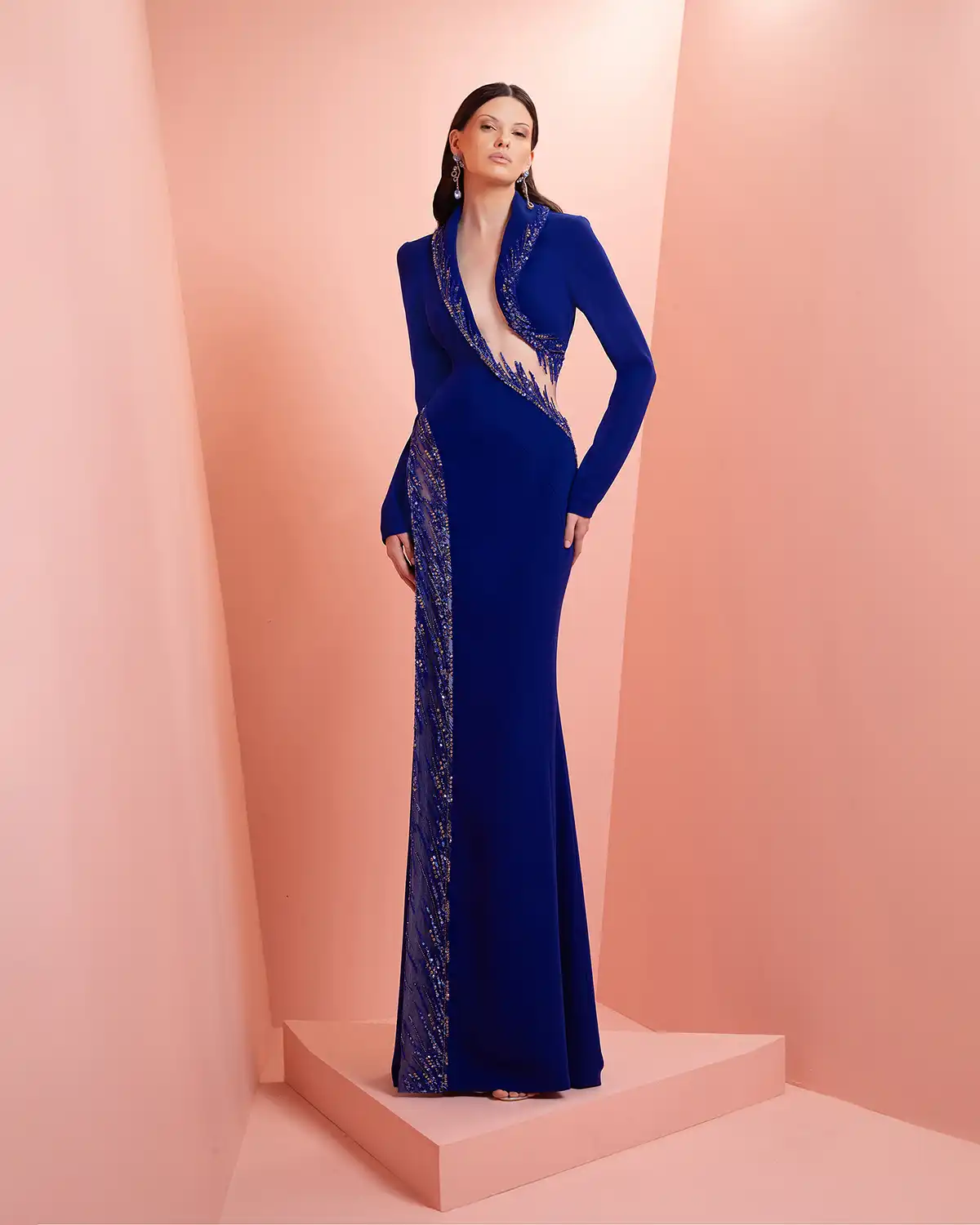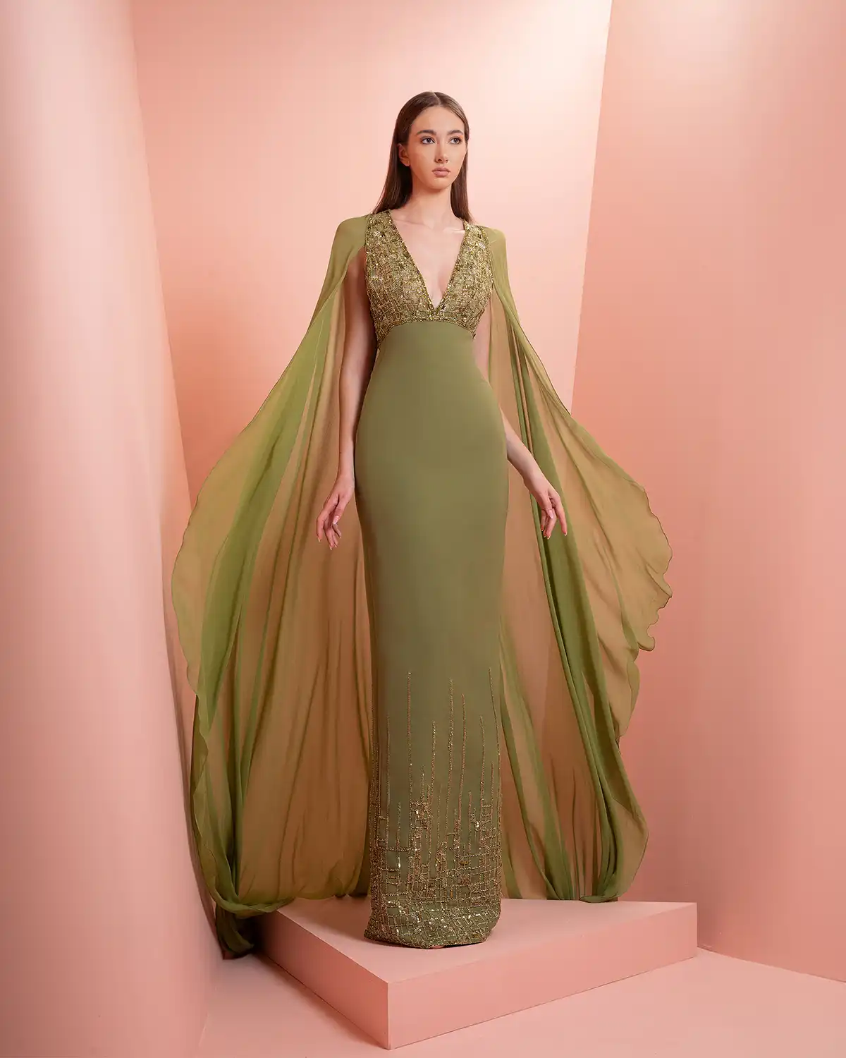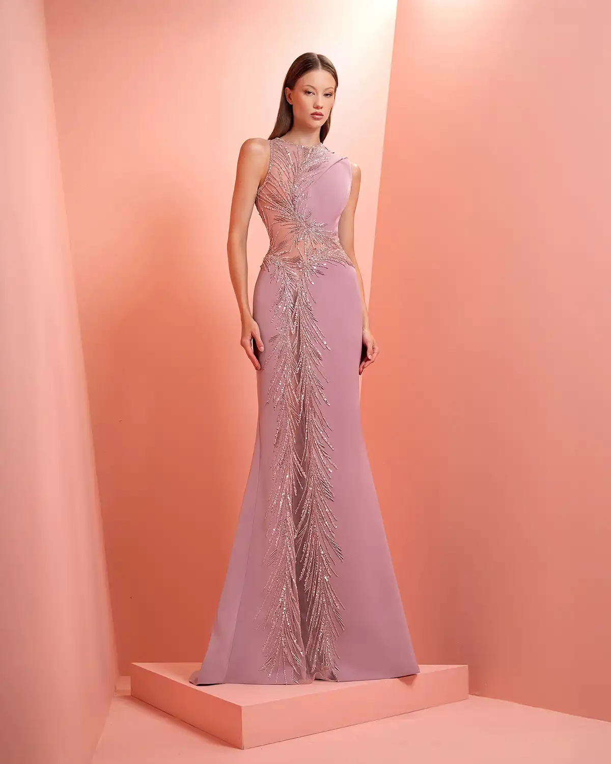 يحمل اسم المجموعة "NUANCE" أكثر من معنى، إذ يعكس مفهوم التدرّج على مستويات عدة. يظهر ذلك أولاً في الألوان التي تتنقل بين الدرجات الفاتحة والقوية أو تمتزج بانسيابية داخل القطعة الواحدة. كما يتجلى التدرّج في الأقمشة المستخدمة، من الكريب والشيفون إلى التول والدانتيل، مرورًا بالريش الذي يضيف لمسة حالمة ودرامية، وصولًا إلى التصاميم المزدانة بالشك والتطريز اللامع التي تضفي بريقًا ناعمًا.