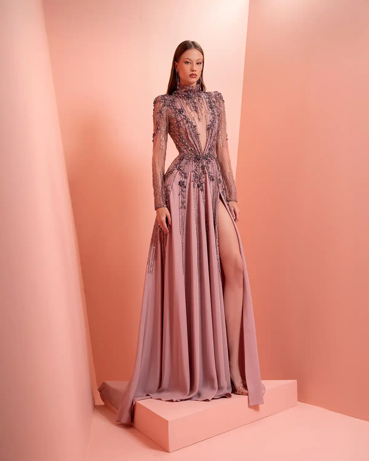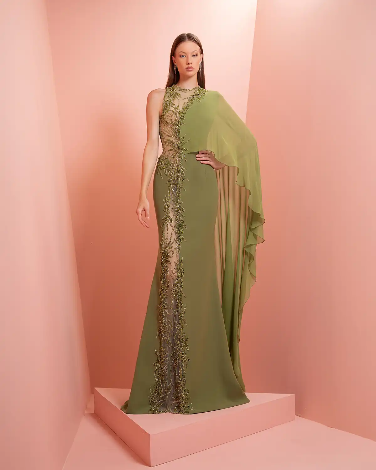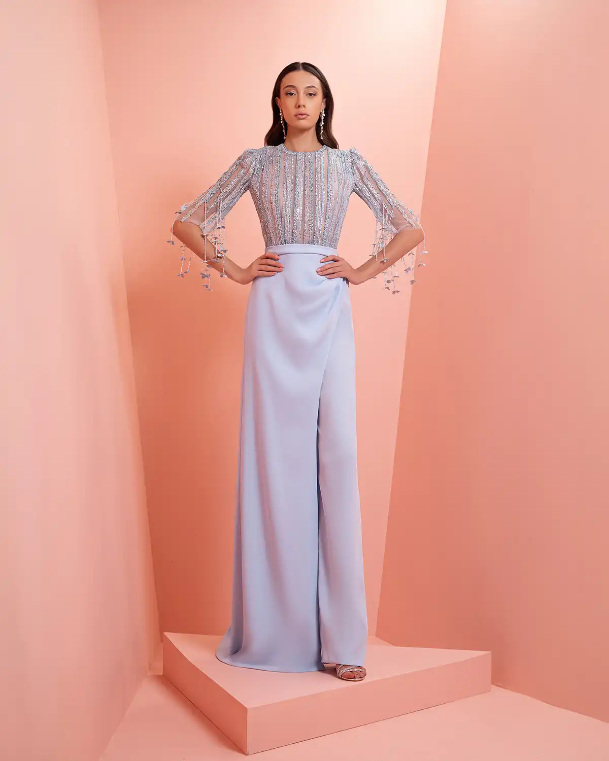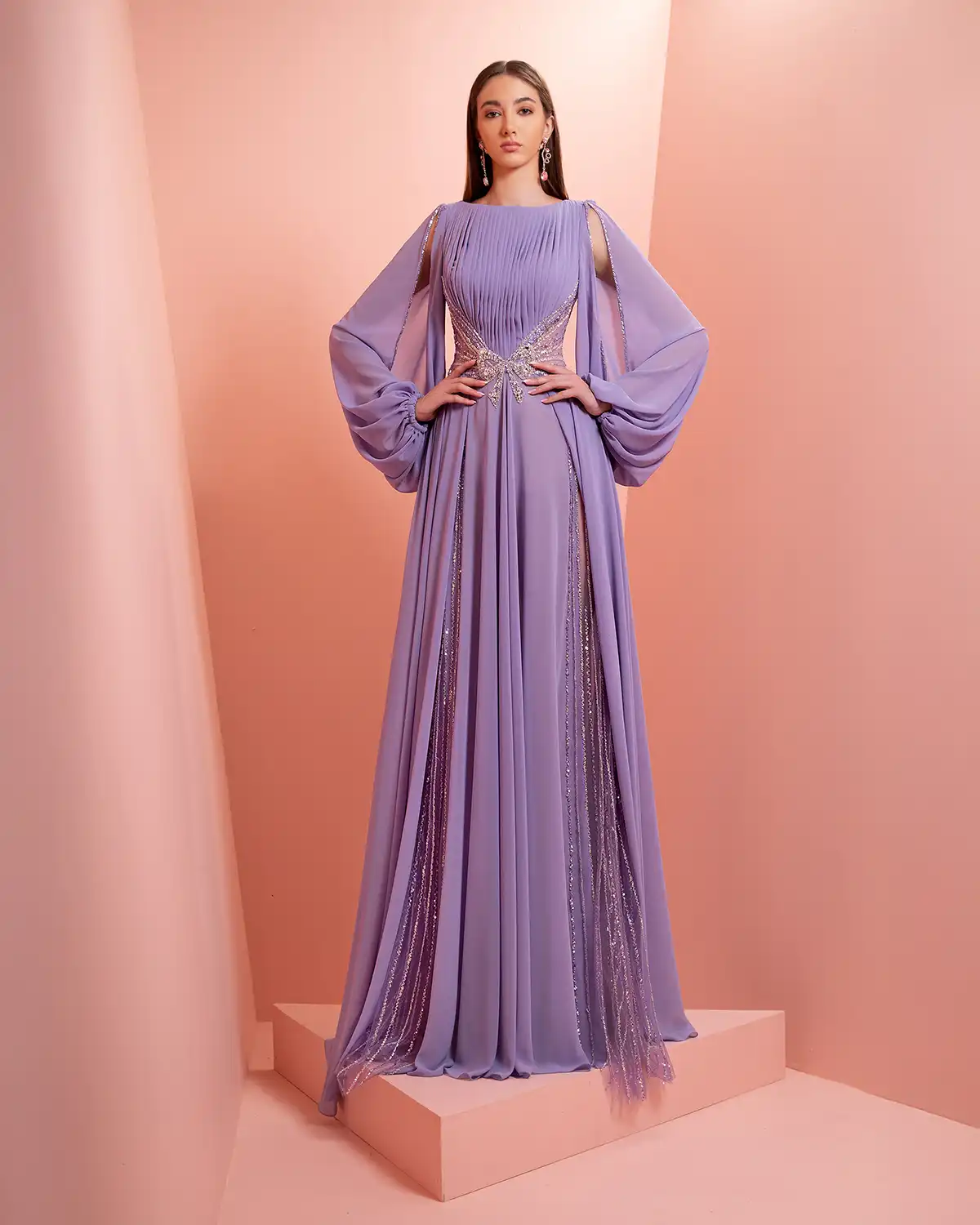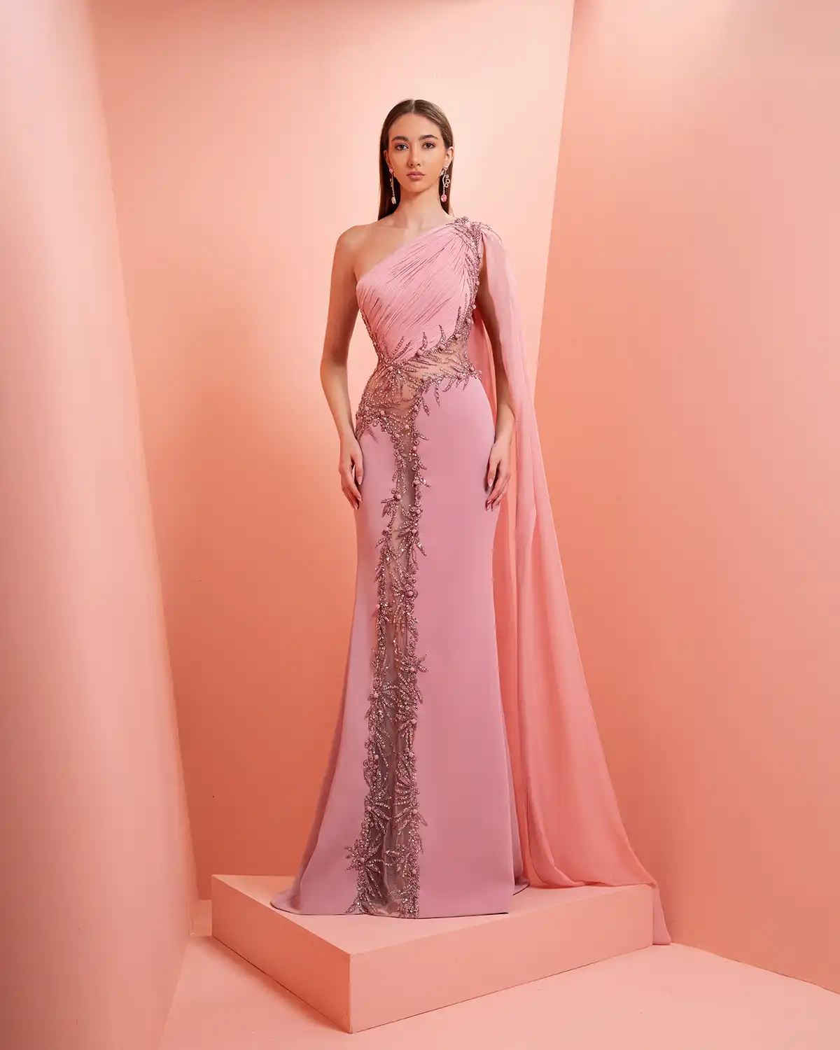 يحمل اسم المجموعة "NUANCE" أكثر من معنى، إذ يعكس مفهوم التدرّج على مستويات عدة. يظهر ذلك أولاً في الألوان التي تتنقل بين الدرجات الفاتحة والقوية أو تمتزج بانسيابية داخل القطعة الواحدة. كما يتجلى التدرّج في الأقمشة المستخدمة، من الكريب والشيفون إلى التول والدانتيل، مرورًا بالريش الذي يضيف لمسة حالمة ودرامية، وصولًا إلى التصاميم المزدانة بالشك والتطريز اللامع التي تضفي بريقًا ناعمًا.