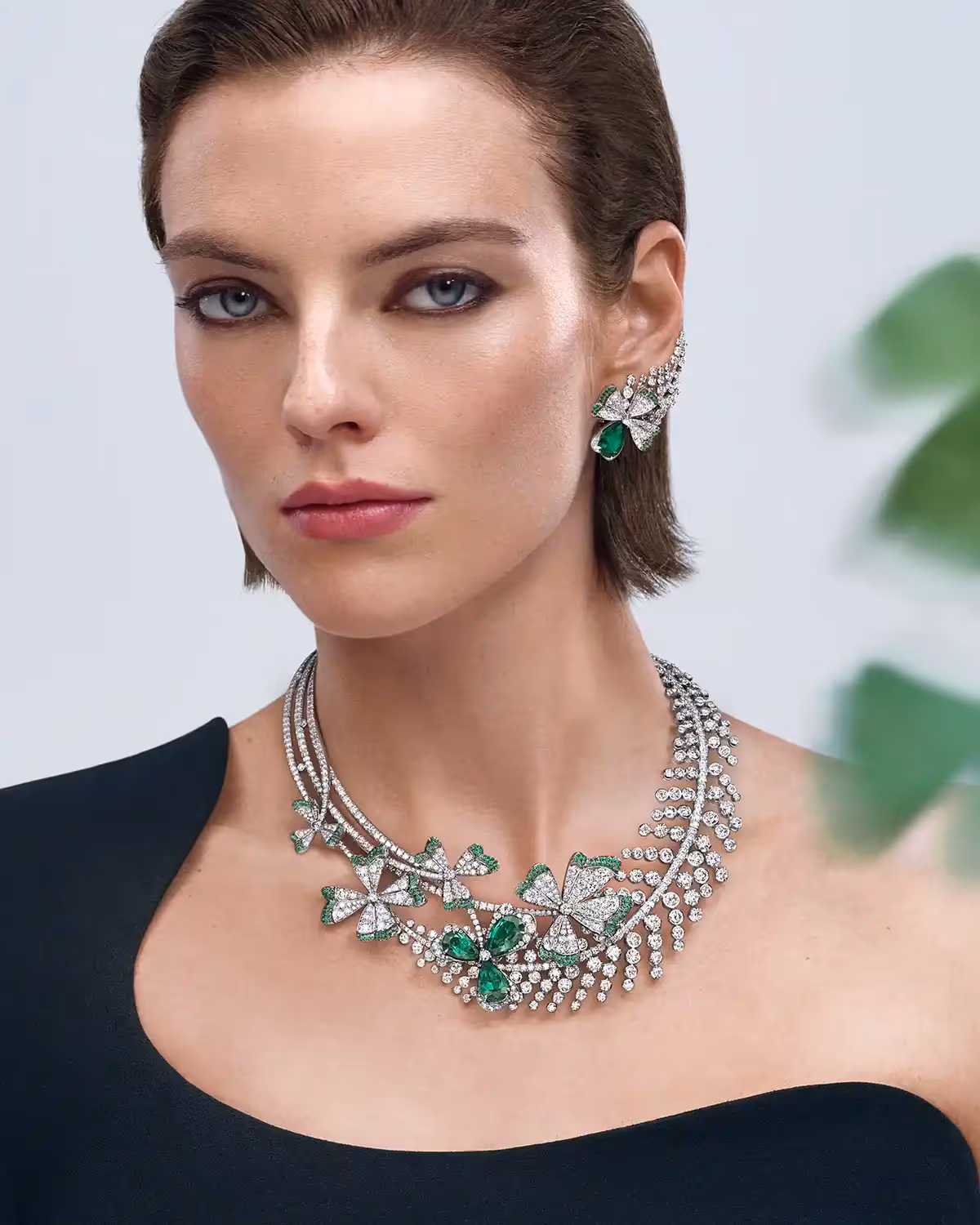 يحتلّ البرسيم مكانةً بارزة في تُراث شوميه، وقد ألهم بروش ساحر من المينا الأخضر الشفّاف والألماس، ابتكره جول فوسان عام 1853، وهو الآن ضمن المجموعة الدائمة للدار. وتجسيداً للطبيعة المُتأصّلة في جذور الدار، تحوّل فنّيو المُحترف إلى علماء نبات لابتكار ثنائي نباتي. أوراق البرسيم المُزيّنة بثلاث أحجار زمرّد كولومبيّة، وزنها الإجمالي 11,63 قيراط تتفتّح على سجادة من السرخس لتُشكّل عقداً رائعاً. تُضفي طبقات الذهب الأبيض الرقيقة لمسة من الأناقة على هذا النبات، بينما تجمع الماسات بين الترصيع الدقيق والإطار والزخرفة الوهميّة. على قلادة استغرق صنعها قرابة 1250 ساعة، تدعو أوراق البرسيم الرباعيّة مُرتديها إلى البحث عن تلك التي ستجلب الحظ الأكبر. تُزيّن أحجار الزمرد الاستثنائيّة المُستوحاة من لون البرسيم، مُختلف الإبداعات. ويتألّق حجراً بقطع الكمثري وزنه 5,19 قيراط بلونه الأخضر الحريري على خاتم تُحيط فيه أوراق السرخس بالجوهرة عن كثب، لتُخفي المخالب، بينما يتمّ ترصيع قرطان بحجرين وزنهما 3,41 و3,24 قيراط. ويكتمل الطقم بزخرفة من أربع أوراق تظهر كقلادة على سلسلة مزدوجة رفيعة، يمكن تحويلها إلى بروش جالب للحظ.