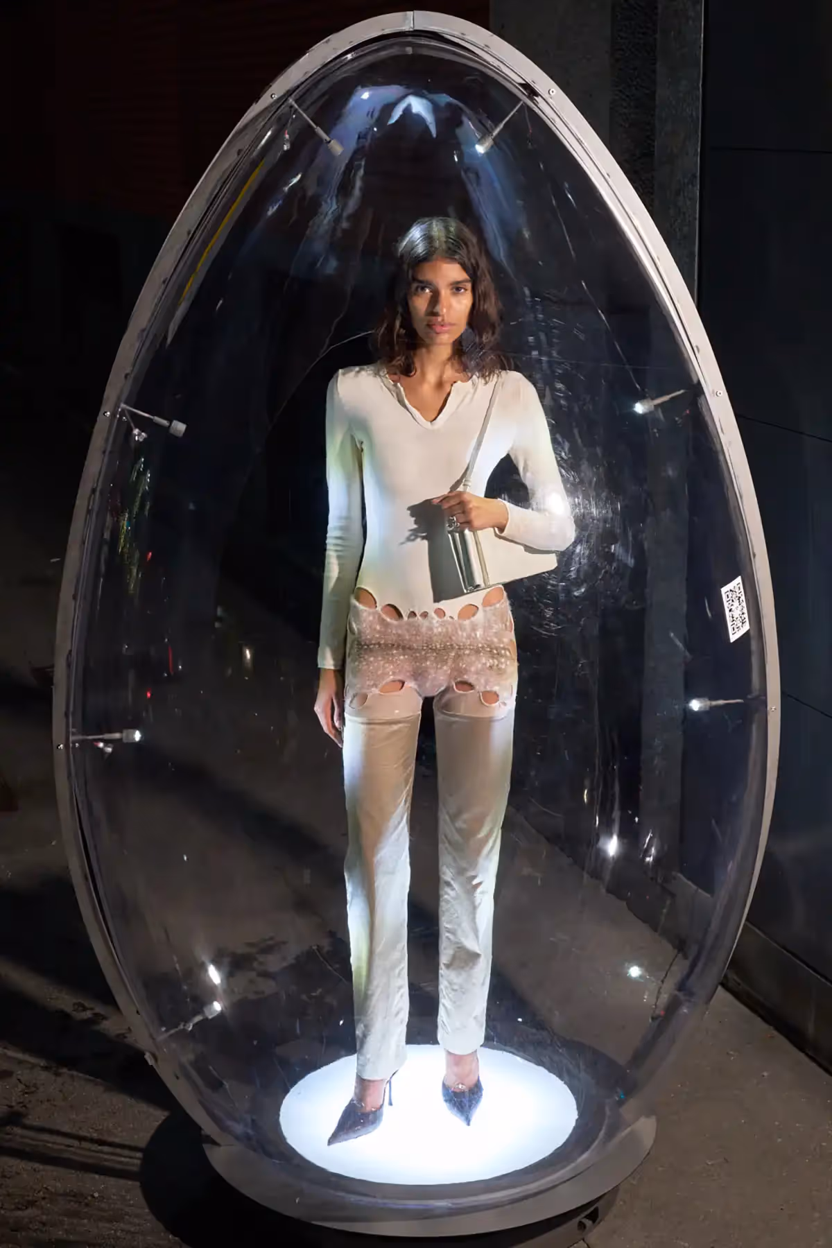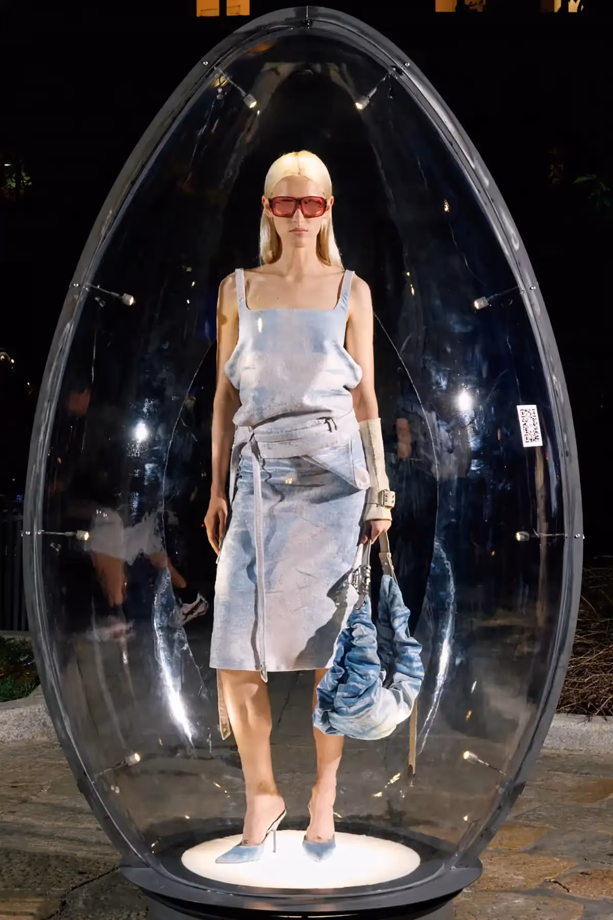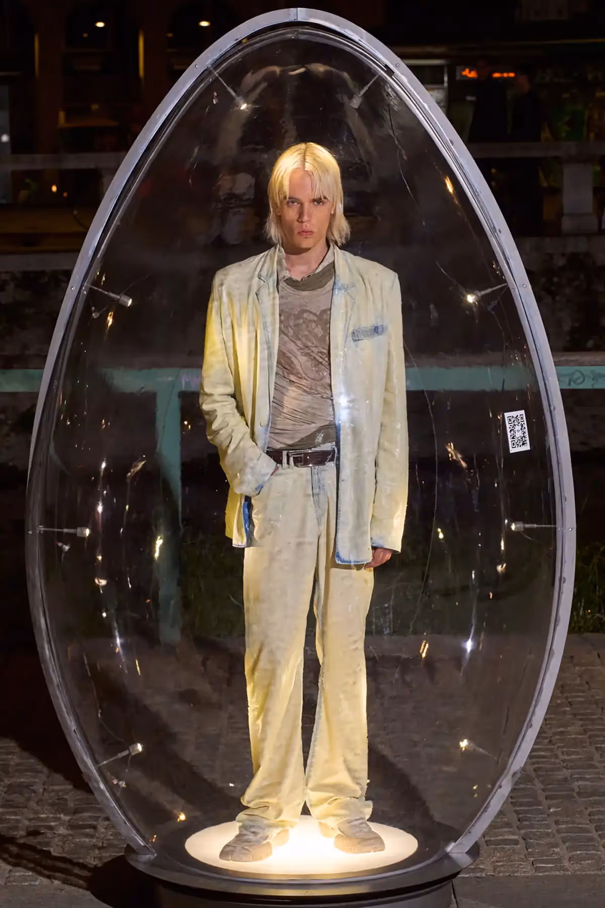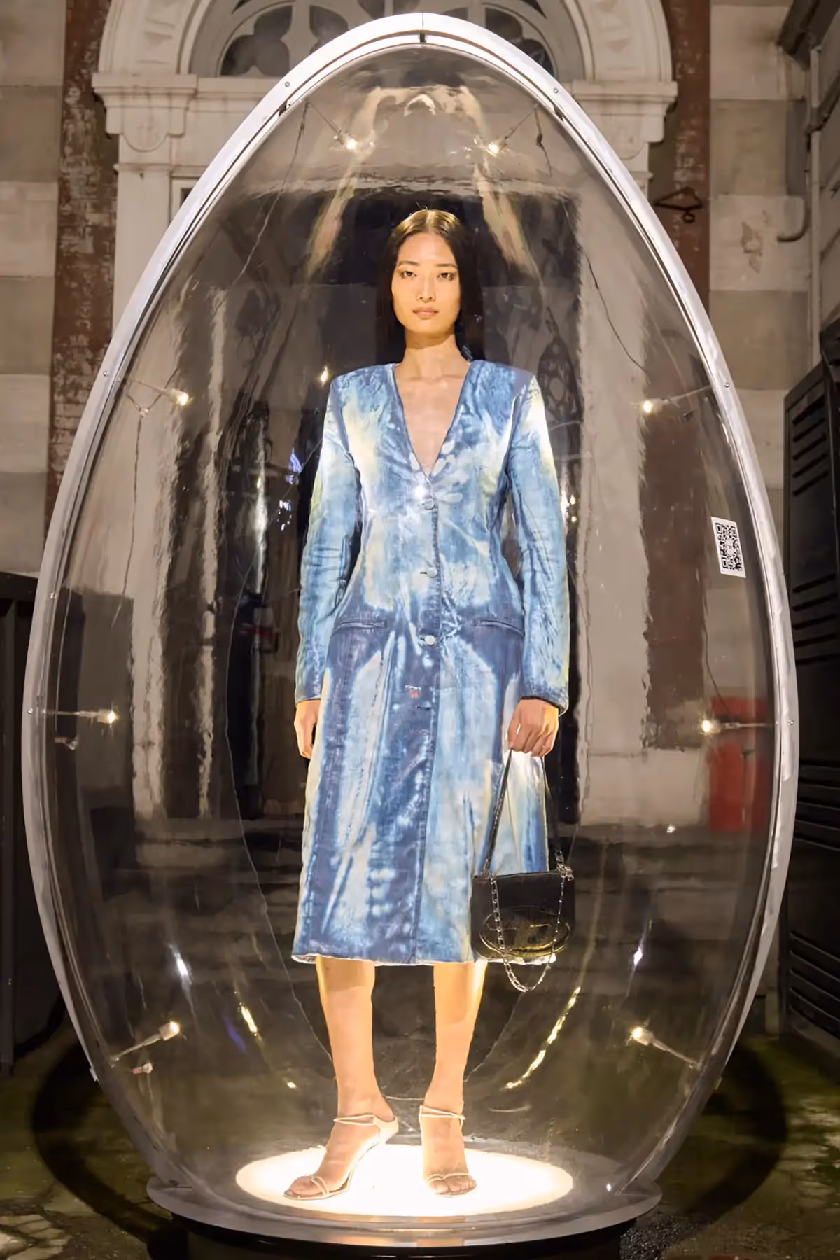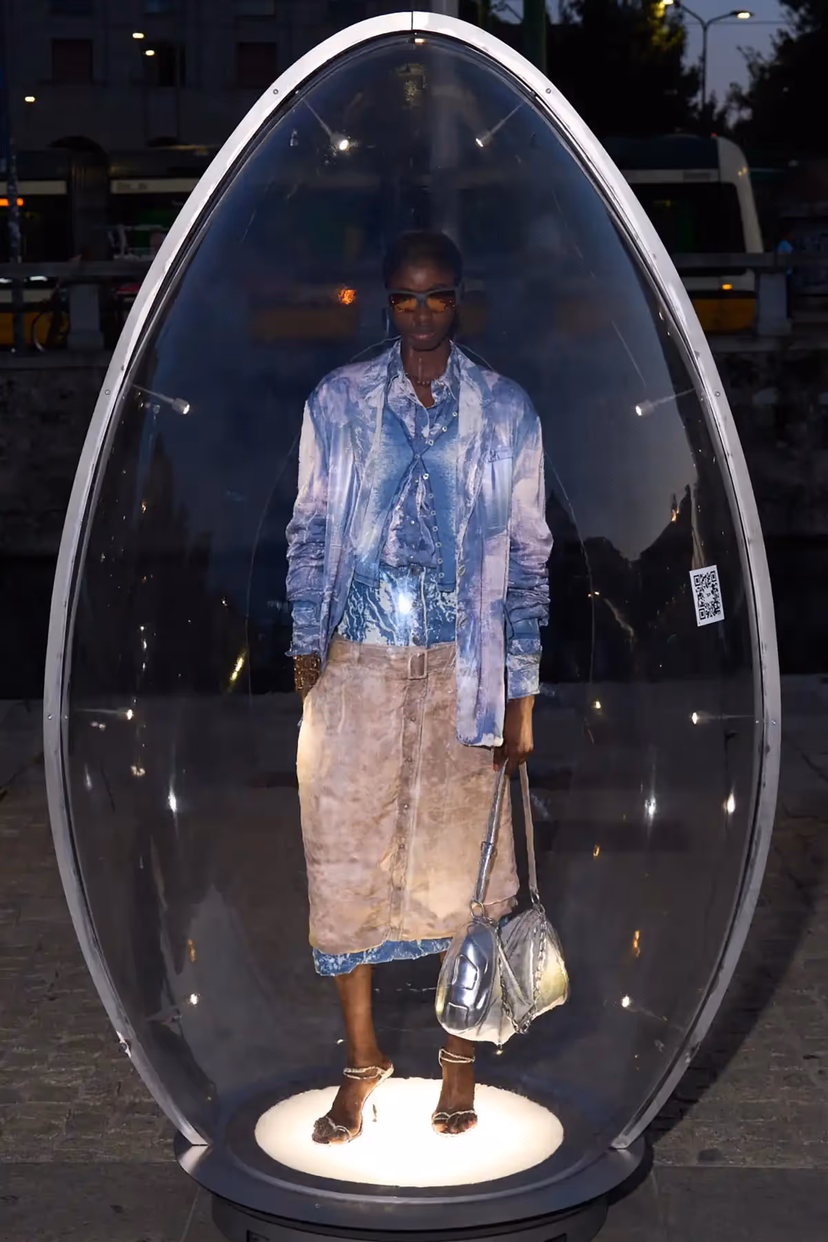 من جديد، تثبت ديزل أنها ليست مجرد دار أزياء، بل حالة من اللعب والتمرد على المألوف. عرض ربيع/صيف 2026 لم يكن على منصة تقليدية، بل تحوّل إلى لعبة جماهيرية في قلب مدينة ميلانو، Diesel Egg Hunt، أو "لعبة البيض" التي كشفت من خلالها الدار عن المجموعة الكاملة، حيث لم تُعرض المجموعة في قاعة عرض تقليدية، بل عبر 55 إطلالة موزعة في شوارع المدينة داخل أوعية شفافة على شكل بيض ضخم. خطوة جريئة تعكس فلسفة الدار في جعل الموضة مساحة مفتوحة للجميع، حيث يصبح الجمهور جزءاً من الحدث لا مجرد متفرج.