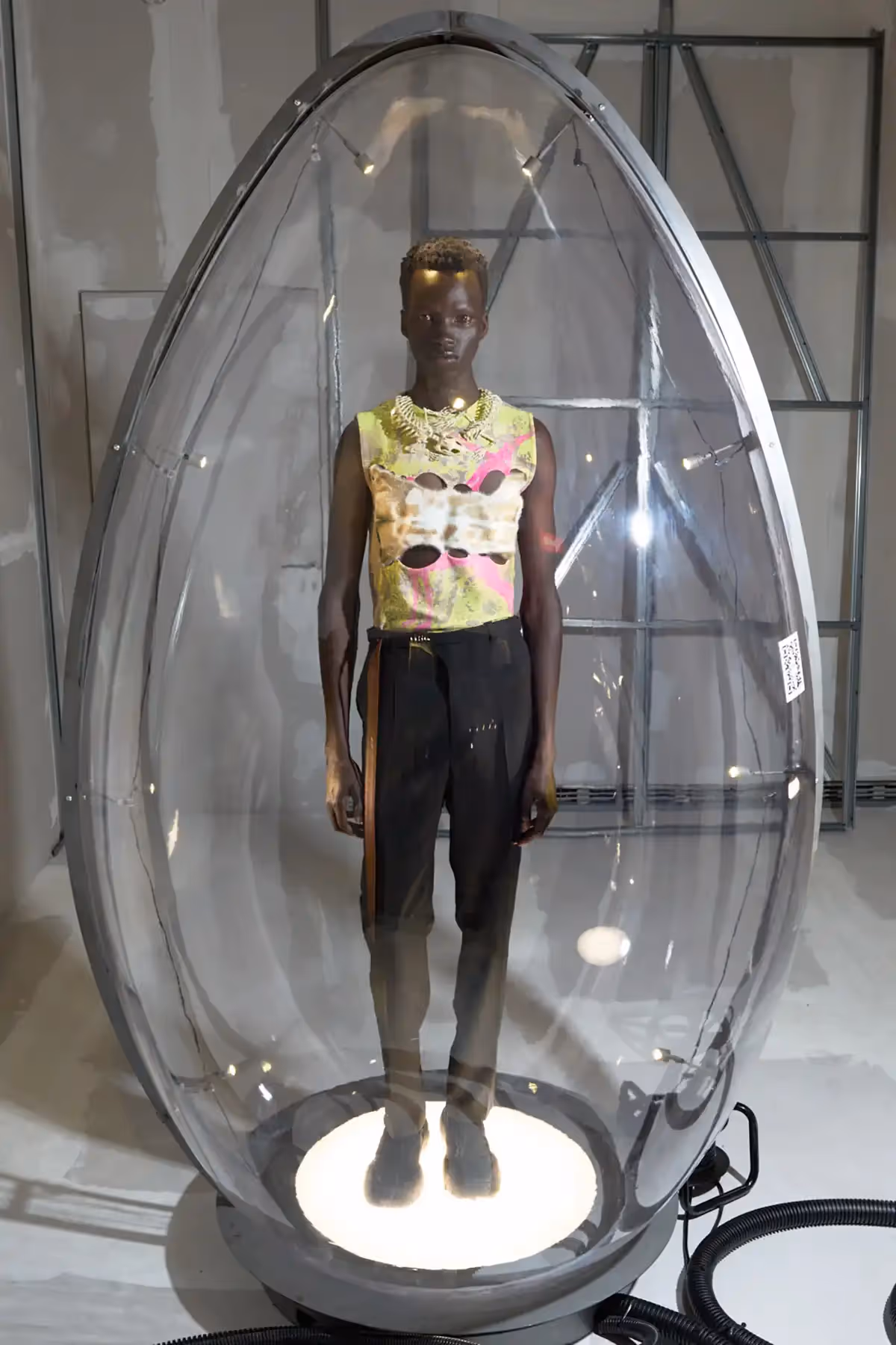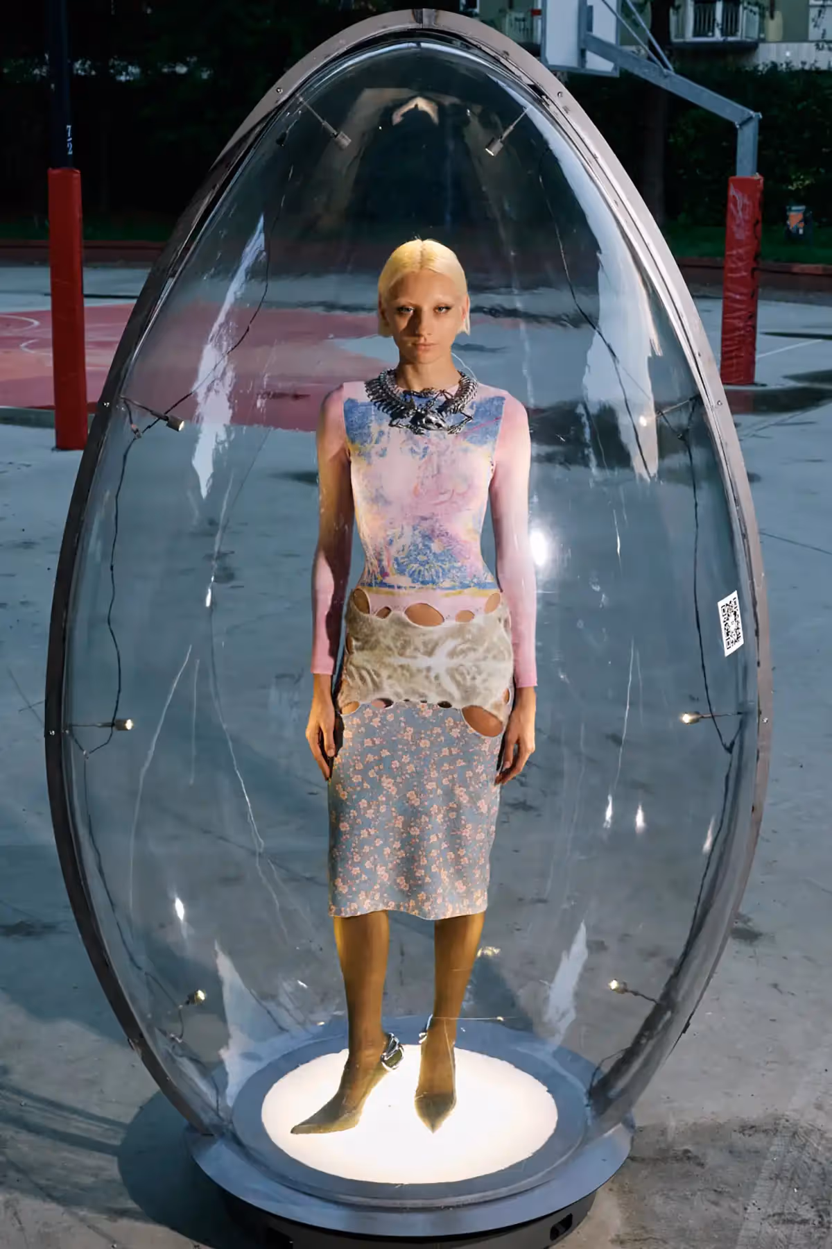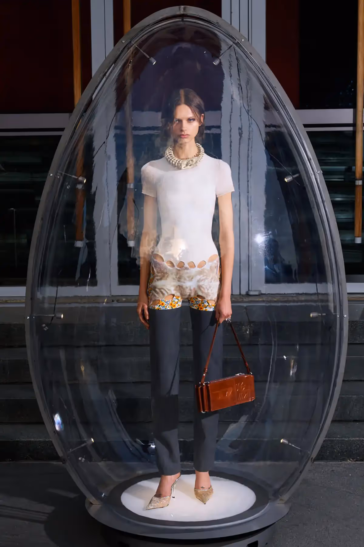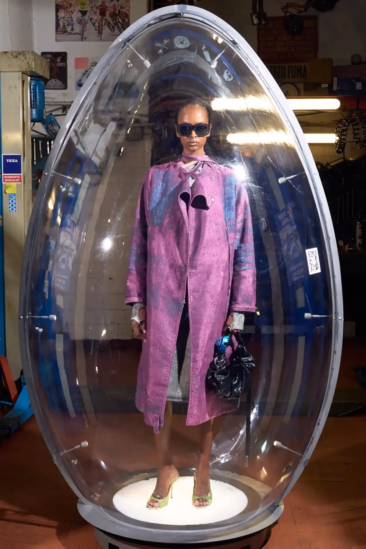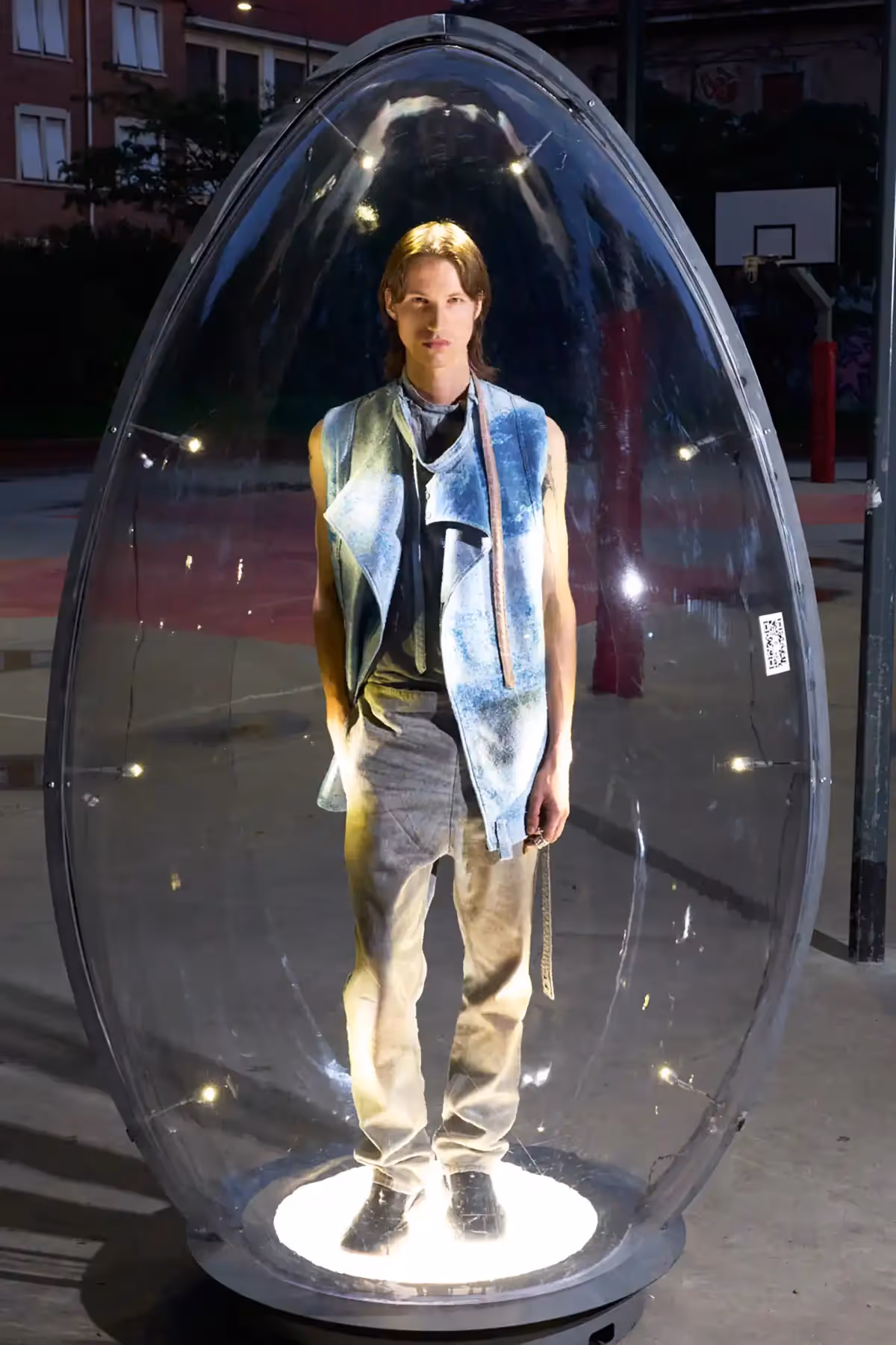 من جديد، تثبت ديزل أنها ليست مجرد دار أزياء، بل حالة من اللعب والتمرد على المألوف. عرض ربيع/صيف 2026 لم يكن على منصة تقليدية، بل تحوّل إلى لعبة جماهيرية في قلب مدينة ميلانو، Diesel Egg Hunt، أو "لعبة البيض" التي كشفت من خلالها الدار عن المجموعة الكاملة، حيث لم تُعرض المجموعة في قاعة عرض تقليدية، بل عبر 55 إطلالة موزعة في شوارع المدينة داخل أوعية شفافة على شكل بيض ضخم. خطوة جريئة تعكس فلسفة الدار في جعل الموضة مساحة مفتوحة للجميع، حيث يصبح الجمهور جزءاً من الحدث لا مجرد متفرج.