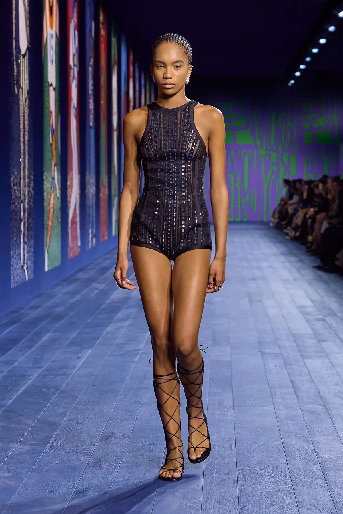 يتمّ ابتكار التصاميم الراقية "أوت كوتور" على الجسم مباشرةً. وفي هذه المساحة المُميّزة ومكان التأمل الحقيقي، يتم إحياء ما يُشبه تصميم رقص فريد من نوعه في كلّ مرة. إنّ استضافة باريس للألعاب الأولمبيّة والبارالمبيّة* - التجسيد المثاليّ للمنافسة - دفع "ماريا غراتسيا كيوري" إلى الإشادة المناسبة بكافة الرياضيّات اللواتي، منذ العصور القديمة وحتى يومنا هذا، تغلّبنَ على الأحكام المسبقة والعقبات لضمان تكافؤ الفرص في المسابقات الرياضية. وبالتالي، تعود المديرة الإبداعيّة إلى جوهر الملابس الأساسيّ والرئيسيّ العزيز على قلبها: التنانير الفوقيّة القصيرة بأسلوب "بيبلوم" ذات الطابع المرن والمثاليّ.