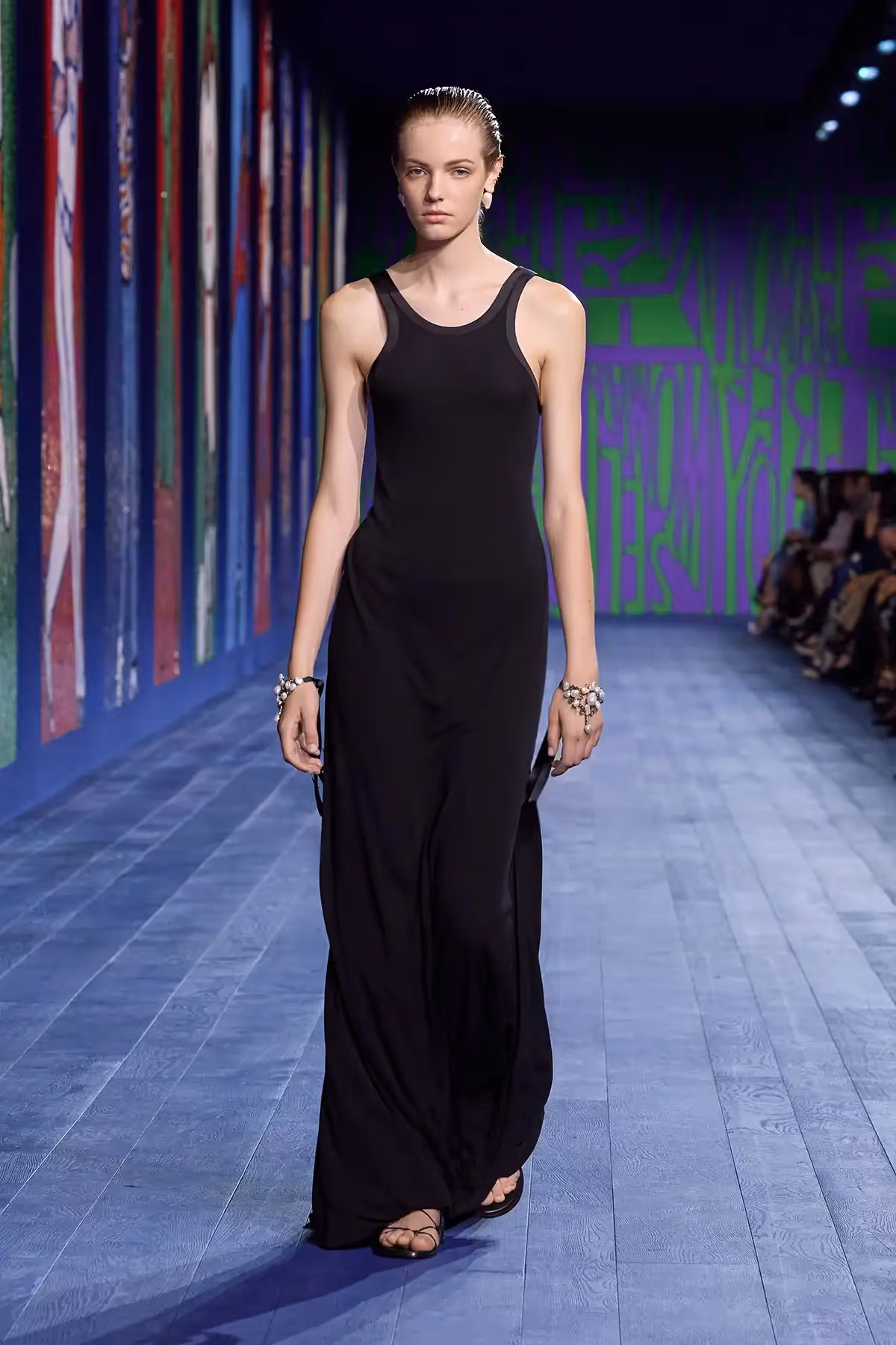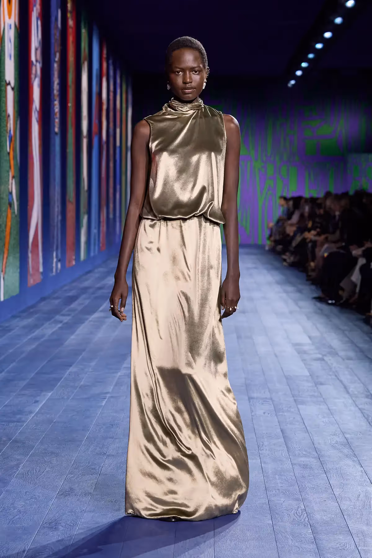 وقد أبصرت مجموعة أزياء "ديور" Dior للتصاميم الراقية "أوت كوتور" لموسم خريف وشتاء 2024-2025 النور من خلال الاستلهام من الحريّة السياسيّة تجاه جسد المرأة التي تمّ تحقيقها بعد قدر كبير من الجهد والصراع. وبالفعل، قرّرت المديرة الإبداعيّة استخدام مادة لا تنتمي إلى عالم التصاميم الراقية "كوتور": قماش الجيرسي، الذي يظهر هنا على شكل شبكة معدنية باللون الذهبي، والفضي، والأبيض، فيعانق الجسم ويحتضن منحنياته، إلى جانب صدار داخلي خفيف للغاية لتحديد بنية الملابس.