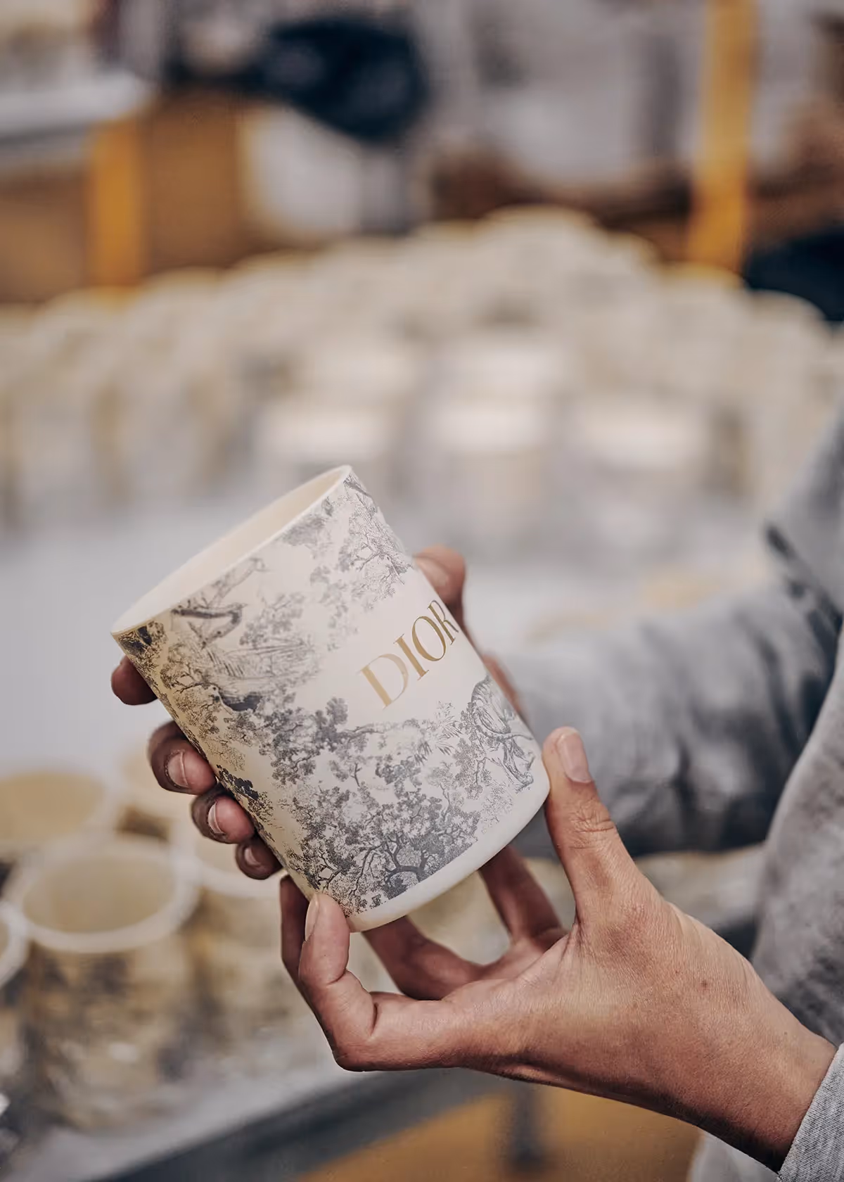 لإطالة هذه التجربة الحسيّة الفريدة، تم تزيين الأواني الزجاجية المصنوعة باستخدام تقنية النفخ بالفم في هذه القطع المرغوبة بنمط "توال دو جوي" Toile de Jouy المطبوع بالشاشة الحريرية، وهو إحدى أساسيّات الدار الرمزيّة.