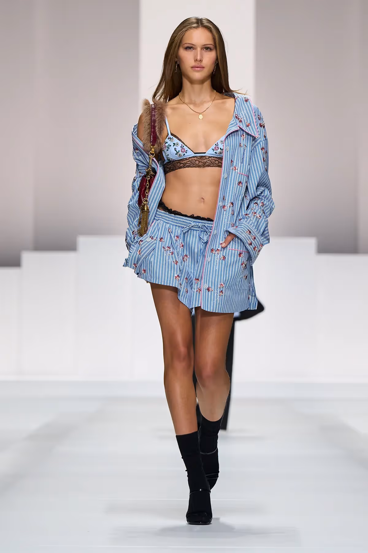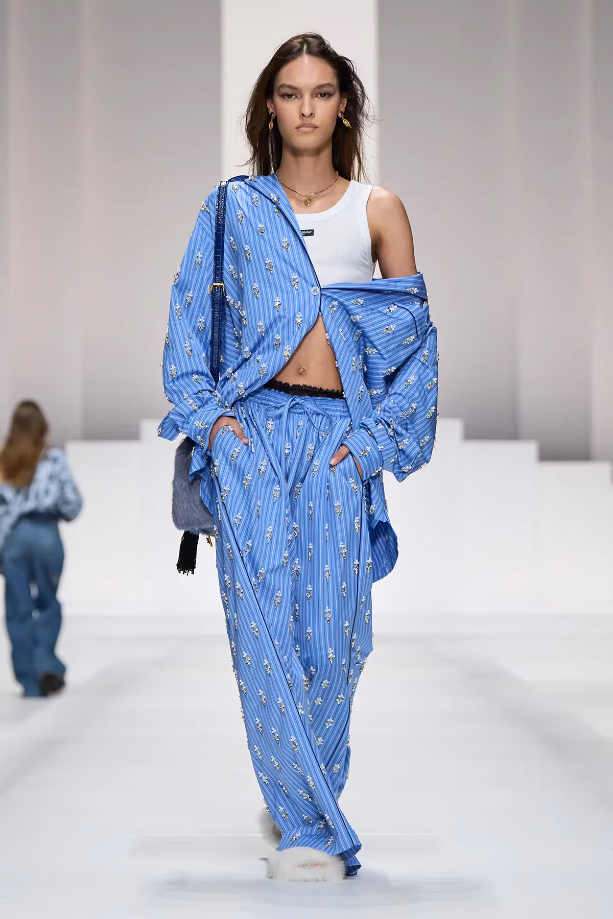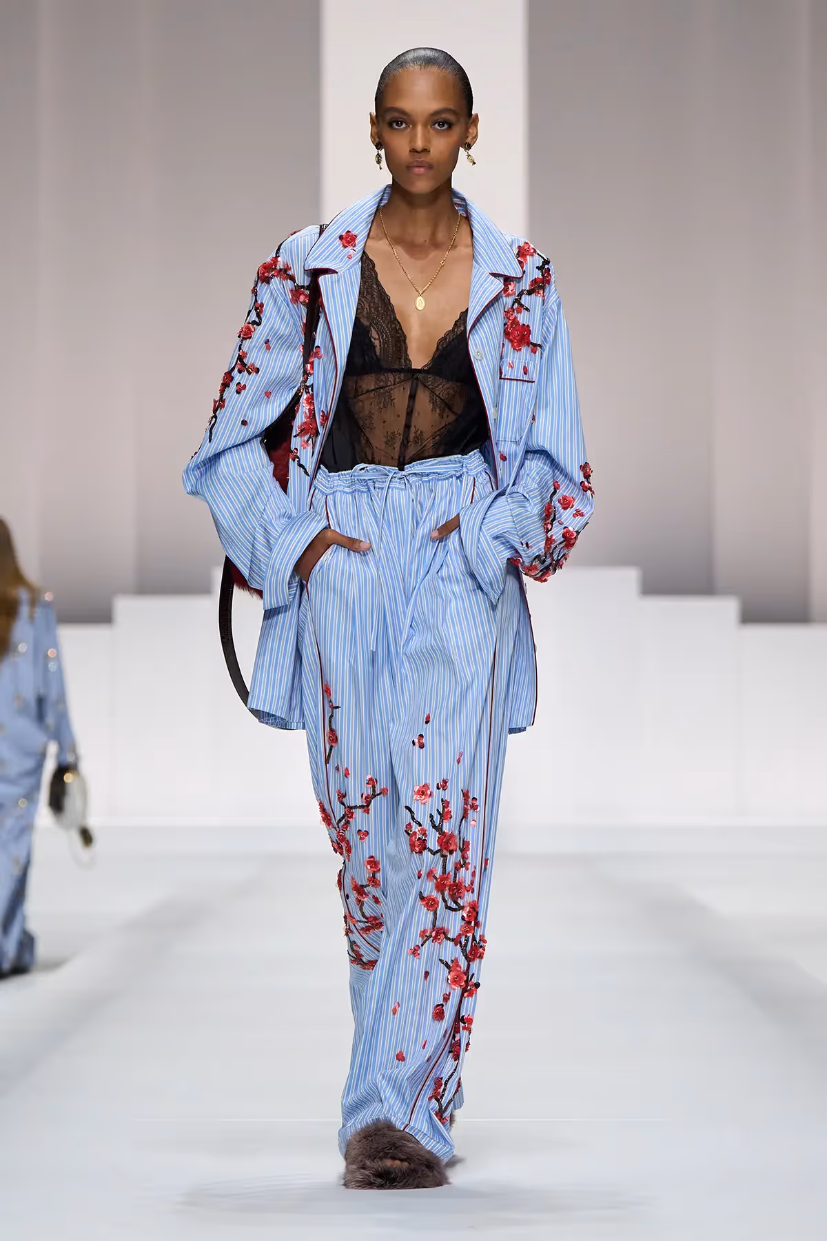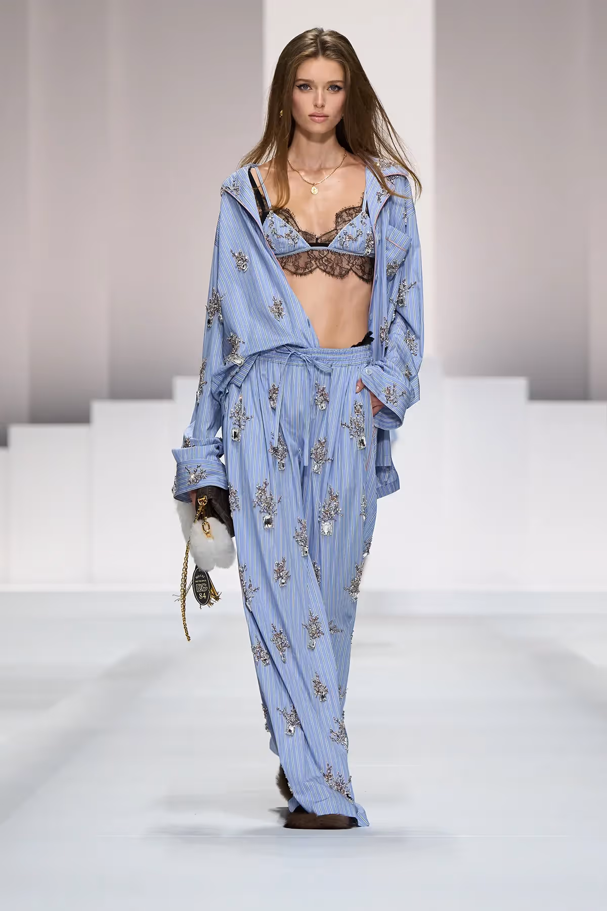 في مجموعة ربيع وصيف 2026، أعادت دولتشي آند غابانا تعريف الحدود بين غرفة النوم والشوارع الصاخبة، من خلال مجموعة "PJ Obsession" التي تمزج بين الانضباط الرجالي والجاذبية الأنثوية. هذه المجموعة ليست مجرد أزياء، بل هي رؤية إيطالية حادة وحسية، تضع المرأة في قلب المسرح، تارةً قوية وتارةً فاتنة بكل جرأة.