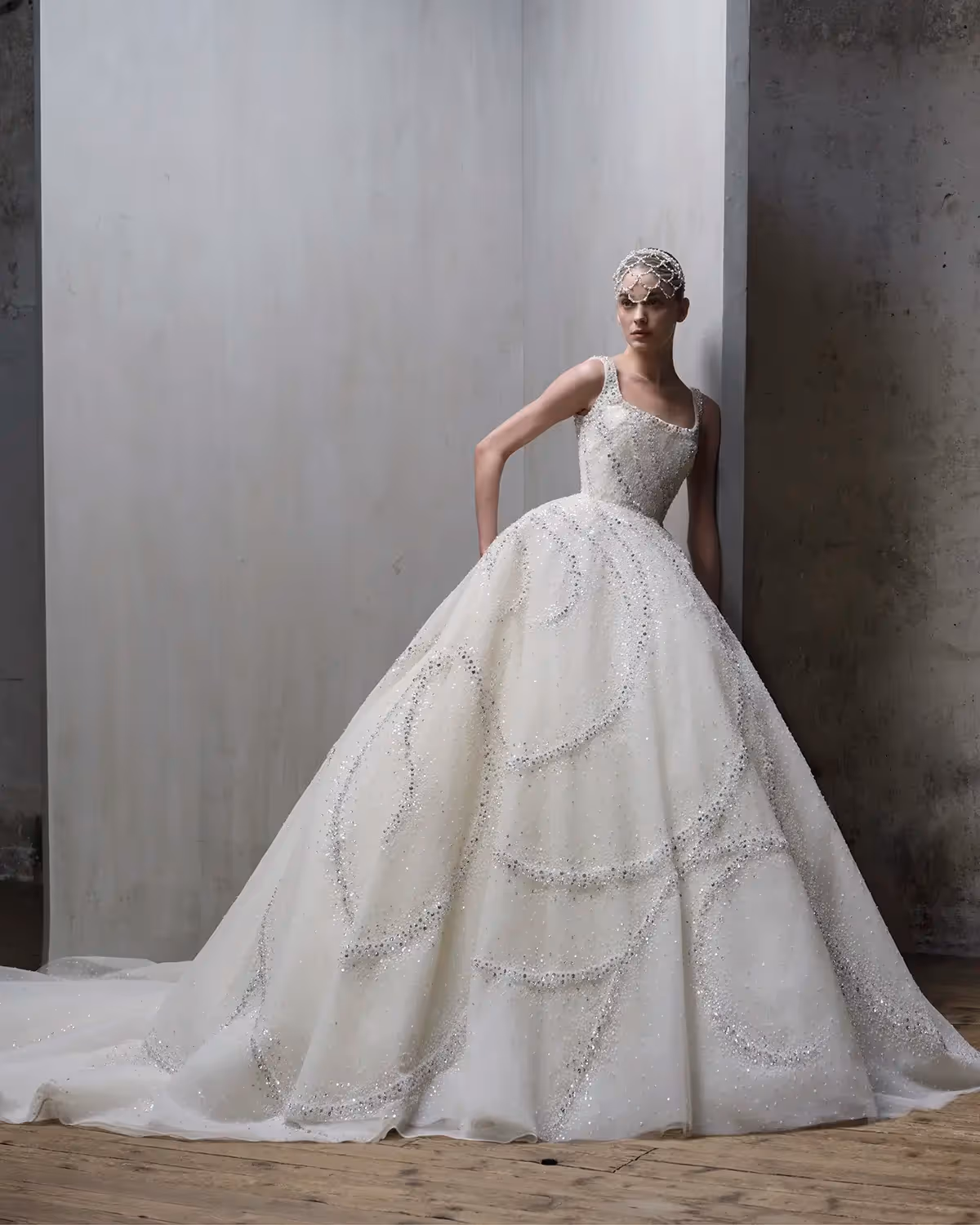 حوّلي كل لحظة من حياتك إلى لوحة فنية مع مجموعة الزفاف لخريف وشتاء 2025-2026 من Elie Saab، حيث تحتفي الدار بالعروس المعاصرة التي تجمع بين الجرأة والرقي الخالد. كل تصميم يُقدَّم بإشراقة متألقة وبخطوط أيقونية بسيطة، لتنسج قصة أنوثة جديدة مستوحاة من العصر الذهبي للبوترية، حيث يلتقي الأسلوب الطليعي بالأناقة الخالدة.