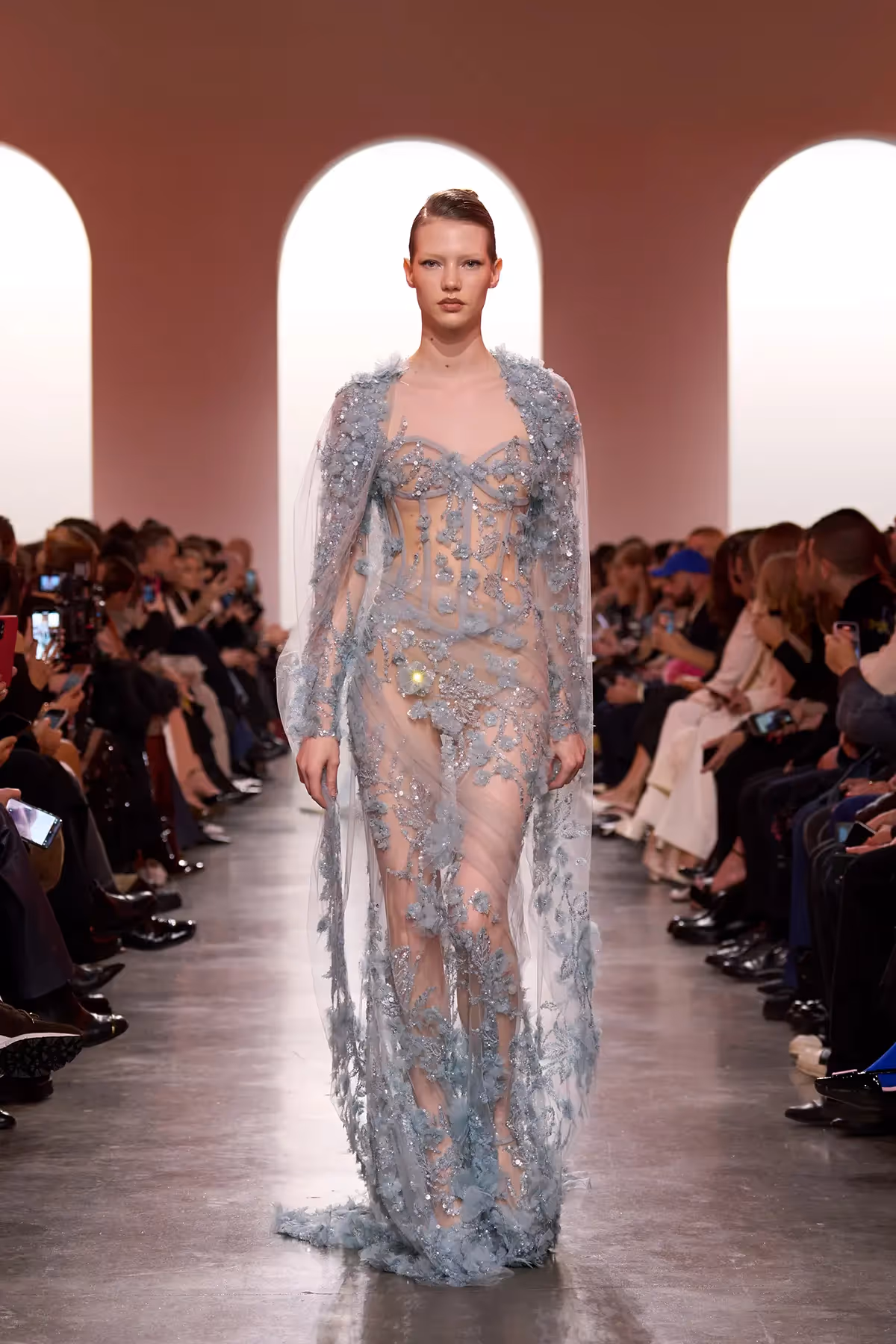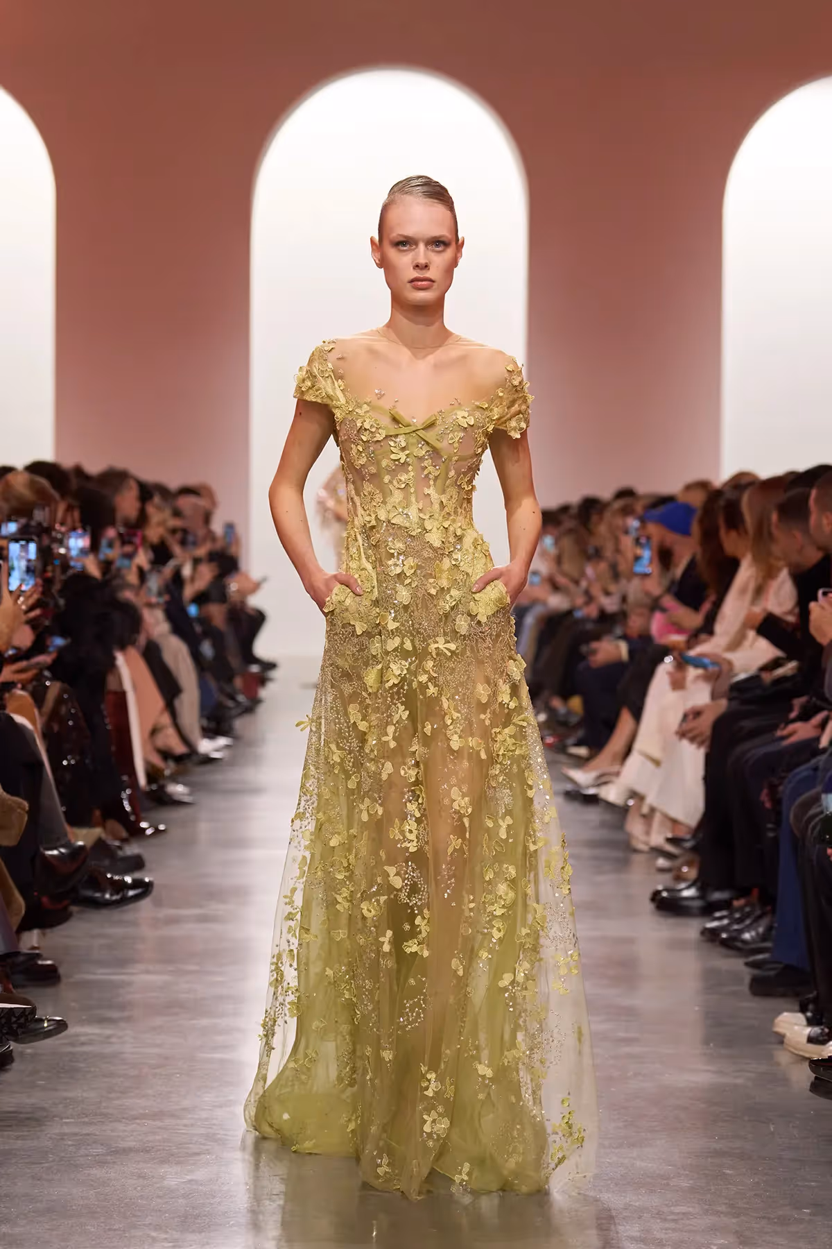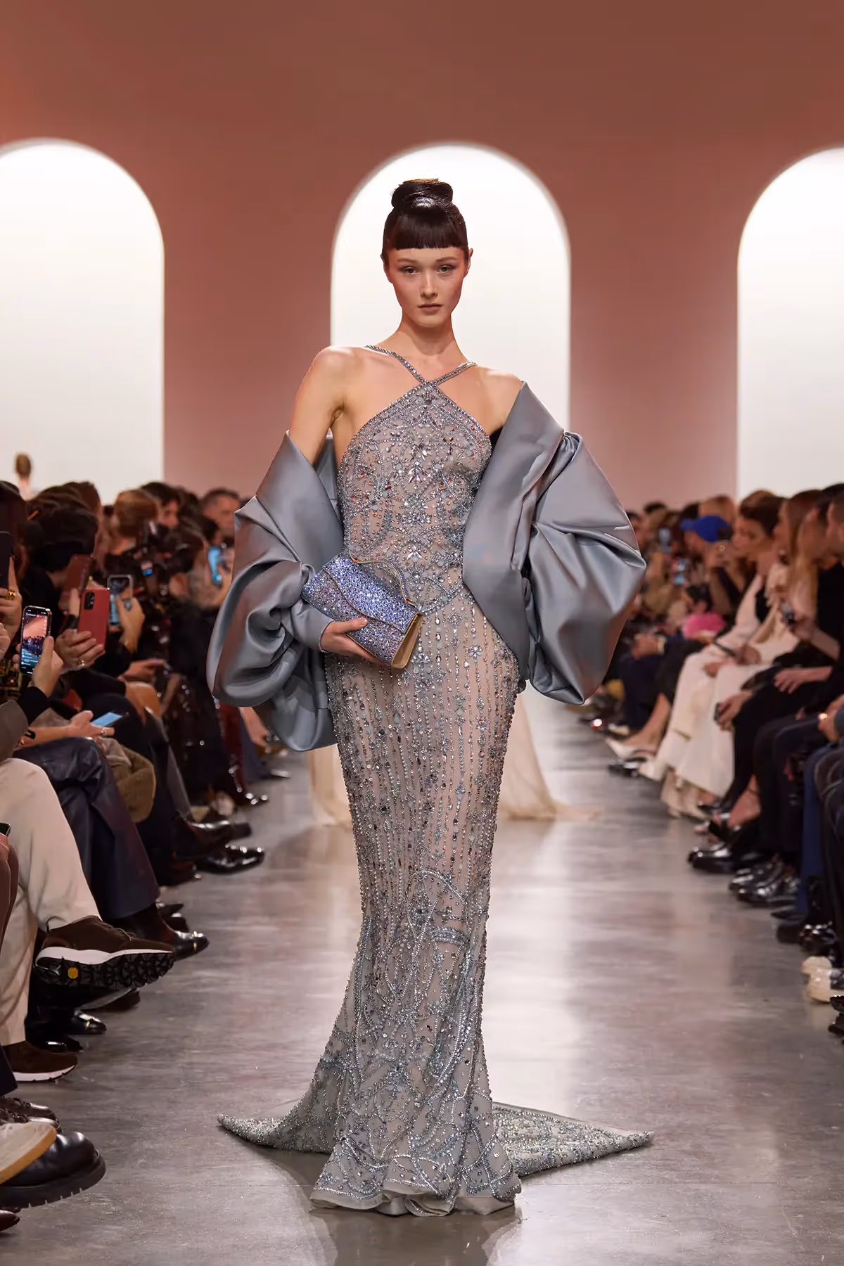بريشته الفنّية المبدعة، يرسم المصمّم إيلي صعب في مجموعته للأزياء الراقية لربيع وصيف ٢٠٢٥