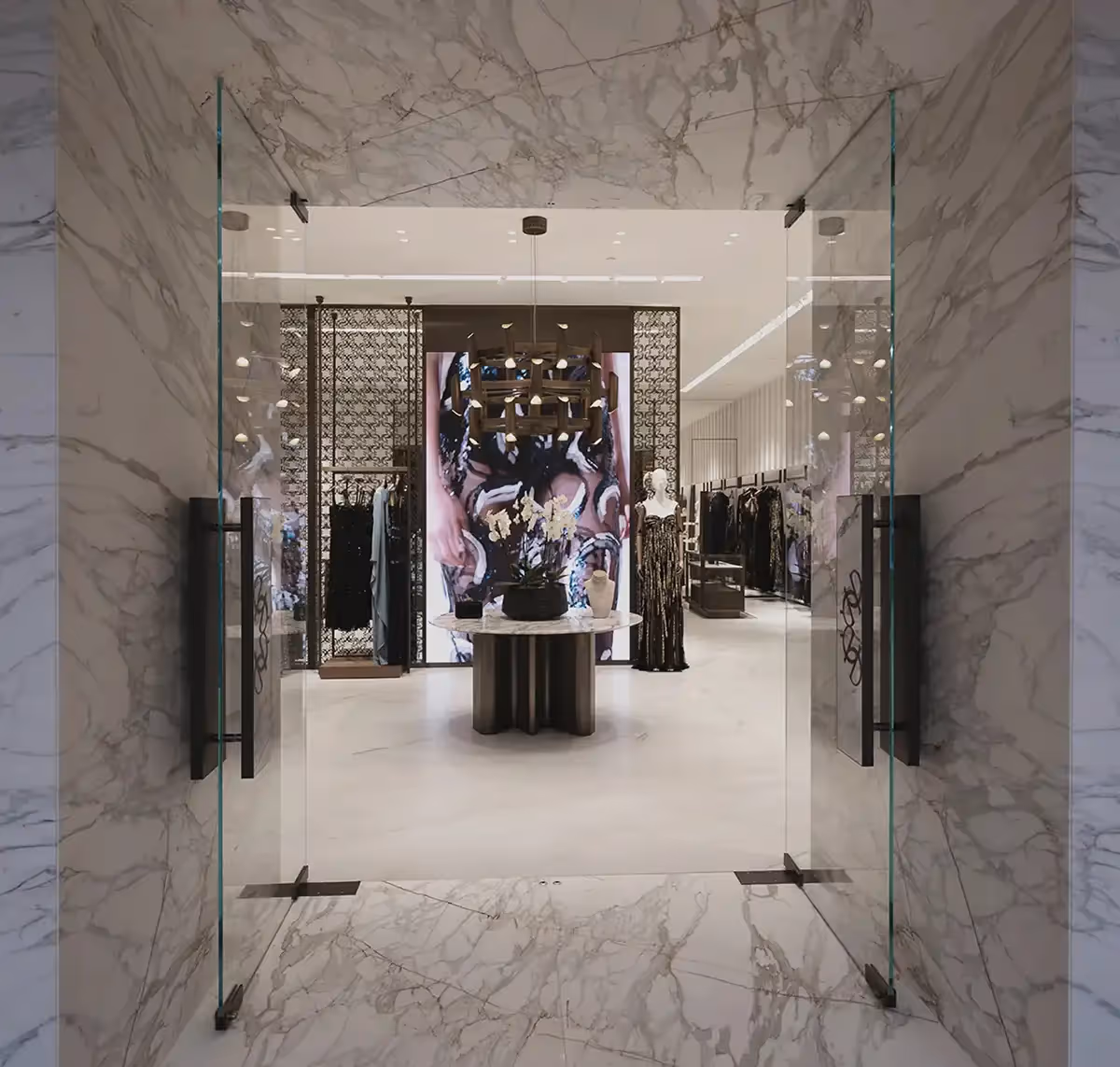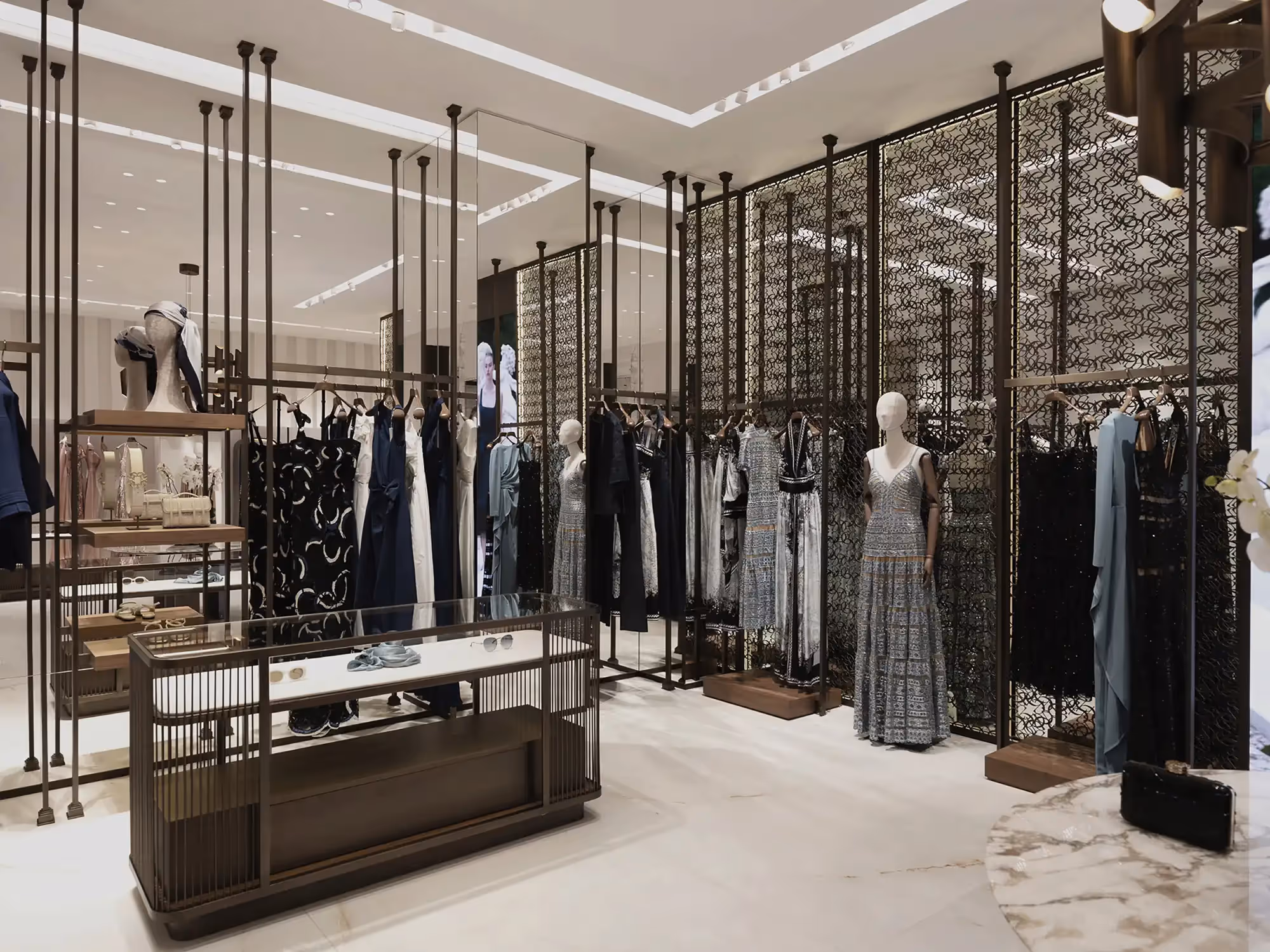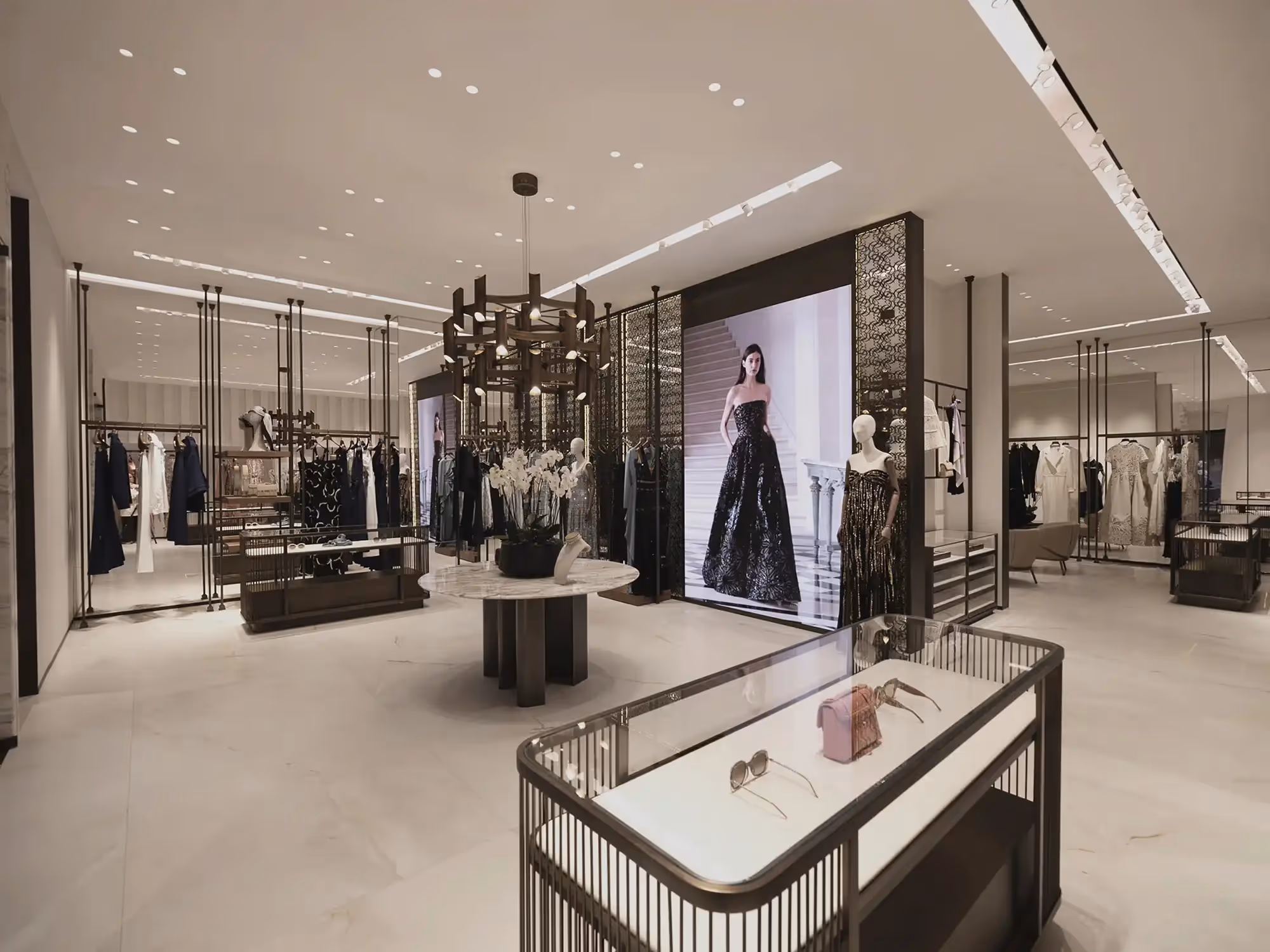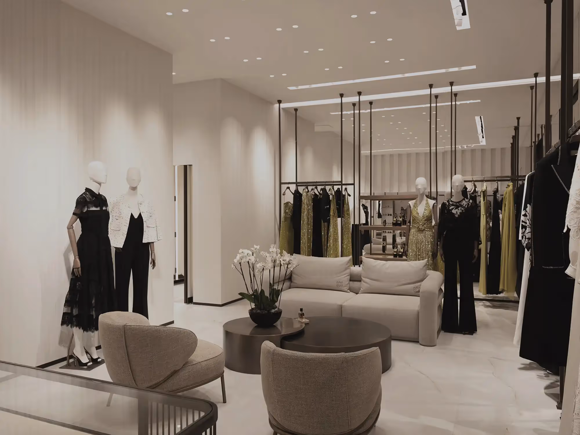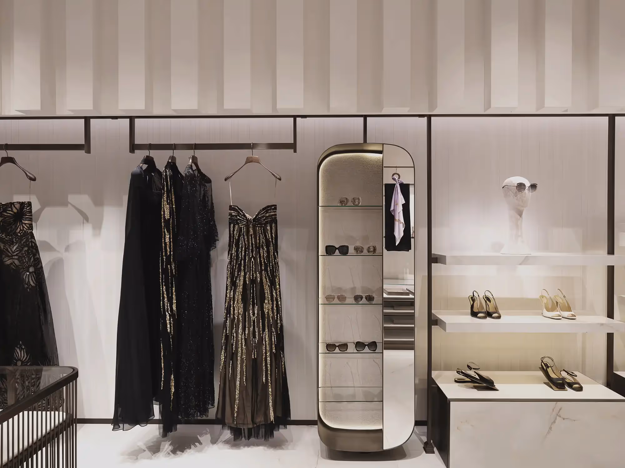 يجمع البوتيك بين أسلوب إيلي صعب المميز والتفاصيل الخاصة، ليقدم تجربة تسوق هادئة ومثيرة للانغماس. تم اختيار كل جانب من جوانب الديكور الداخلي، من المقاعد إلى ورق الحائط، من مجموعة إيلي صعب ميزون؛ حيث تجمع العناصر مثل الأونيكس الأبيض والجوز المصقول والنحاس المؤكسد لخلق جو من الأناقة البسيطة، بينما يشكل الجدار المضيء المزخرف بشعار إيلي صعب نقطة محورية لافتة. كما يحتوي البوتيك على صالون خاص للعرائس يقدم معرضًا واسعًا من الفساتين إلى جانب مساحة لتجهيز العرائس الفاخرة.