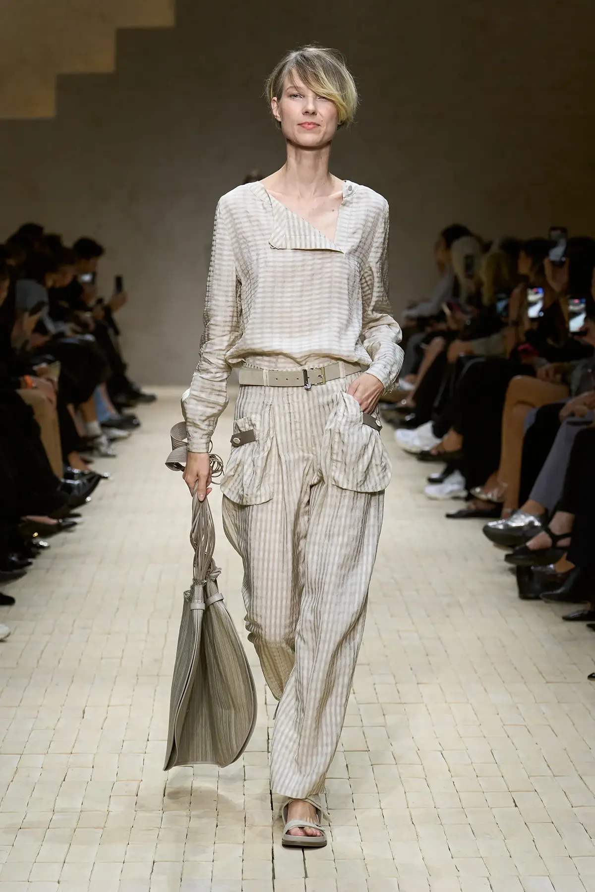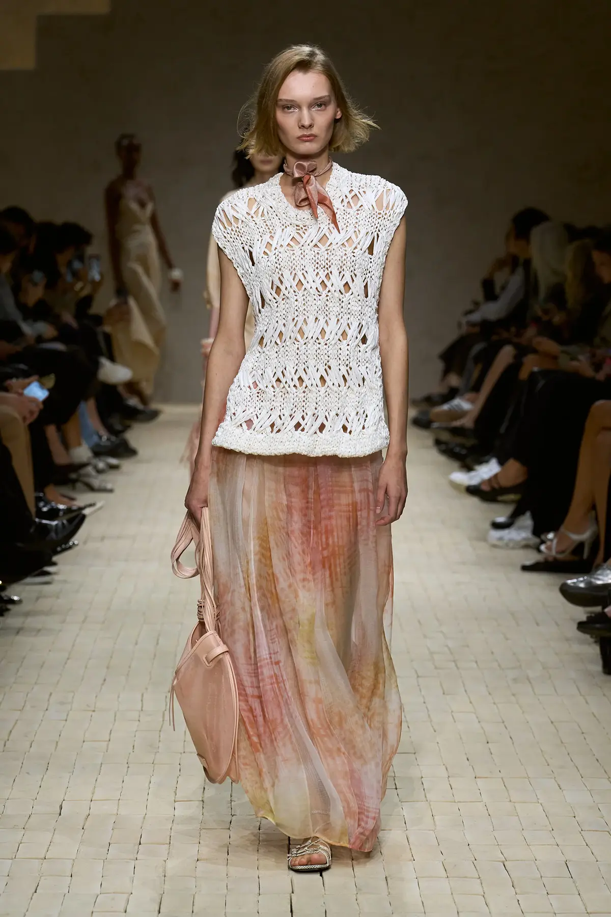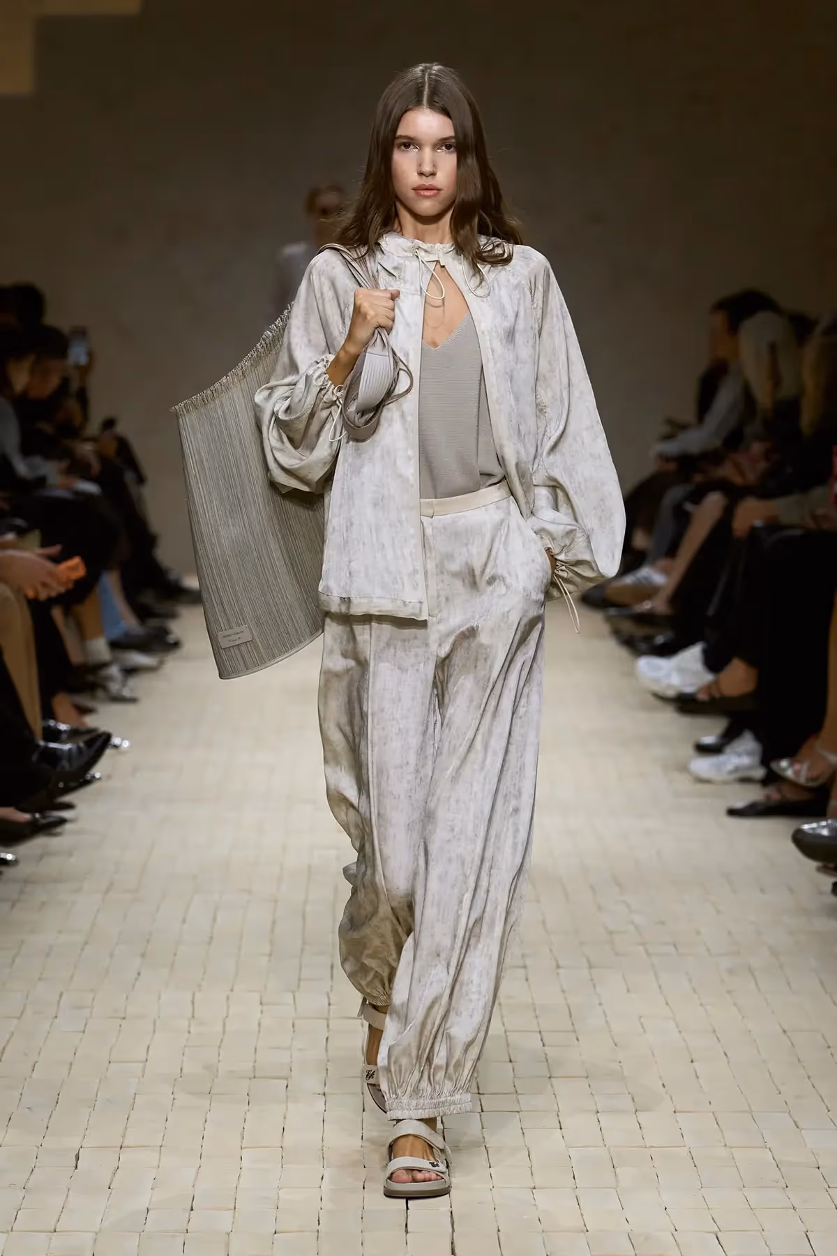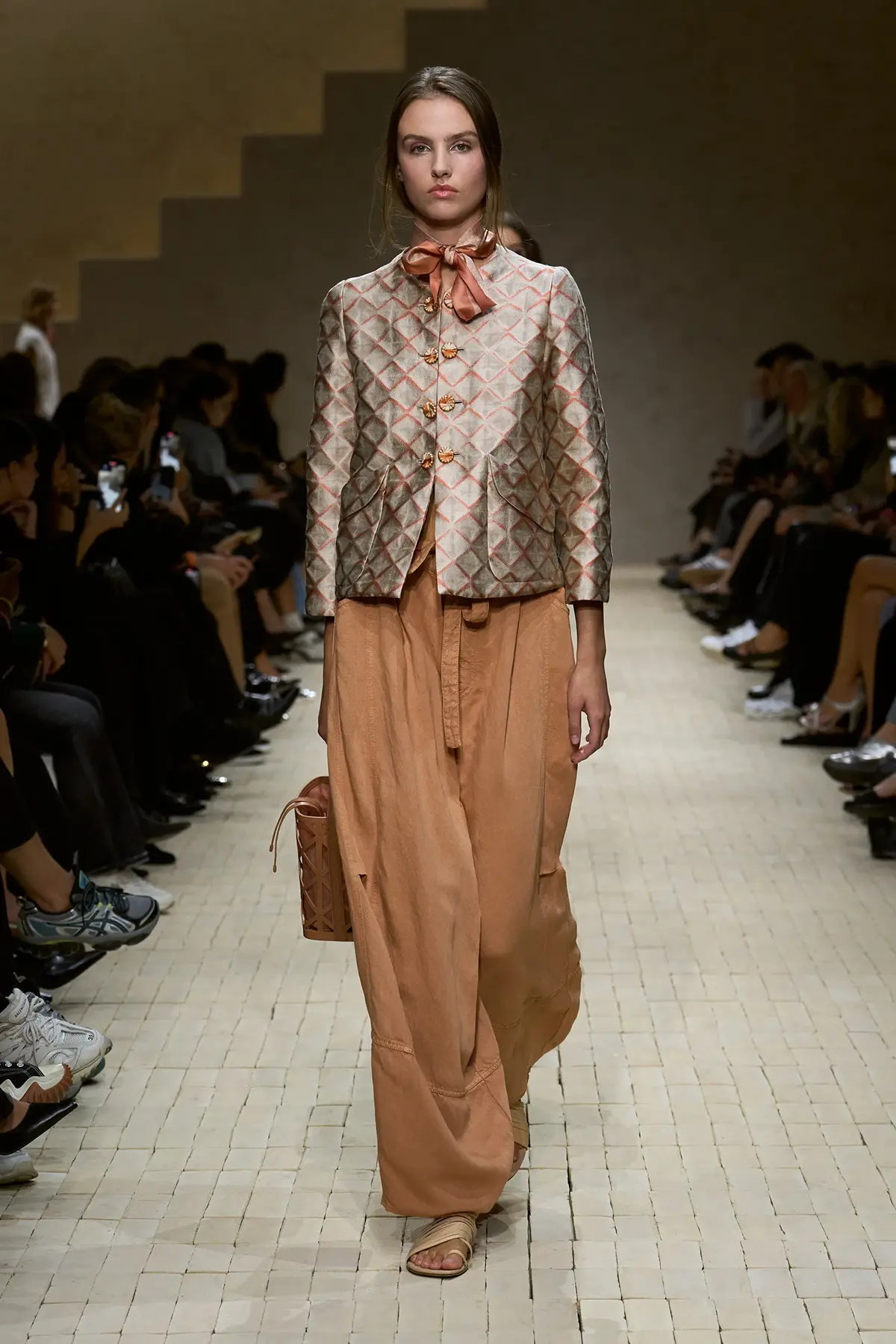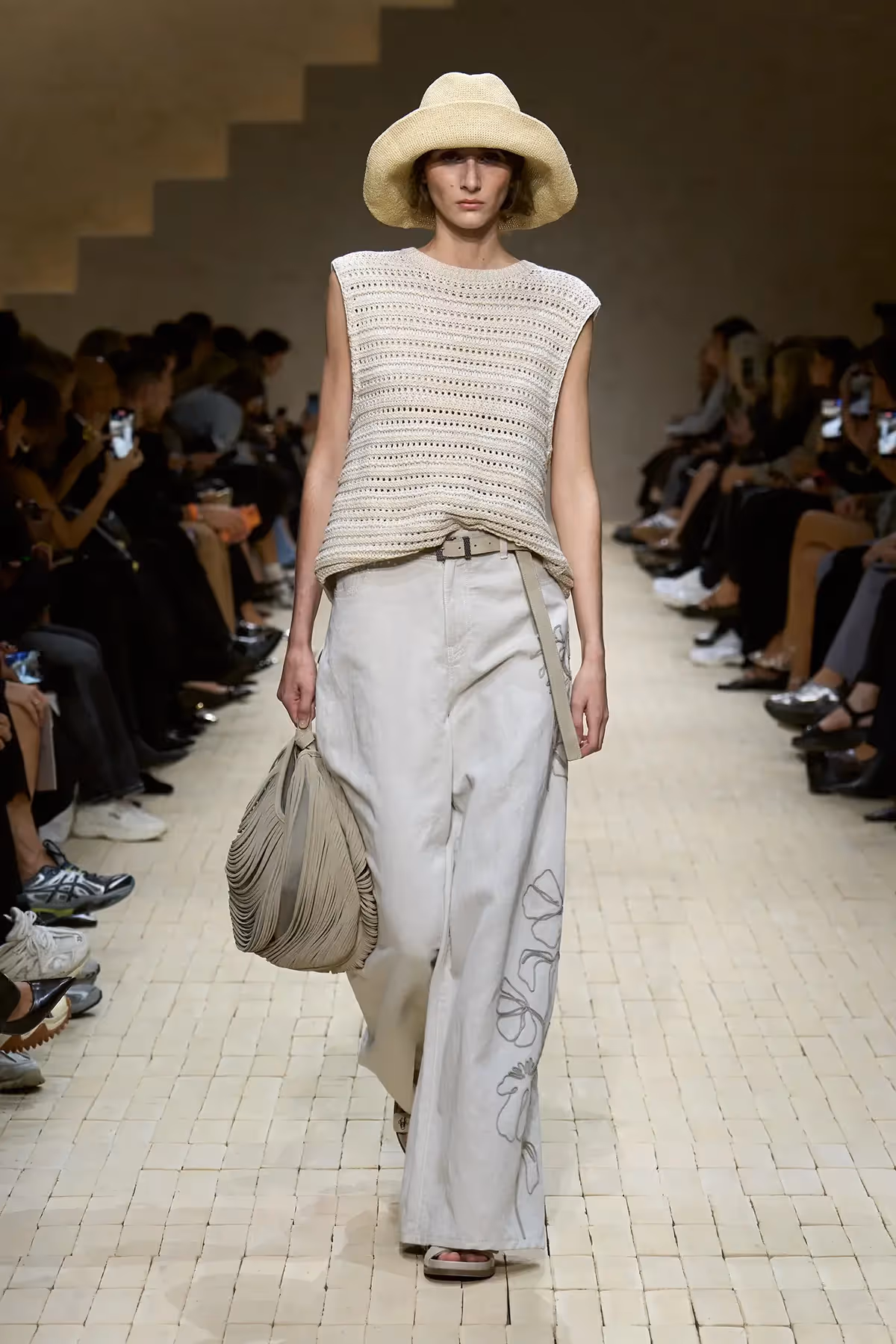 مع مرور العرض، ظهرت قطع تحاكي ذكريات السفر، بناطيل حريرية مطبوعة، جاكيتات بطبعة إيكات، بلوزات بأكتاف مطرزة وكورسيهات بأحزمة محددة، كلها عناصر تجعل المشاهد يلمس عبق الثقافات التي اجتازتها هذه الأزياء، دون أن تفقد شخصيتها الإيطالية الواضحة.
