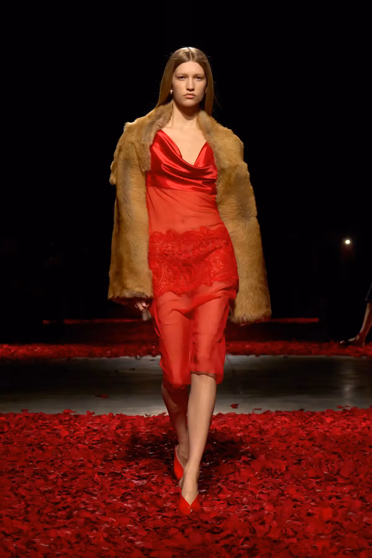 "كانت العشرينيات لحظة من الحرية، حيث تمرد الناس وخلقوا مساحات لأنفسهم" وتأتي الفساتين الحريرية المستقيمة مزينة بتطريزات دانتيل على الخصر المنخفض، أو مغطاة بشرائط من الفرو، بينما يتم تطبيق تفاصيل الحقبة على الجلود العملية والتصميمات المفصلة. تظهر الطبعات الحالمة في ومضات، بينما تكون الحقائب اليدوية مملوءة بشكل سريالي بالفرو وتُصمم الخزائن المسرحية بالكامل من خيوط الجيرسي في إعادة تشكيل سائلة للأشكال المألوفة.