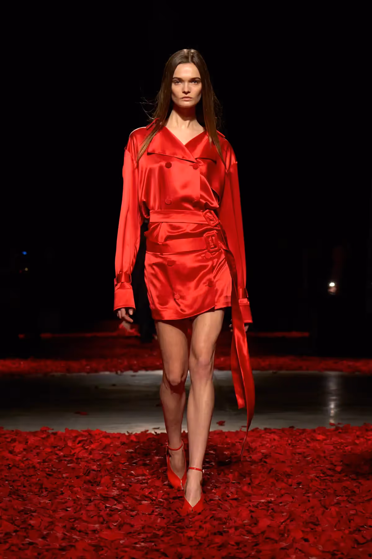 في جميع أنحاء المجموعة، يتم التعبير عن الازدواجيات الشعرية لأداء Tanztheater الألماني – الحوارات العاطفية بين الحب والشوق، الحرية والتحكم، الرومانسية والشغف – من خلال الشكل والتصميم: معاطف ساتان سائلة مربوطة بإحكام على الجسم؛ كشمير، ناعم على الجلد، موضوع بجانب الجلود اللامعة؛ الريش مسطح؛ الخشخاش ينساب من سيقان تشبه الشريط.