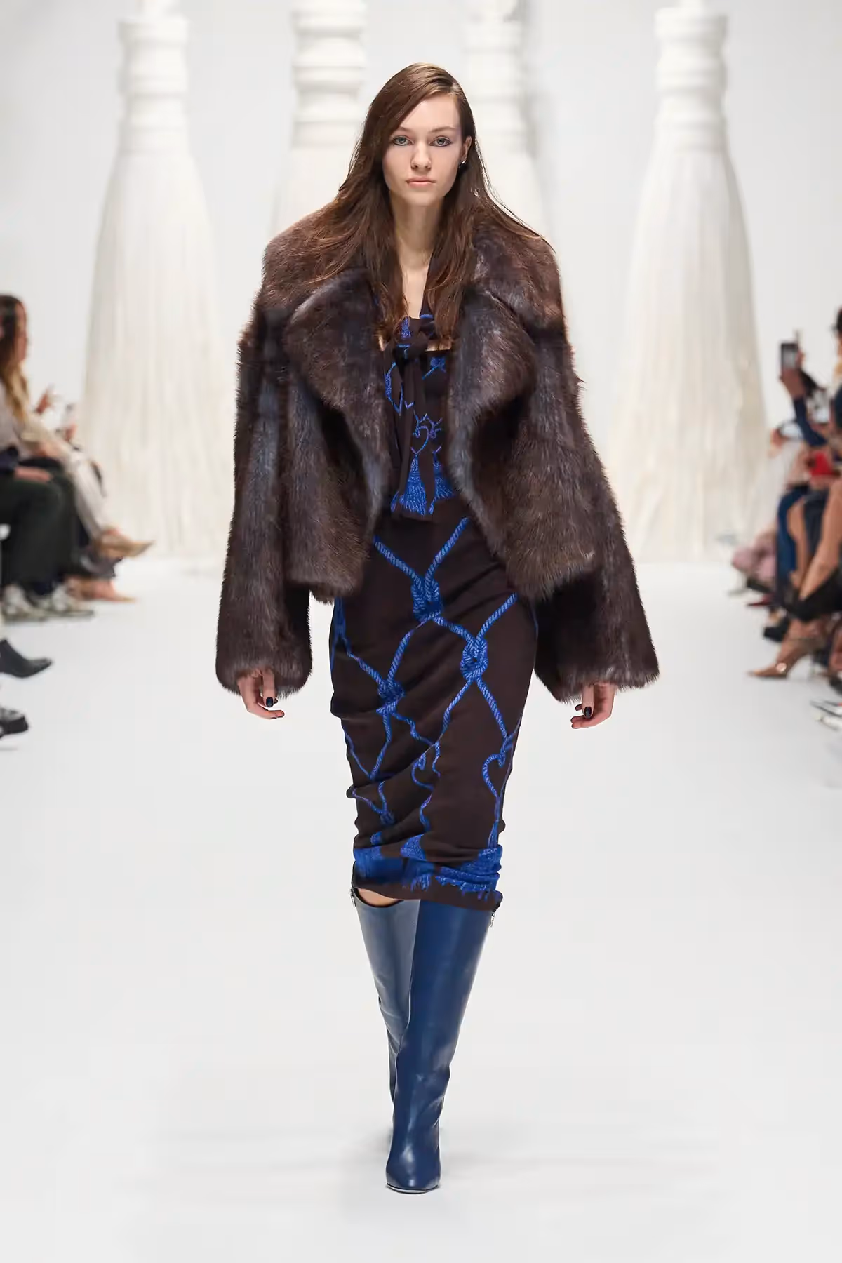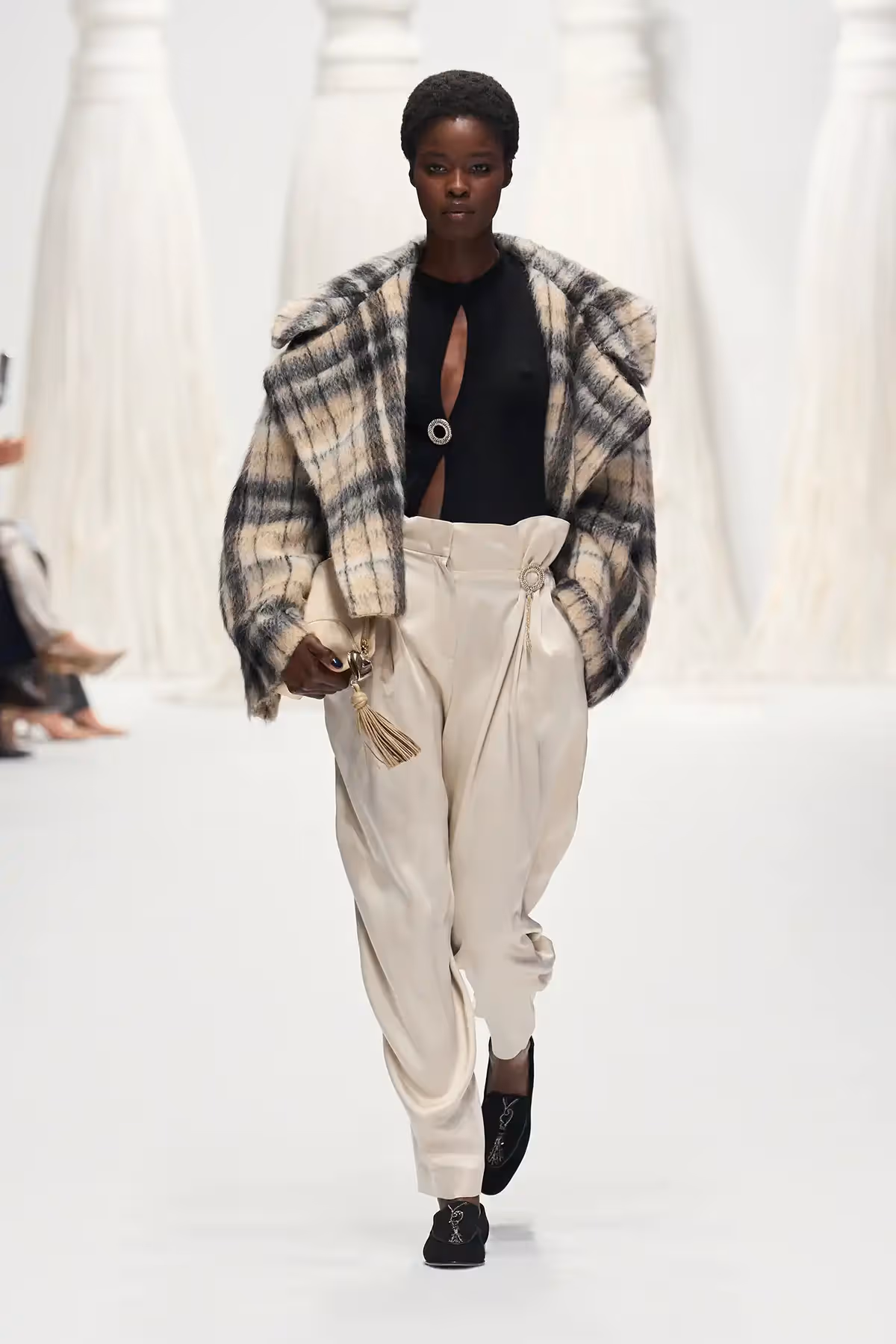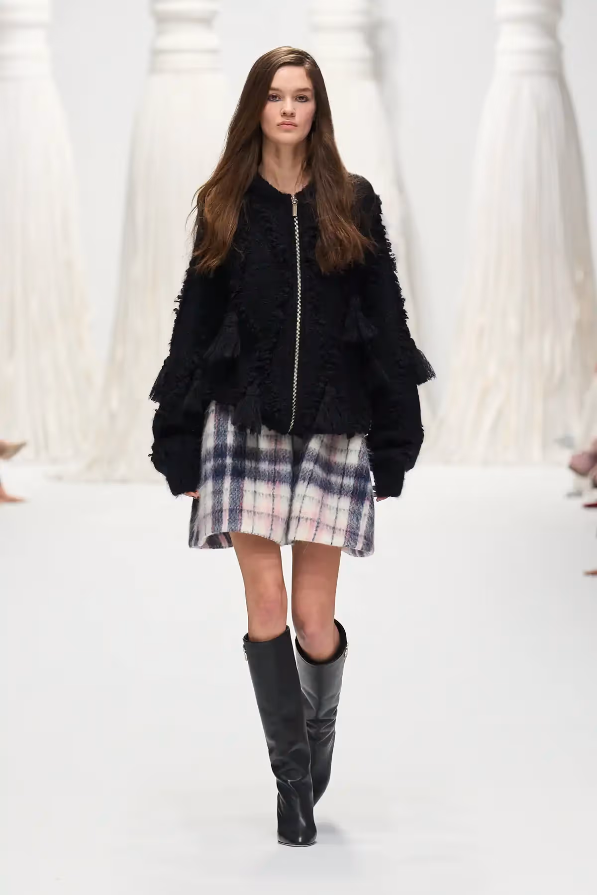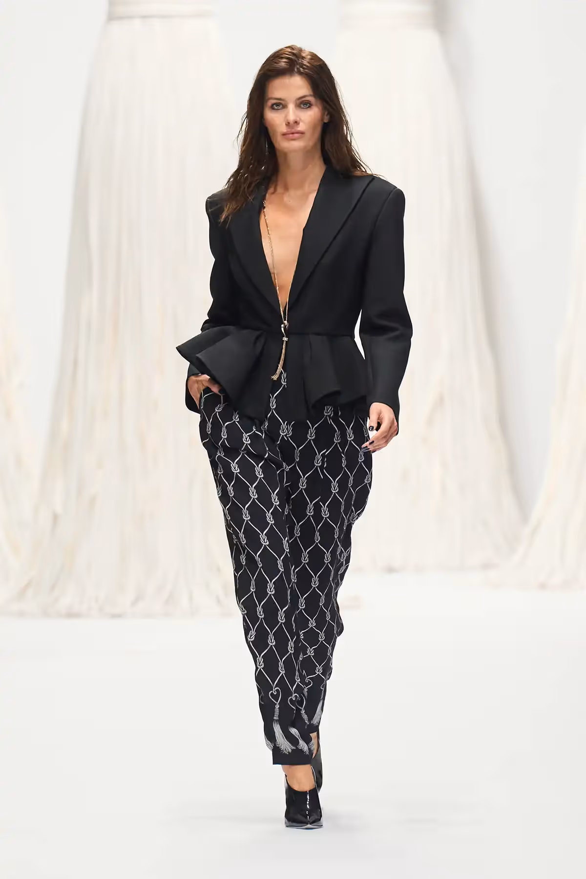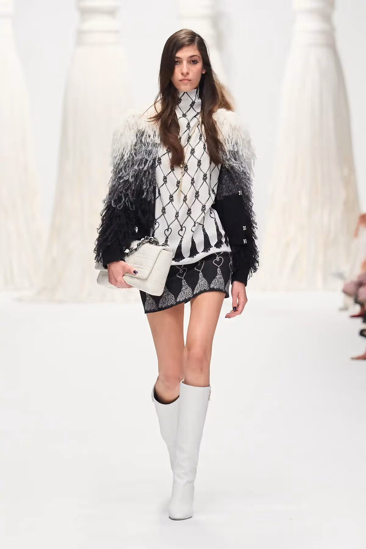 كشفت دار جيني الإيطالية عن تشكيلتها الجديدة لموسم خريف وشتاء 2025 - 2026، تحت إشراف سارة كافازا فاتشيني، المديرة الإبداعية للعلامة، التي نجحت في ابتكار تصاميم فريدة تحتفي بملامح الأنوثة المرهفة، لتثري أرشيف العلامة الغني بالنماذج والتصاميم الاستثنائية منذ تأسيسها عام 1962 ولغاية اليوم. وتتزين تصاميم التشكيلة بالشراريب، وهي عبارة عن مجموعة من الخيوط المجدولة في نهايتها، والتي تشير في الثقافة الهندية إلى مفهوم الصحوة الروحية التي تحثّ الإنسان على تقدير النعم، فيما يدل وجودها في الشعارات الدينية والعسكرية إلى وقار ونزاهة من يرتديها. كما برزت تفاصيل الشراريب في تشكيلة الدار لعام 1993، عندما كان جياني فرساتشي المدير الإبداعي للعلامة، إذ تميزت التصاميم حينها بشعار جرافيكي على شكل خطوط هندسية متقاطعة لتشكل شبكة تأتي في نهايتها الشراريب الرائعة، والتي تحمل اليوم إضافة قلب كرمزٍ للحب الدائم، مما يضفي على القطع أناقة لا مثيل لها. أمّا بالنسبة لسارة، فتمثل الشراشيب رمزاً لمفردات الأنوثة لتزين الأزياء الجديدة، بما فيها السترات الرسمية والسراويل الفضفاضة والصدريات وربطات العنق وغيرها. وتهيمن تفاصيل الشراريب على جميع قطع التشكيلة، إذ تحمل قمصان الرجال طبعات الشراريب المميزة ويزدان بعضها بتطريزات فريدة تم إبداعها بالاعتماد على تقنيتين أو ثلاث تقنيات مختلفة، فيما تزهو كنزات المبتكرة من صوف الموهير والجاكارد بتطريزات ثلاثية الأبعاد. كما تظهر الشراريب كقلادات مطرزة على الأحذية المسطحة وغيرها من الأحذية المفتوحة من الخلف، وبتفاصيل الحرير والكريستال على القطع المحبوكة والمفعمة بالدفء، إضافةً إلى شراريب الجلد على الحقائب.