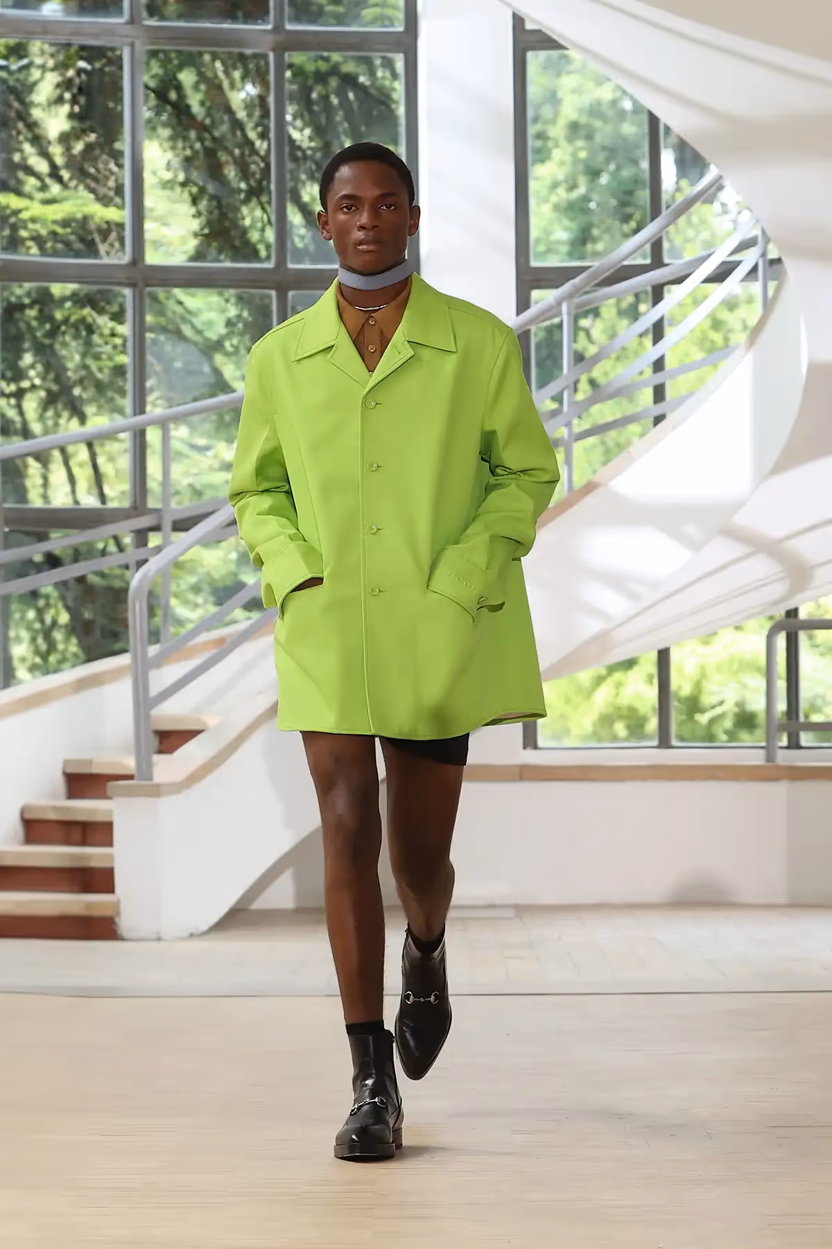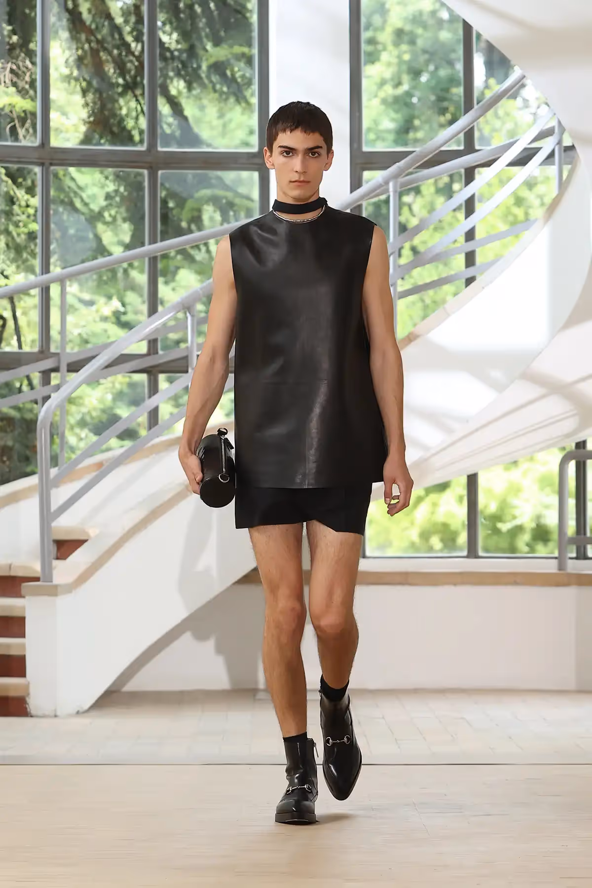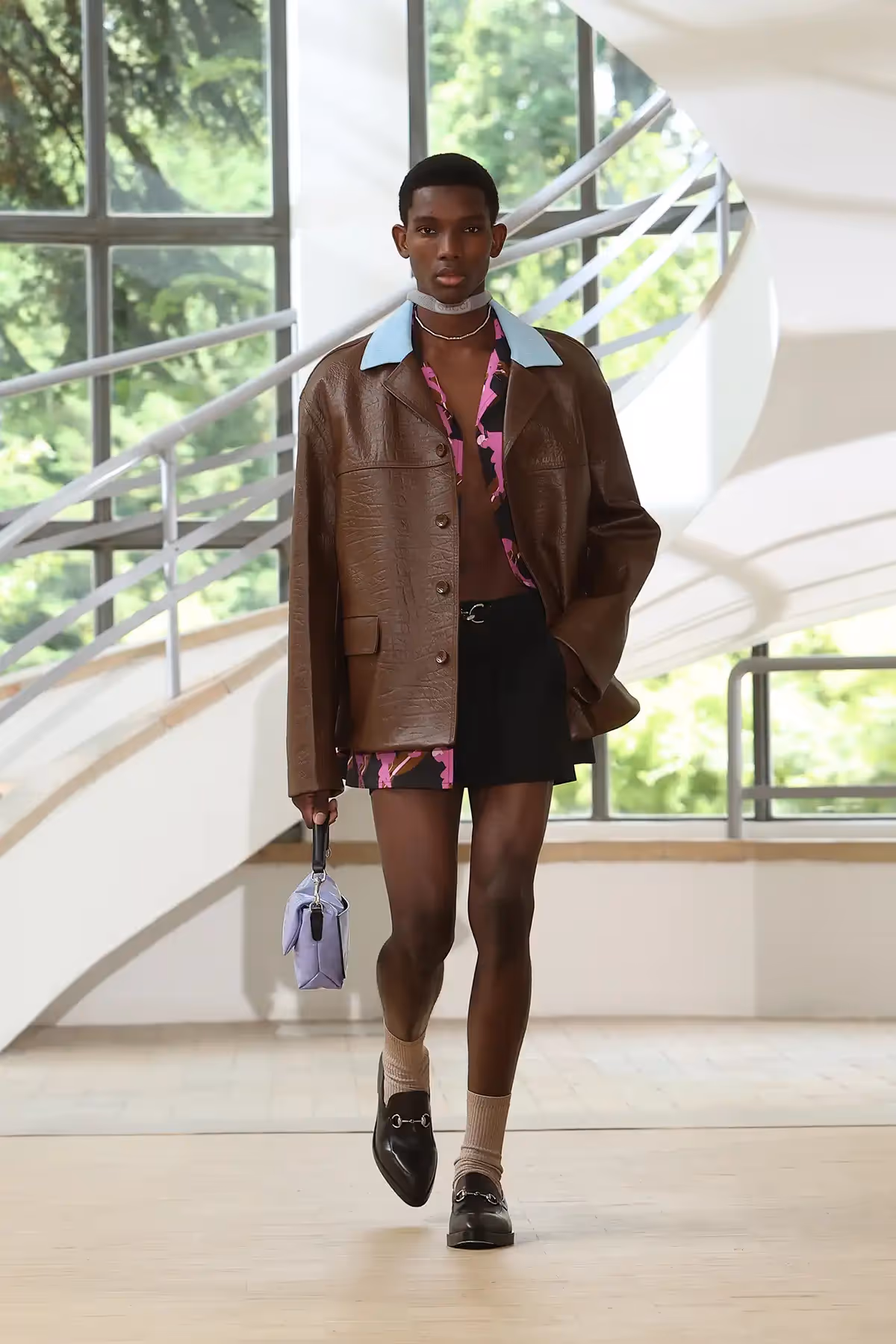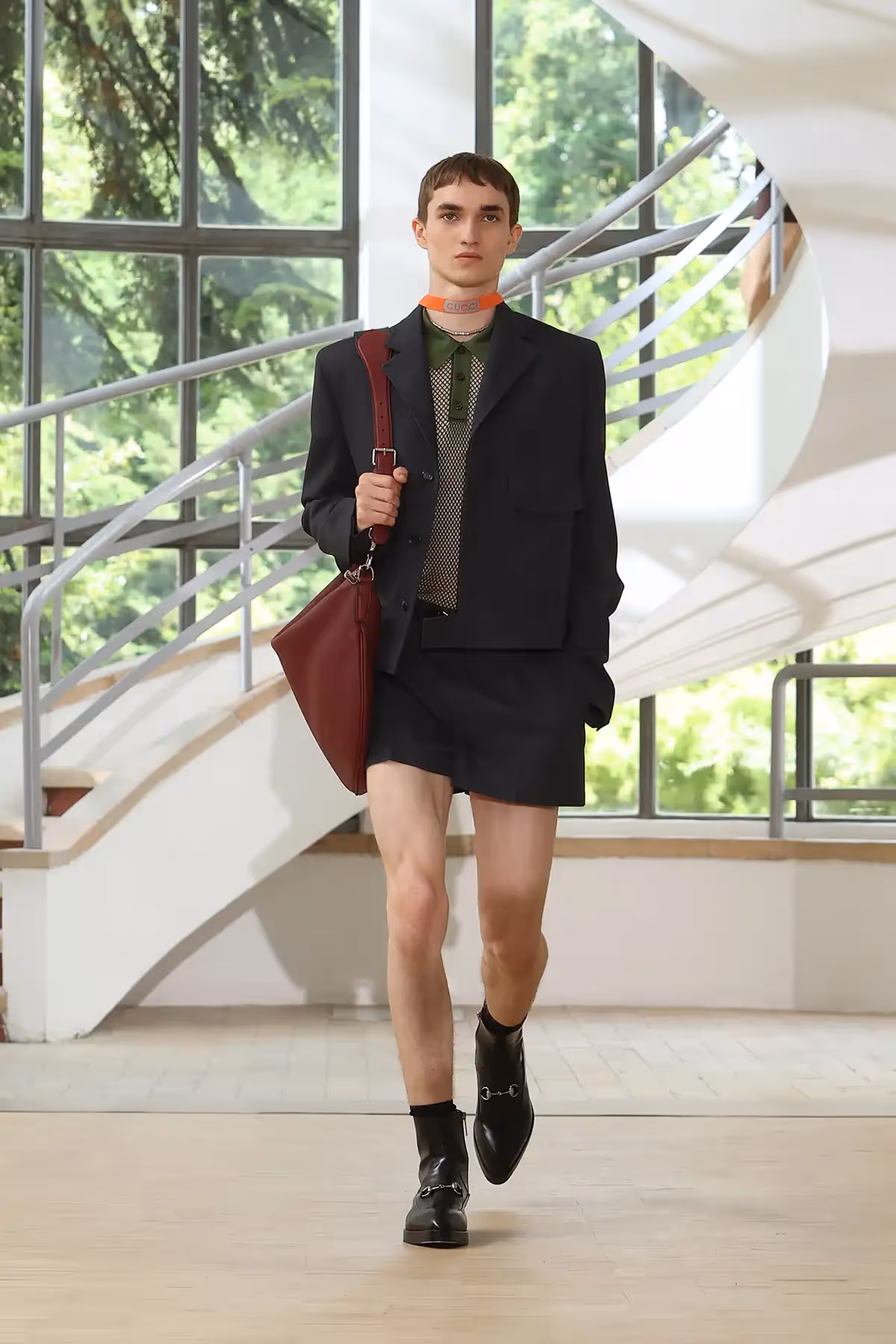 الأحذية: يستمرّ الطرف المستدقّ المنحوت في إعادة ابتكار حديدة لجام الفرس Horsebit، ويتّخذ شكل جزمة أو حذاء "لوفر". ويبرز على النعل المقلوب لحذاء Gucci cub3d الرياضي علامة حرفَي GG المتشابكَين بتأثير ثلاثي الأبعاد، وكذلك على النعل المقلوب للأحذية السهلة الانتعال المصنوعة من قماش "سكوبا".