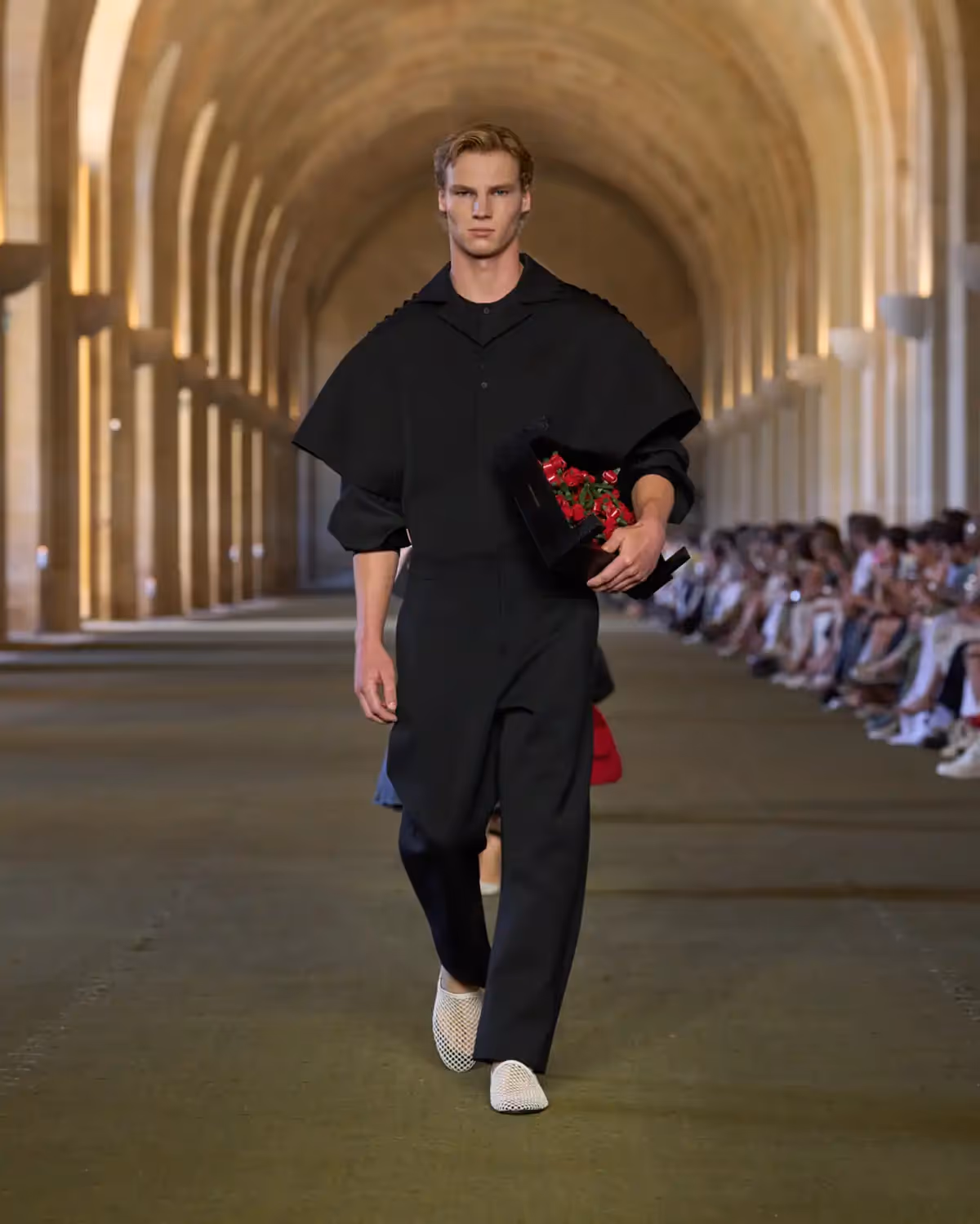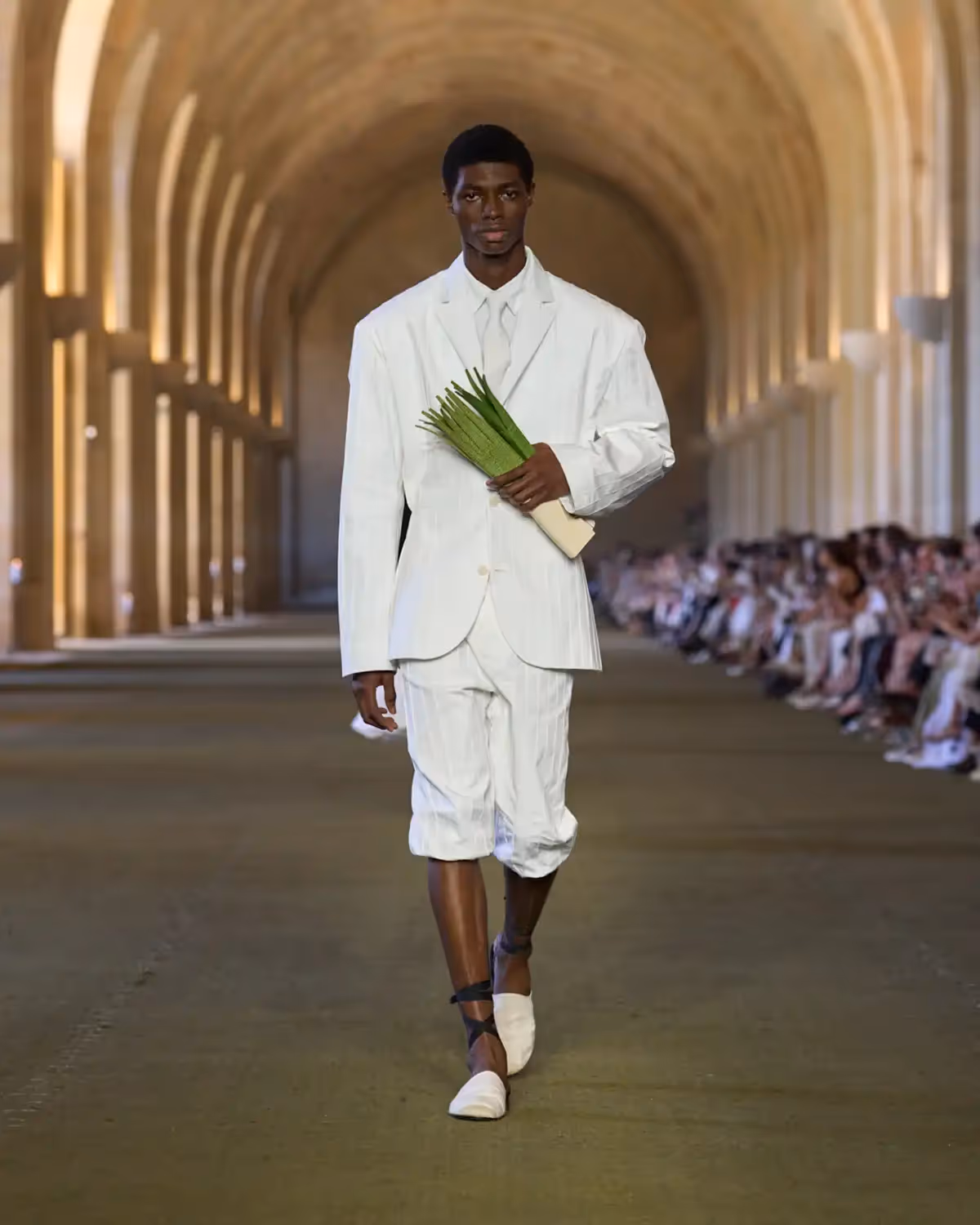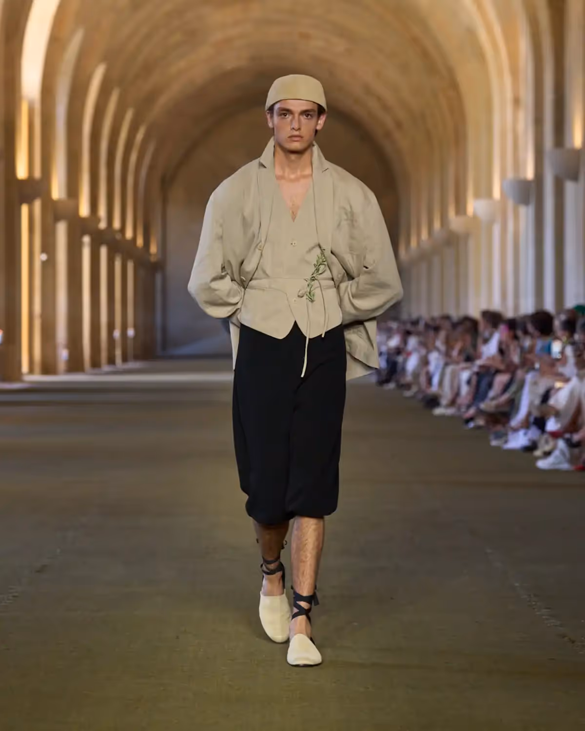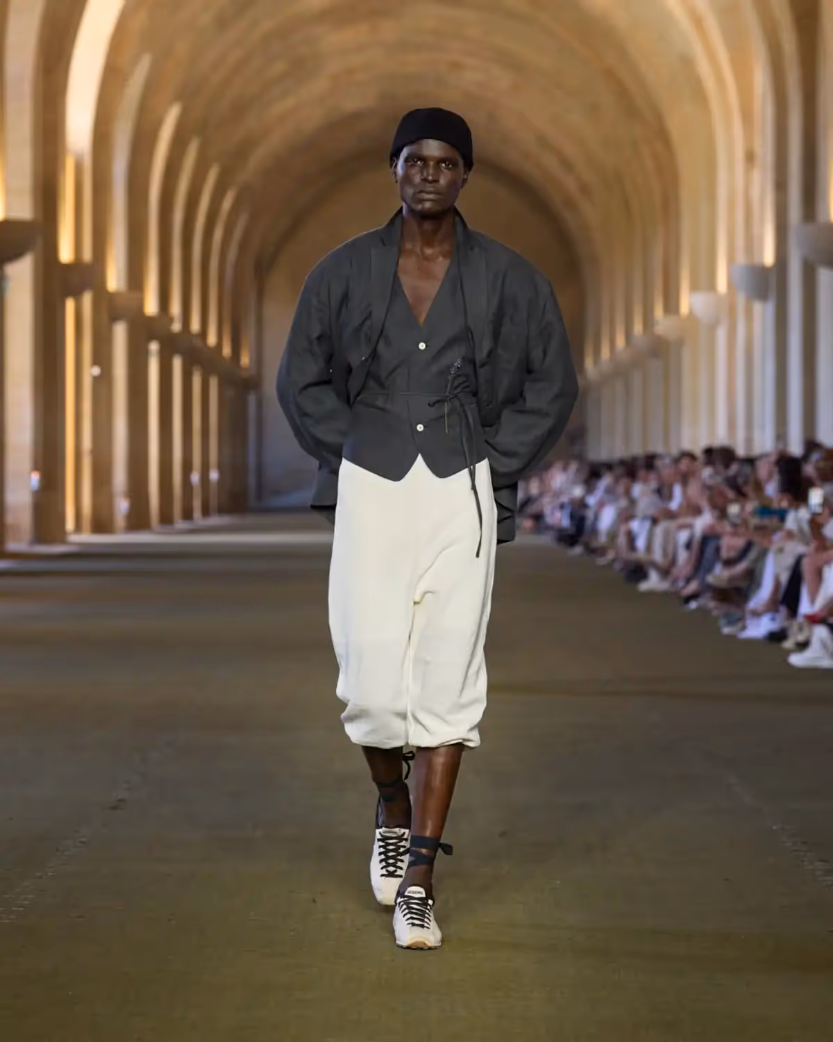 وُلد عرض «Le Paysan» من ذكريات طفولة سيمون في جنوب فرنسا، وهو بمثابة رسالة حب موجهة إلى أولئك الذين شكّلوا شخصيته منذ البداية، وإلى الإرث الريفي لعائلته، وشاعرية الحياة اليومية الهادئة، وأحلامه بعالم الأزياء. وكأنها رؤيا حالمة متجذرة في التجربة، يمزج العرض بين الذاكرة والخيال ليرسم مجموعة تكرّم قطعاً بسيطة ولكنها محمّلة بالقصص، منسوجة بين ماضٍ ومستقبل دار JACQUEMUS.