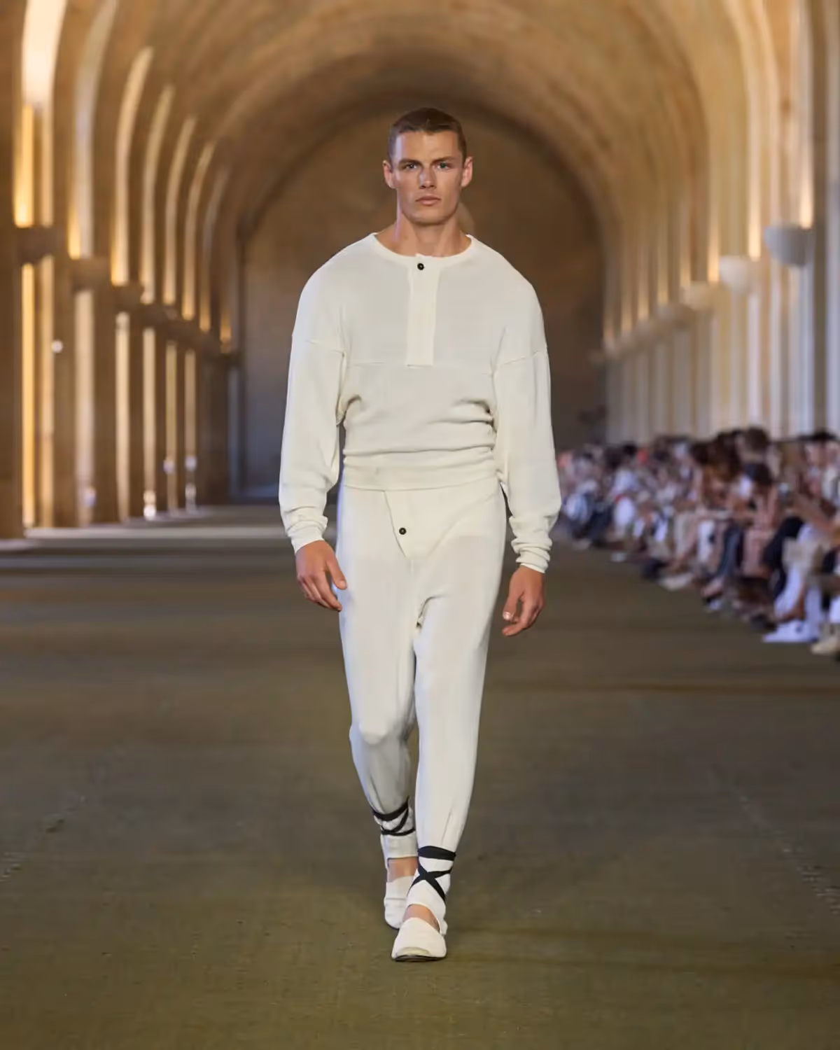 وتستكمل الإطلالات بأحذية الإسبادريل الصيفية، سواء كانت على شكل صندل بكعب، أو مسطح، أو مغلق من الخلف. حتى للرجال، تظهر الإسبادريل بأشكال خفيفة تُربط بشرائط غروغران واسعة حول الساق.