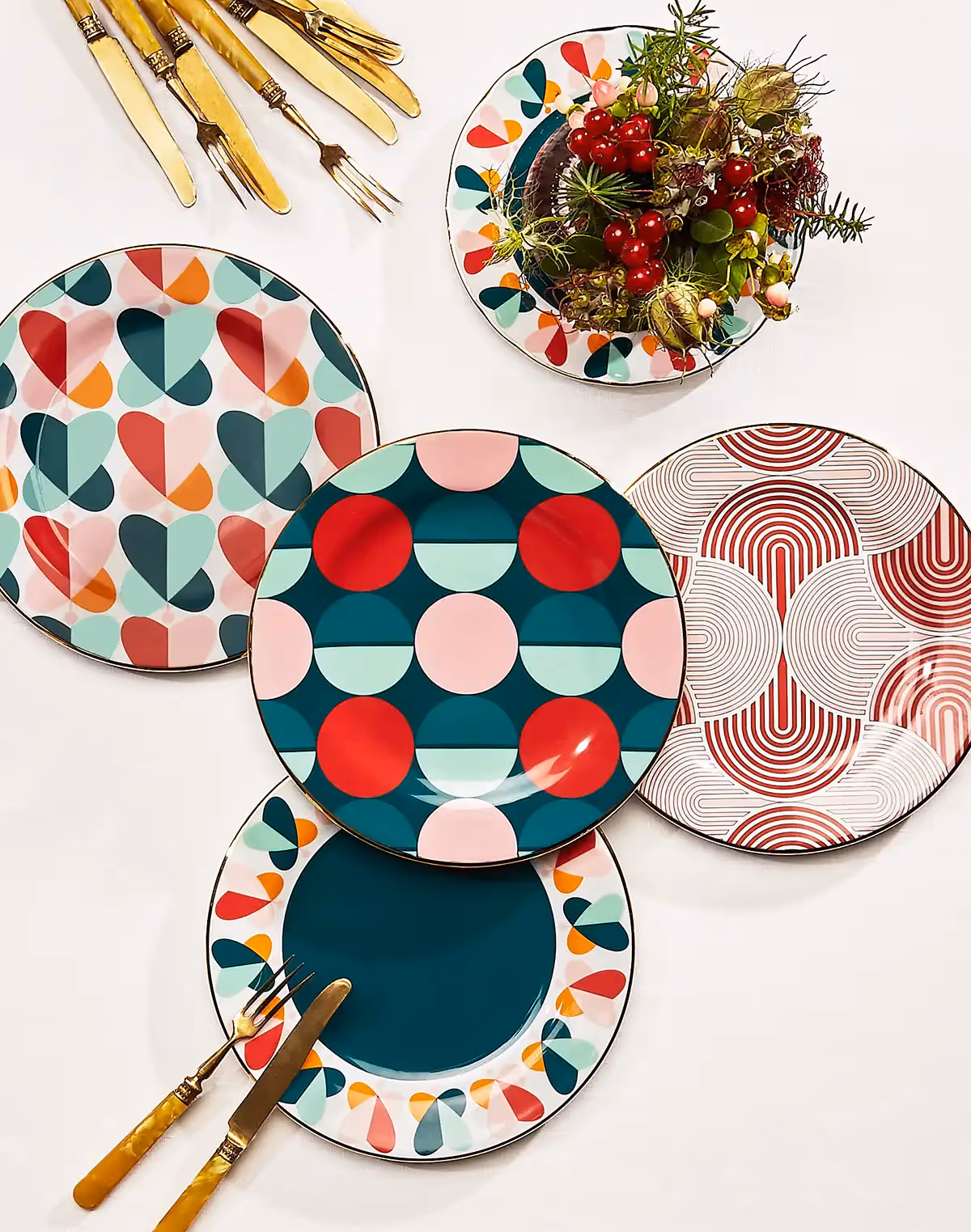 كل قطعة، بدءًا من أطباق الحلوى الخزفية "Dessert Plates" المصنوعة في كومو على أيدي حرفيين مهرة وصولًا إلى مجموعة المآزر المزخرفة "Isis"، تحكي قصة فريدة من نوعها بفضل الرموز hg صوفية والرعوية المتغلغلة في تركيباتها المعقدة.