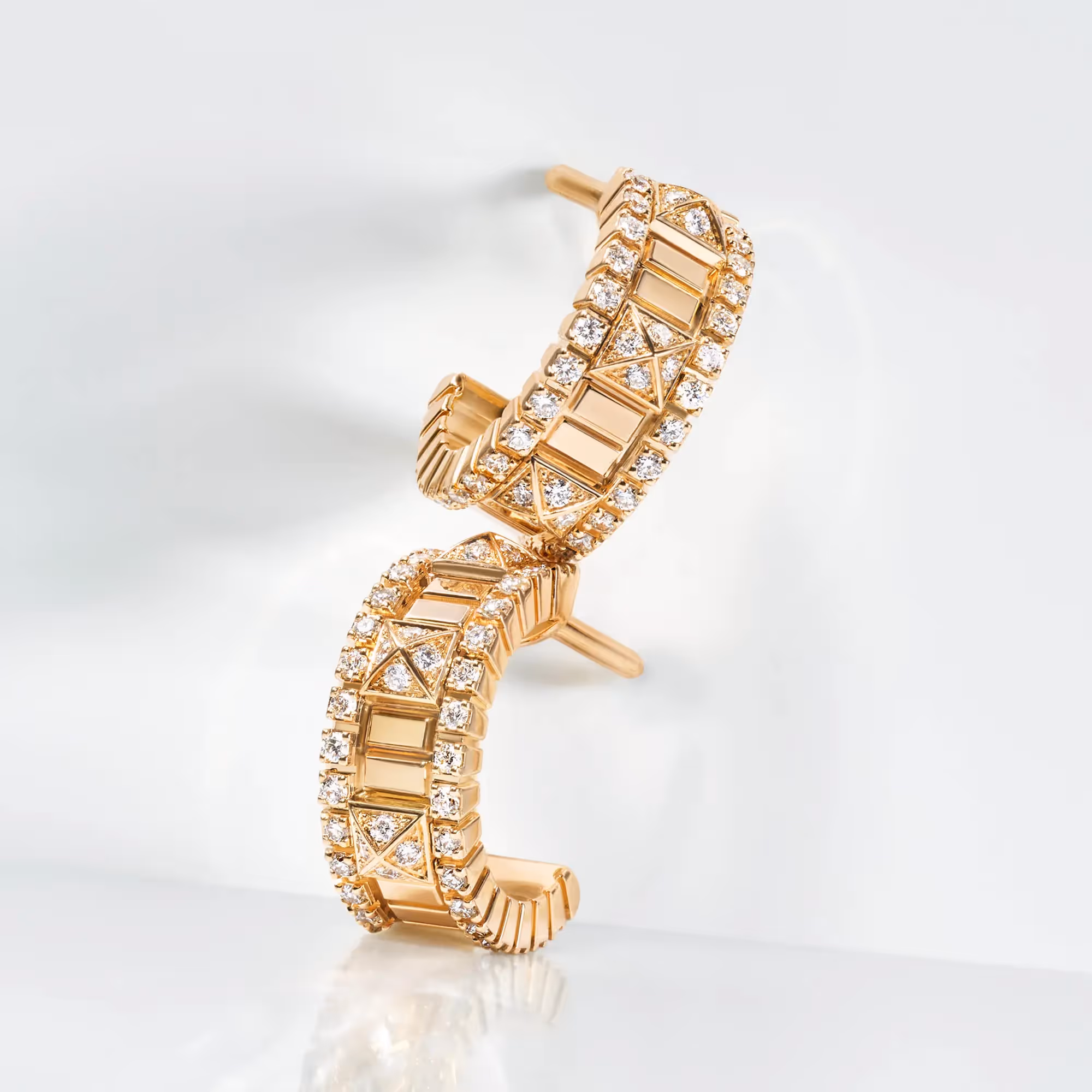 لتوسيع آفاق التعبير عن الذات، يُقدّم التصميم الثاني للقلادات والأقراط لمسة شخصية تُكمّل مجموعة تتألق هذه الأقراط والحُلى المتدلّية بشكل حلقة، المصنوعة من الذهب الوردي، أو الأبيض، أو الأصفر عيار 18 قيراطاً، بتشكيلة رائعة من الماس المتقزّح والأحجار الكريمة النابضة بالحياة. ويأتي الانسجام التام بين الخطوط والحركة، وبين النعومة والقوة لابتكار سيمفونيّة متناغمة تُعبّر عن أسلوب مميّز لا مثيل له.