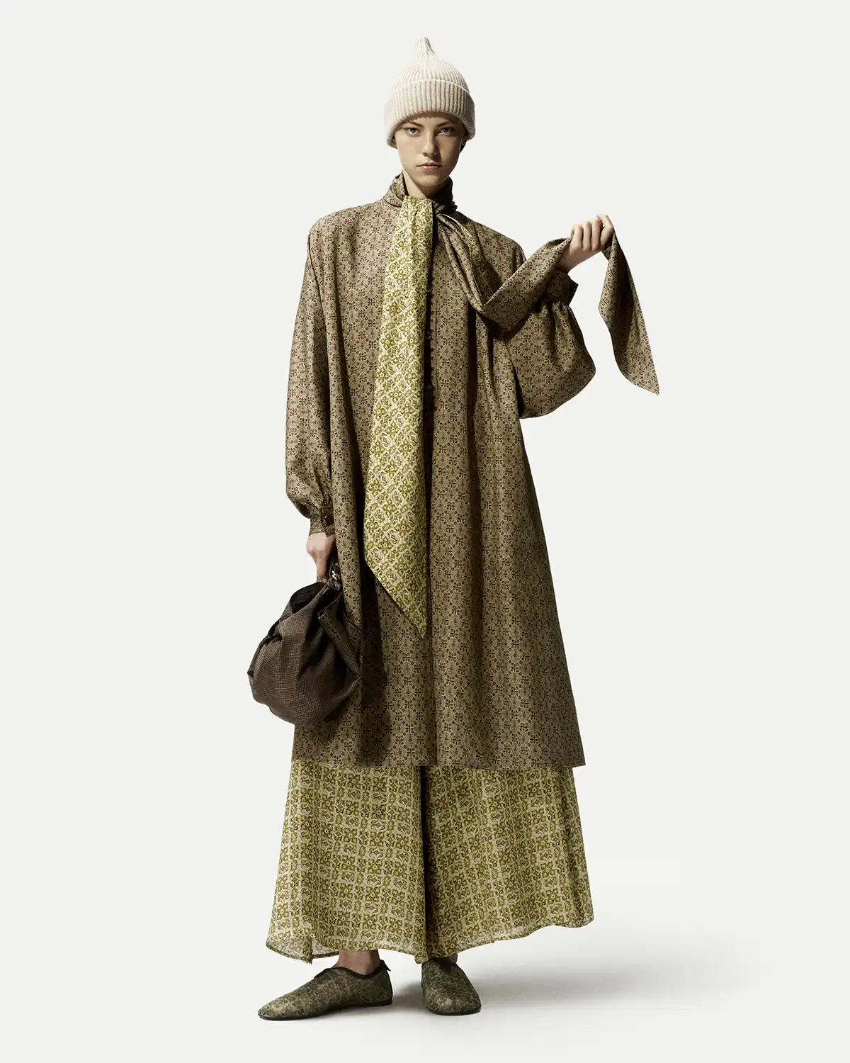 المجموعة بدت وكأنها لوحة نابضة بالحياة، درجات لونية غنية امتدت من الترابية الدافئة إلى الذهبية المتألقة، مع لمسات لونية جريئة تحاكي ضربات فرشاة على قماش. النقشات تشبه لوحات فنية، والتدرجات تكشف عن دقة لا متناهية في صناعة الأقمشة التي لطالما تميّزت بها الدار.