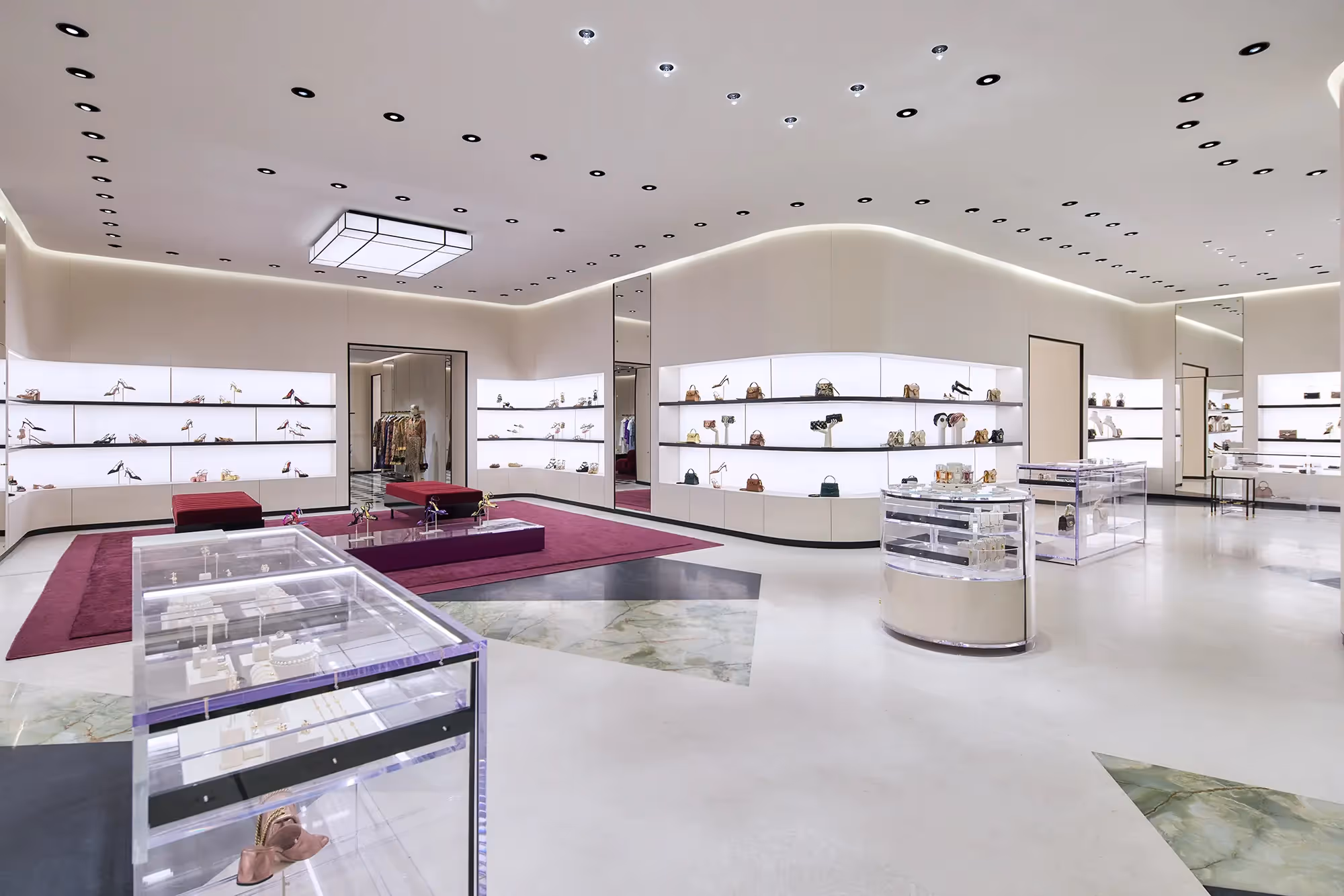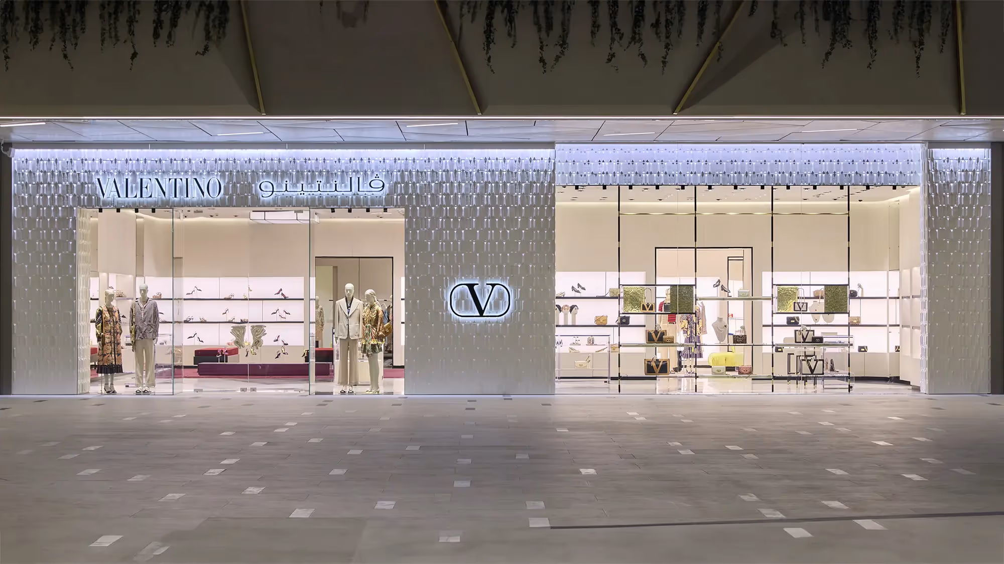ويعكس البوتيك الجديد هوية دار فالنتينو كدار للأزياء الراقية، من خلال التصميم الداخلي الذي يتماشى مع نهج العلامة الفنية مع أنماط هندسية أيقونية، بينما يسهم الخشب في Sahara Noir و Botticino والجمالية. تتكون فيه الأرضيات من مزيج من رخام إضفاء الدفء والأناقة والرفاهية الهادئة. يزخر المتجر بمجموعة متنوعة من المواد والتفاصيل المستوحاة من مباني روما القديمة، مما يوفر تجربة تسوق خاصة وخدمة مميزة في بيئة توفّّر قدراً أكبر من الراحة.