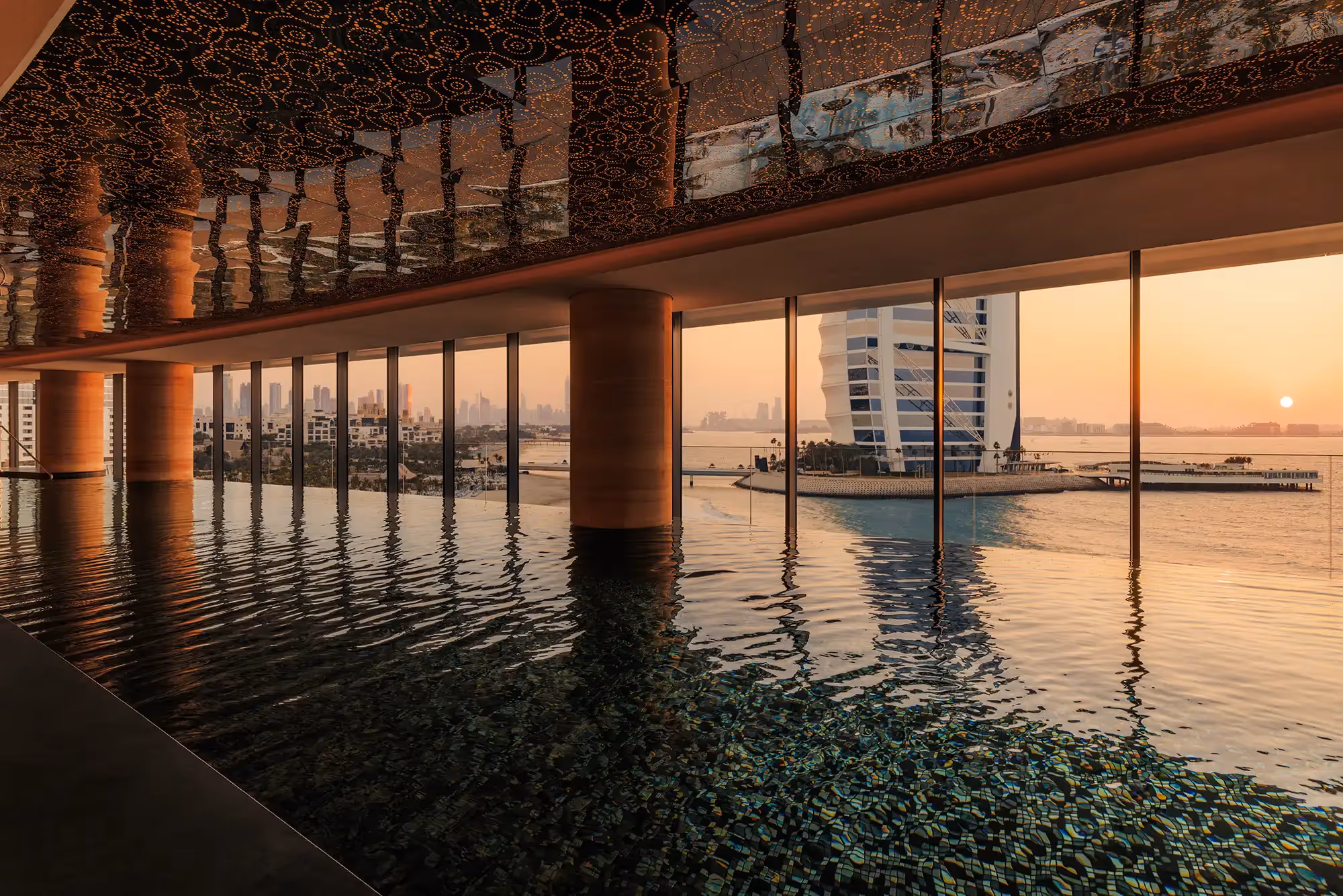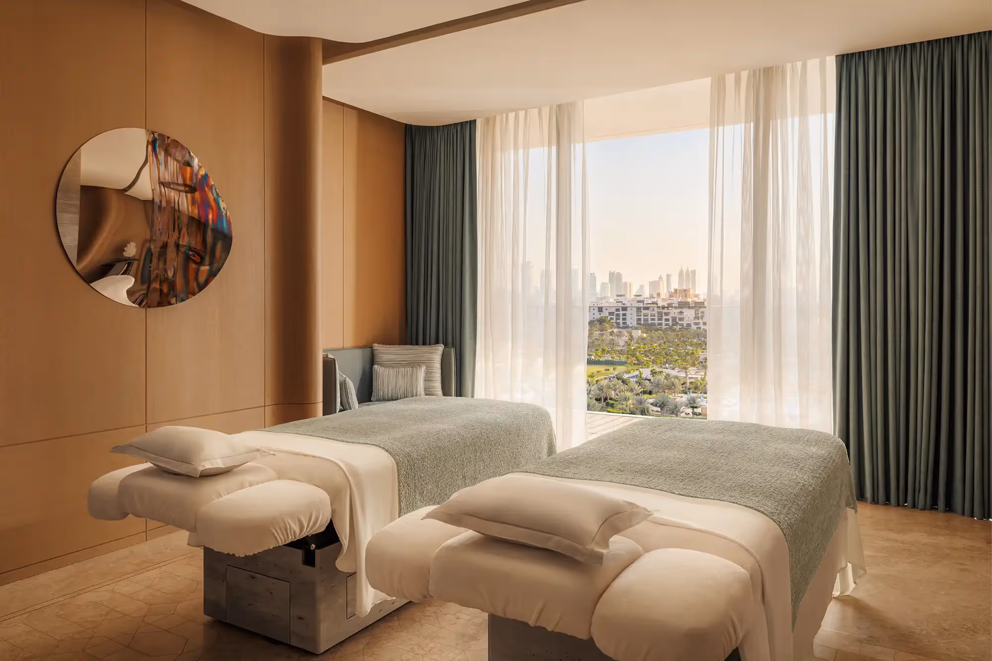 يمتد السبا على ثلاثة طوابق أنيقة، ويضم حوض سباحة داخلي بطول 20 متراً، واستوديو للياقة البدنية مجهز بأحدث المعدات، بالإضافة إلى نادٍ رياضي ومساحات خاصة للسيدات، فضلاً عن 13 غرفة علاجية فاخرة، تتميز كل منها بتراس خاص يطل على مناظر خلابة للخليج العربي.