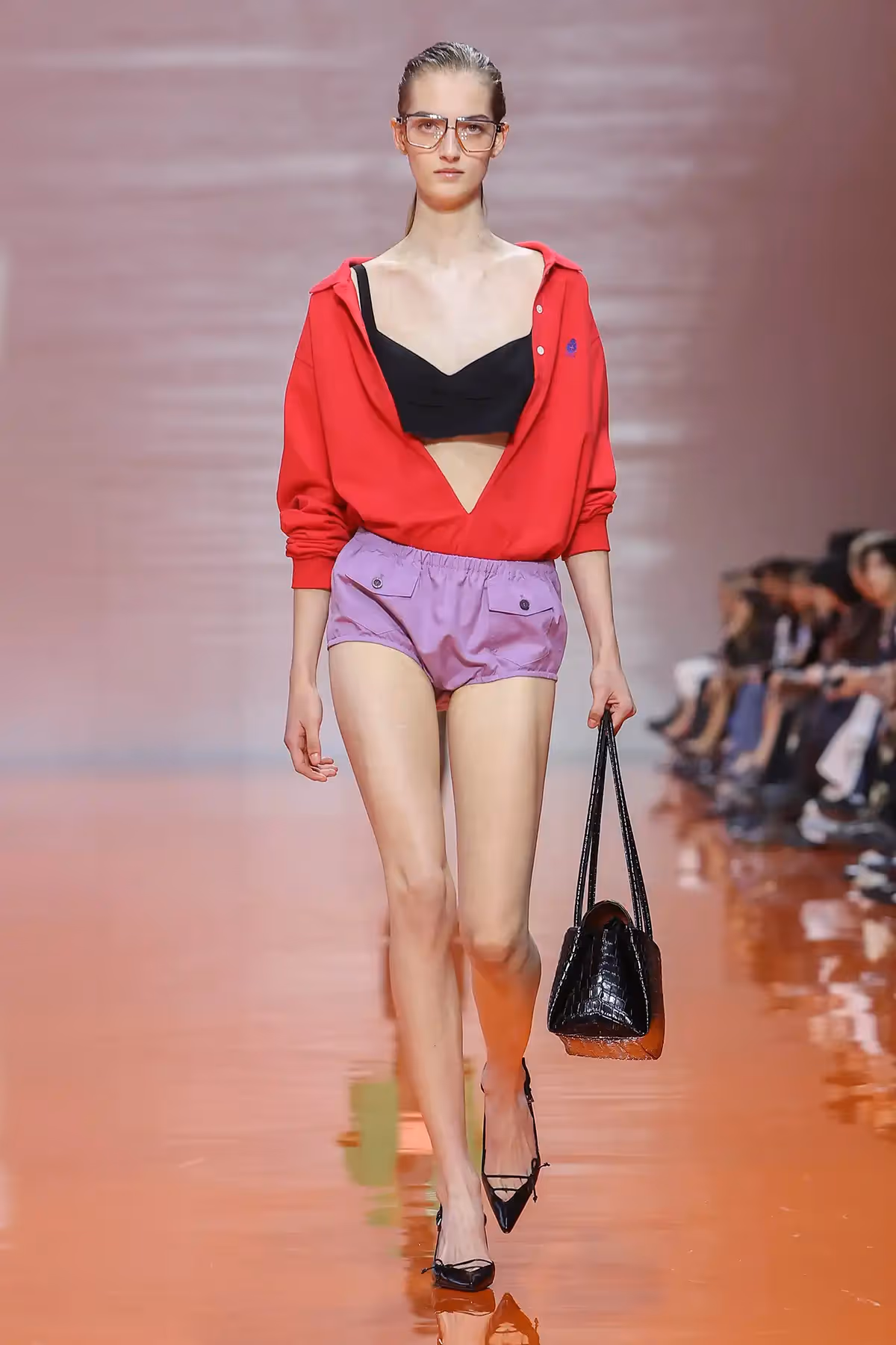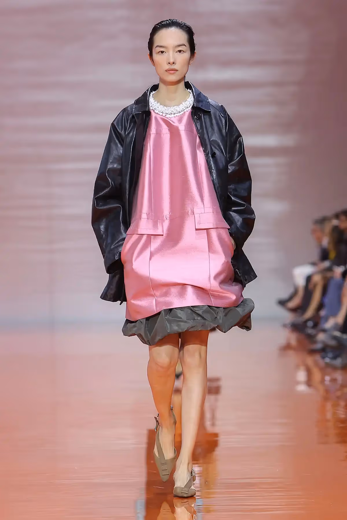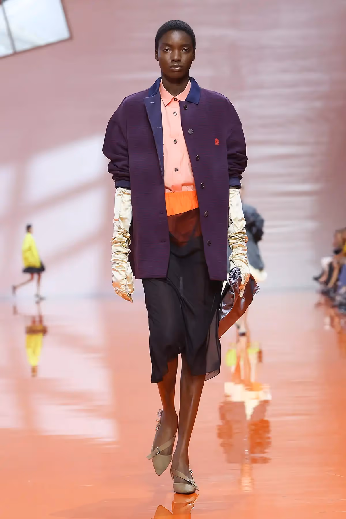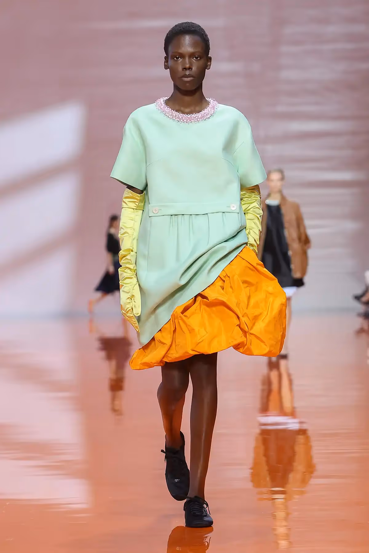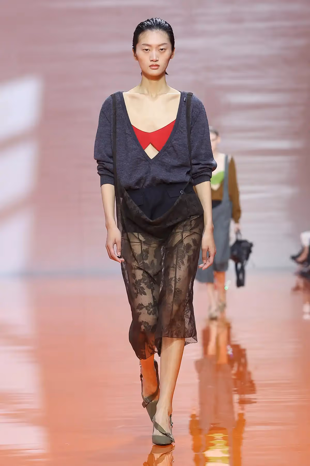 ما لفتني في هذا العرض هو الطريقة التي تعاملت بها برادا مع فكرة التناقض، القطعة التي نعرفها بكونها عملية، تلتقي بقطعة أخرى تُصنّف مسائية، أو أنثوية بامتياز. ولكنّ المزج بين القطع لم يكن عشوائيًا، بل كان دقيقًا ومدروسًا لخلق نوع جديد من الأناقة المعاصرة. كأن برادا تقول لنا إن القواعد القديمة فقدت سلطتها، وإن الحرية الحقيقية في الموضة تكمن في قدرة المرأة على إعادة تأليف هويتها عبر الملابس.