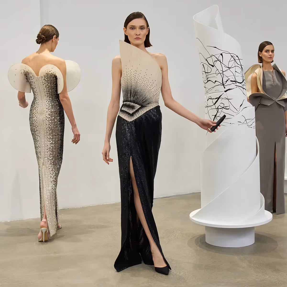 29 يناير 2025؛ باريس: كشف المصمم رامي العلي عن إطلاق تشكيلته المميزة من الأزياء الراقية لموسم ربيع وصيف 2025، والتي تجسد رحلة العلامة نحو استكشاف أبعادٍ جديدة في عالم الموضة، من خلال عرضٍ مميز يعكس أعلى مستويات الإبداع. وتجمع هذه التشكيلة بين الفن البصري وجمال الطبيعة الأخاذ، حيث يصوّر العرض العارضات وهن يتفاعلن مع مجسمات متحركة لتُحاكي أنماطاً هندسية مفعمة بالجرأة.