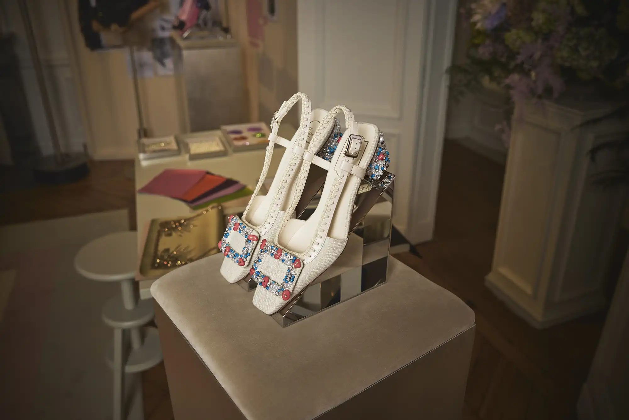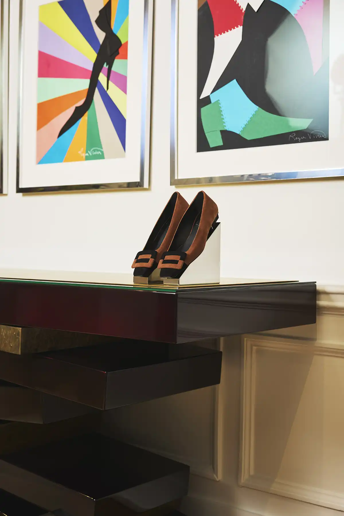 بتنظيم إينيس دو لا فريسانج، يعرض صالون التراث العريق إبداعات روجيه ڤيڤييه عبر العقود، من الخمسينيات إلى التسعينيات، إلى جانب صور لملهماته الشهيرات، لتسبر عبقرية رؤيته التصميمية. ويزين الصالون أثاث من الستينيات والسبعينيات، مثل رفوف معدنية من تصميم كزافييه فيال، وكراسي برشلونة من تصميم ميس فان دير روه، بالإضافة إلى سجاد وستائر من توقيعات فنسنت دارّيه وبيير فري، ما يعكس الجرأة الفنية للدار بدءًا من كعب Virgule وصولًا إلى حذاء Belle Vivier وأبازيمه النحتية.