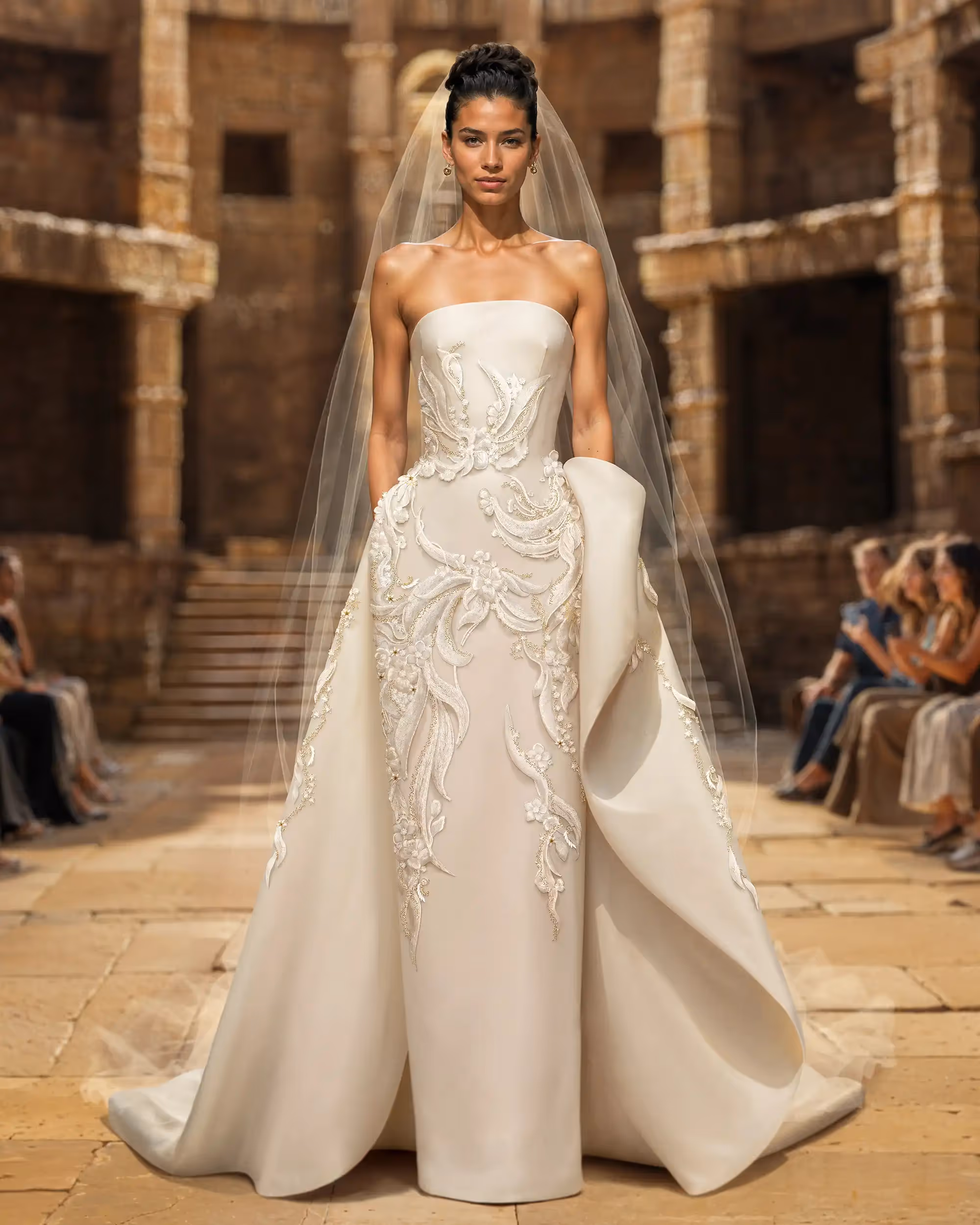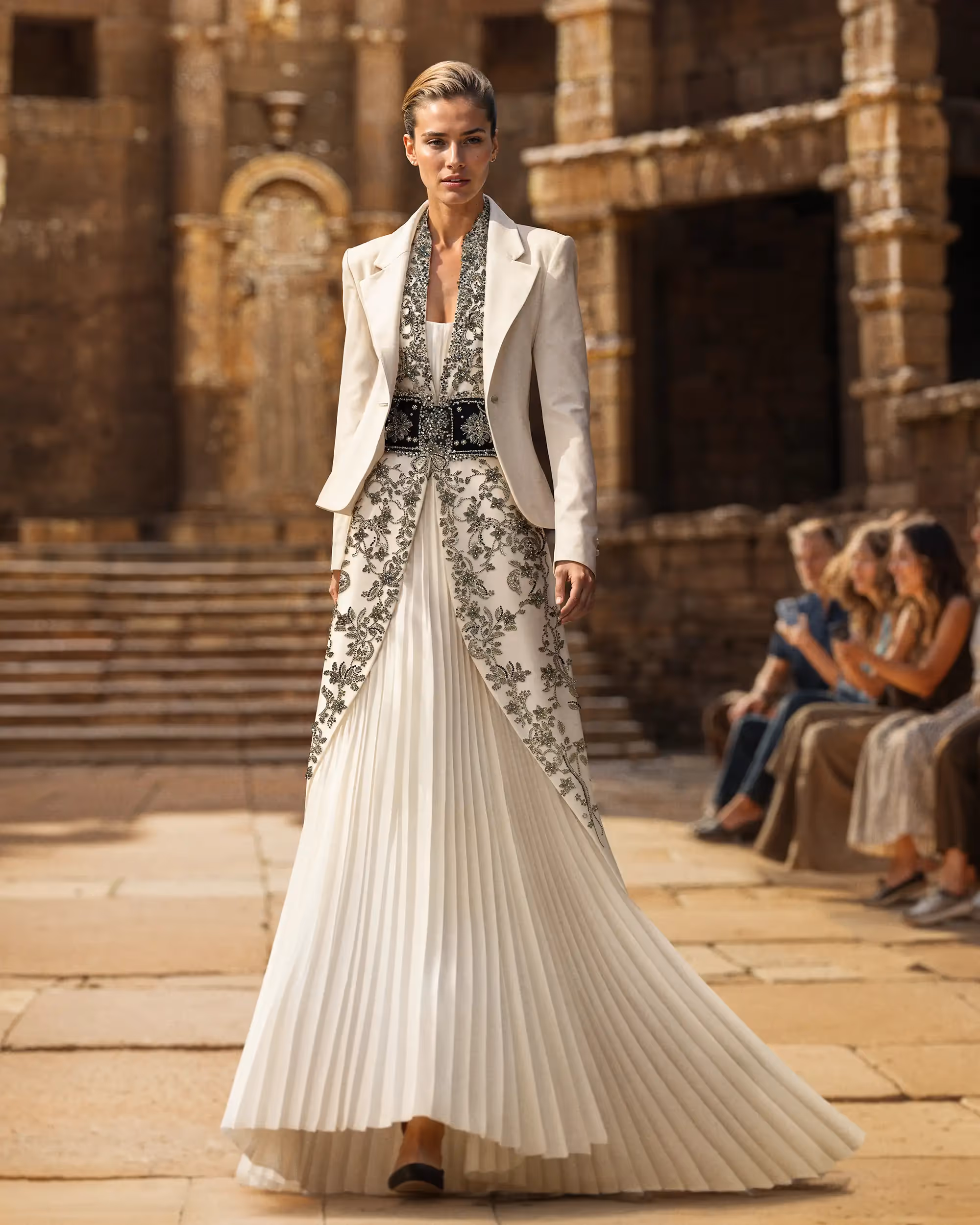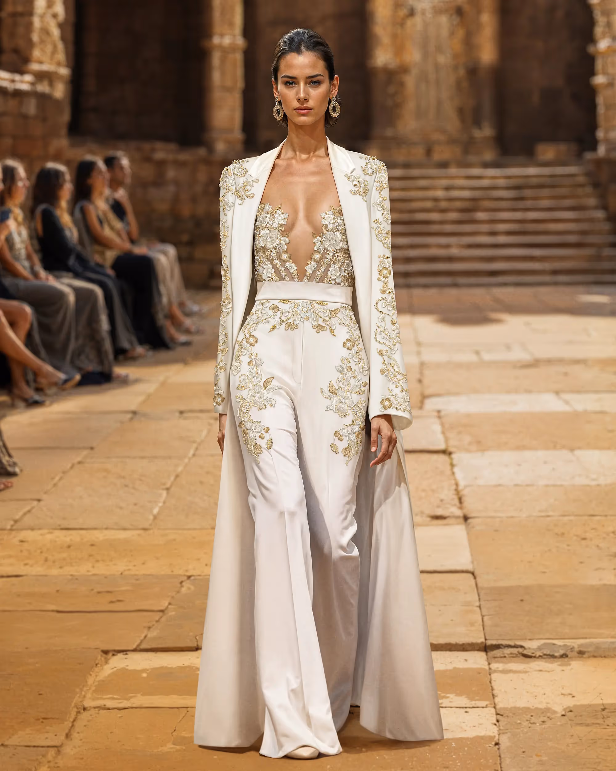 ويختتم المصمم سعيد قبيسي المجموعة بفستان زفاف مدهش، يجسد الفخامة والأناقة بنفس الوقت، وذلك من خلال تصميم مبتكر، والاهتمام بالتفاصيل، ويعد هذا الفستان بمثابة تكريم لإرث الحب والاحتفال الدائم والفرح الذي يتجاوز الزمن.