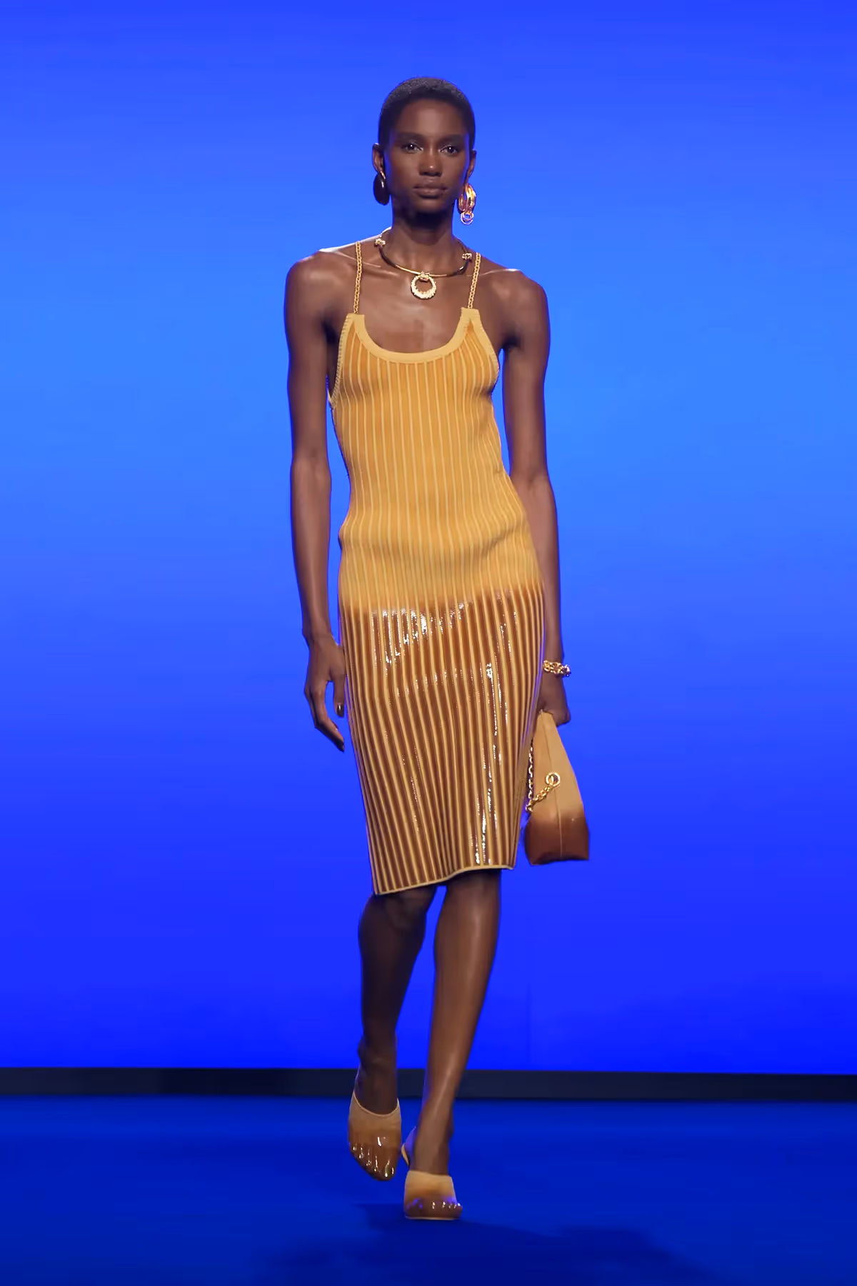 أخيراً وليس آخراً، الأحذية من سكياباريلي Schiparelli، مثيرة ومرحة كما كانت على الدوام، مع إصدار خاص من الأحذية المسطحة لهذا الموسم. أول حذاء مسطح لنا، بلون (aquaombre) يحاكي أجواء الظهيرة بجانب المسبح تحت الشمس؛ صندل فائق النعومة ذات تفاصيل كريستالية عند أصابع القدم والكعب؛ حذاء الـ(baboosh) المنزلق ذات تصميم مجسم بلون معدني وألوان بمثابة بشرة ثانية؛ شهادة أخرى على تفاصيلنا التشريحية (anatomical) وخدع الـ "trompe l’oeil" المميزة ودورنا الفريد، حيث تلتقي دقة الحرفيّة مع جرأة التصميم الذي يظهر جلياً في كافة تفاصيل المجموعة.