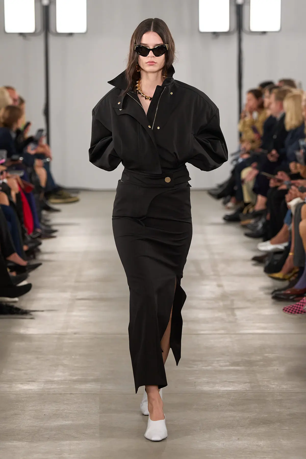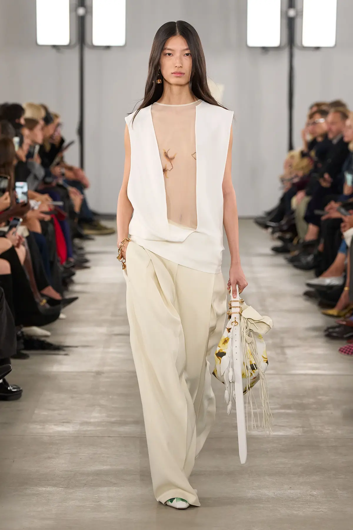 المجموعة جاءت كحلمٍ ملموس، تجمع بين الخيال والواقعية العملية لحياة المدينة. الأقمشة بدت وكأنها تتحاور مع الضوء والحركة: الأورجانزا ظهرت بشكل مفاجئ في معطف ترنش كلاسيكي، أو في بنطلونات شفافة تحافظ على بنيتها، أو كبطانة خفيفة تُعيد ابتكار الخياطة الخارجية. في المقابل، شكّل صوف doublé وجلد القفازات الناعم أرضية صلبة تُعيد التوازن، عبر قطع أساسية يمكن إعادة تركيبها إلى ما لا نهاية.