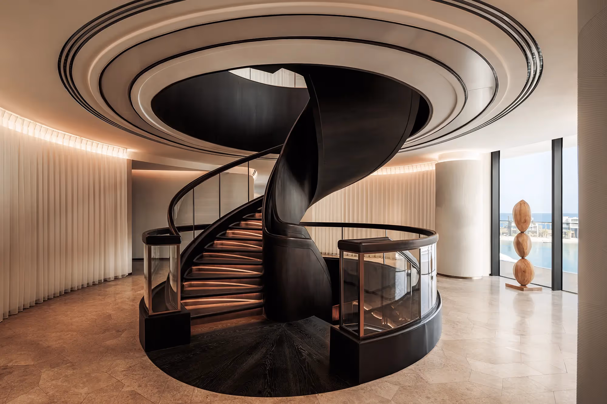 شعرت أن التصميم هنا لا يكتفي بتزيين المكان، بل يشارك فعليًا في تعزيز التجربة، وكأن العمارة الداخلية نفسها تتحول إلى جزء من رحلة الاسترخاء.
