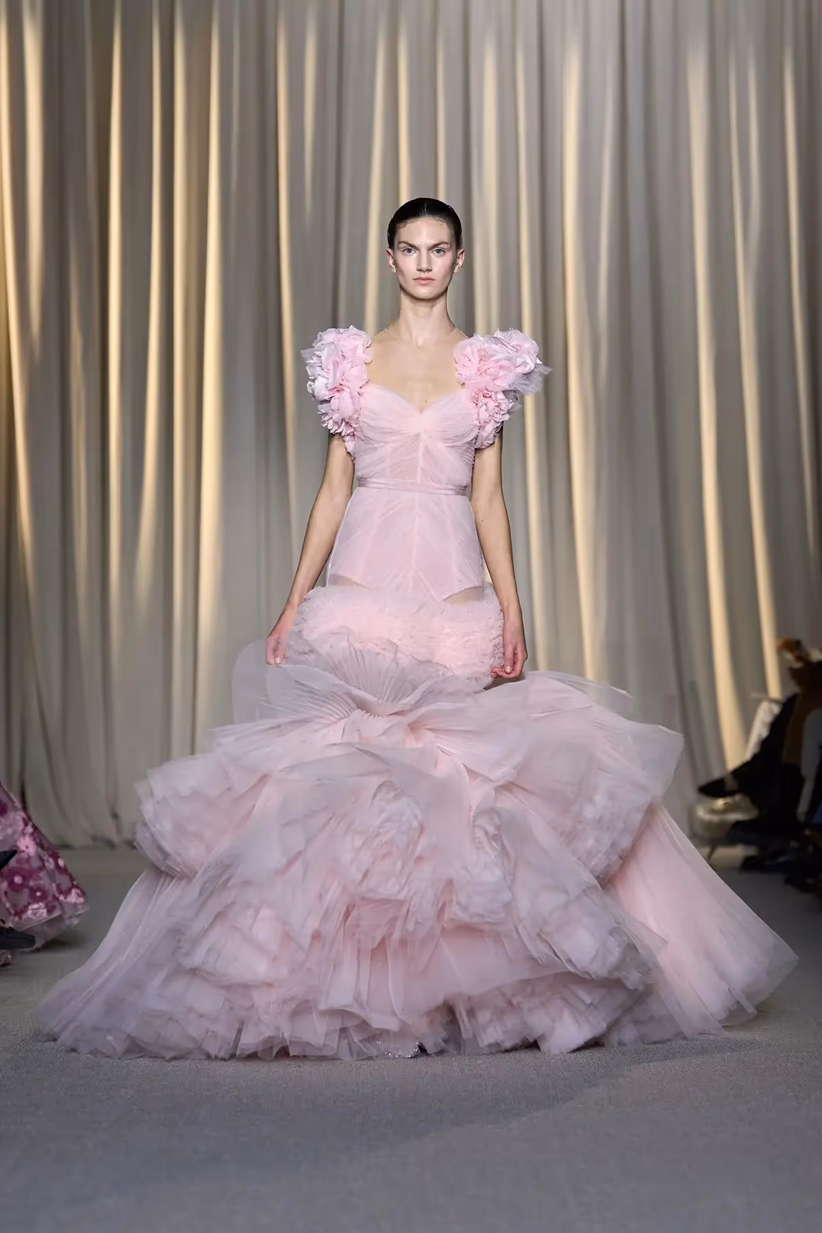 من المعتاد أن تختتم الأزياء الراقية عروضها بفستان الزفاف المنتظر، سواء كان كلاسيكيًا باللون الأبيض، أو مزينًا بدرجات الباستيل، أو بالأحجار البراقة.