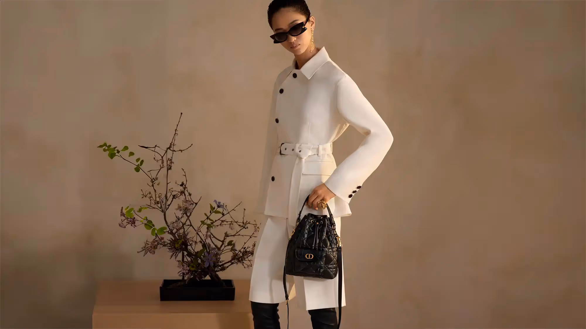 تكريمًا لـ"كاثرين"، شقيقة "كريستيان ديور"، ثمّ إثراء ابتكارات "ديور كارو" Dior Caro في مجموعة "ديور" Dior لخريف 2025 بحقيبة "باكيت" Bucket الجديدة.