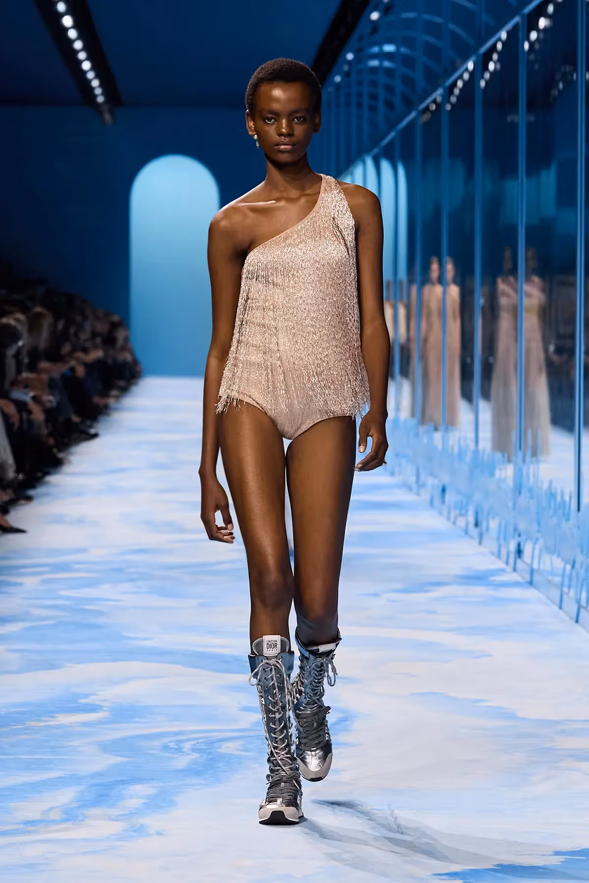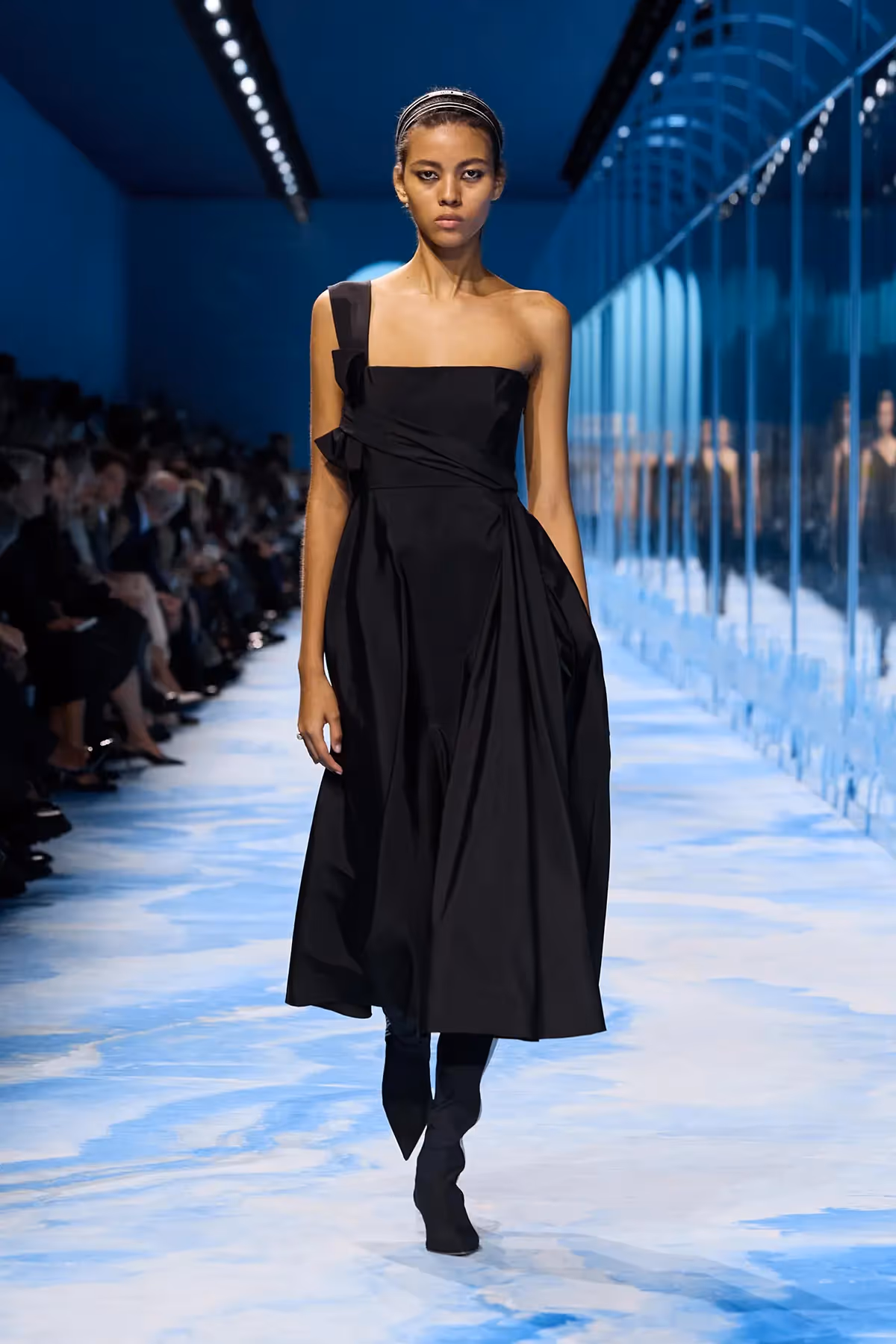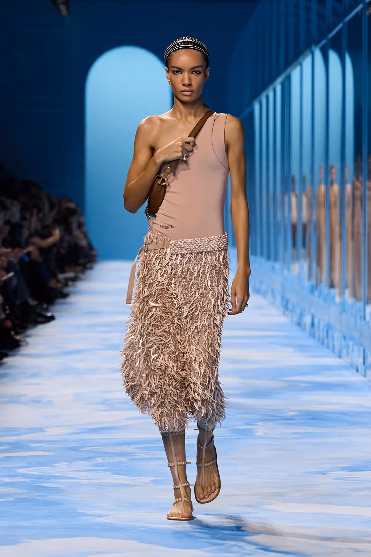 هدفت "ماريا غراتسيا كيوري" في مجموعة الألبسة الجاهزة من "ديور" Dior لربيع وصيف 2025 إلى إعادة تعريف معنى اللباس، وكأنّ كل تصميم قد أُعطيَ الفرصة ليبوح بقِصّته ويكشف عن الجهد الحرفي الدؤوب الذي سبق تشكيله. ومن خلال تخطّي الحدود الفاصلة بين القطعة النهائيّة والعملية الإبداعيّة، تسعى المديرة الإبداعيّة للعودة إلى جذور الأزياء، مسلّطةً الضوء على العلاقة التي تربط الجسد بالملابس التي تكسوه، مع تحقيق الانسجام بين الرؤية والوظيفة. ومن هذاالمنطلق، جمعت "ماريا" قصّات مختلفة من الأرشيف وأعادت ابتكارها، بدءاً بفستان "أمازون" Amazon الذي صمّمه"كريستيان ديور" لموسم خريف وشتاء 1951-1952، فقد استحضرت من خلاله تلك الشخصية الأنثويّة الأسطوريّة، المعروفة بقوّة روحها، ليكون بذلك نقطة مرجعيّة لمفهوم الأنوثة المستقلّة والشجاعة.