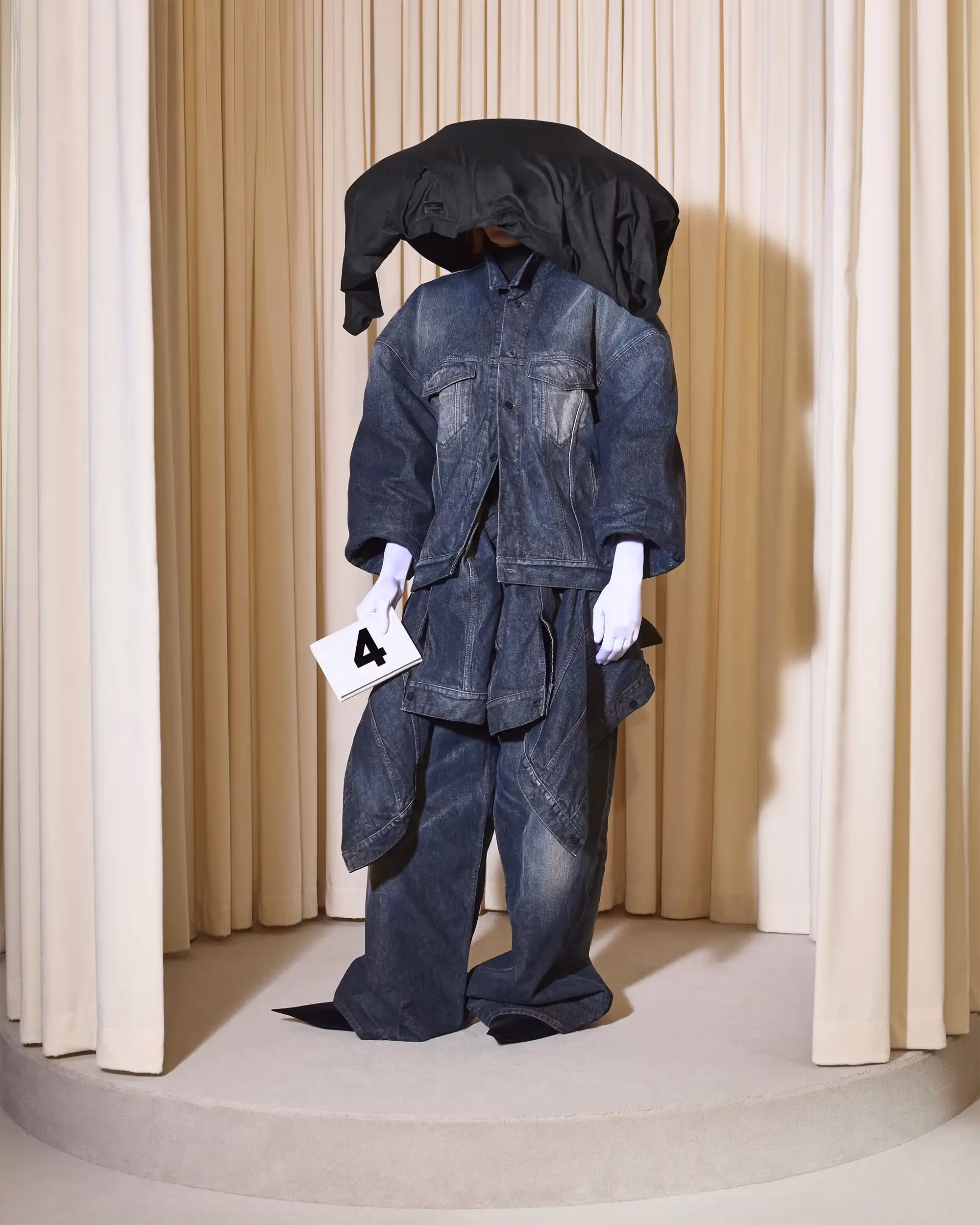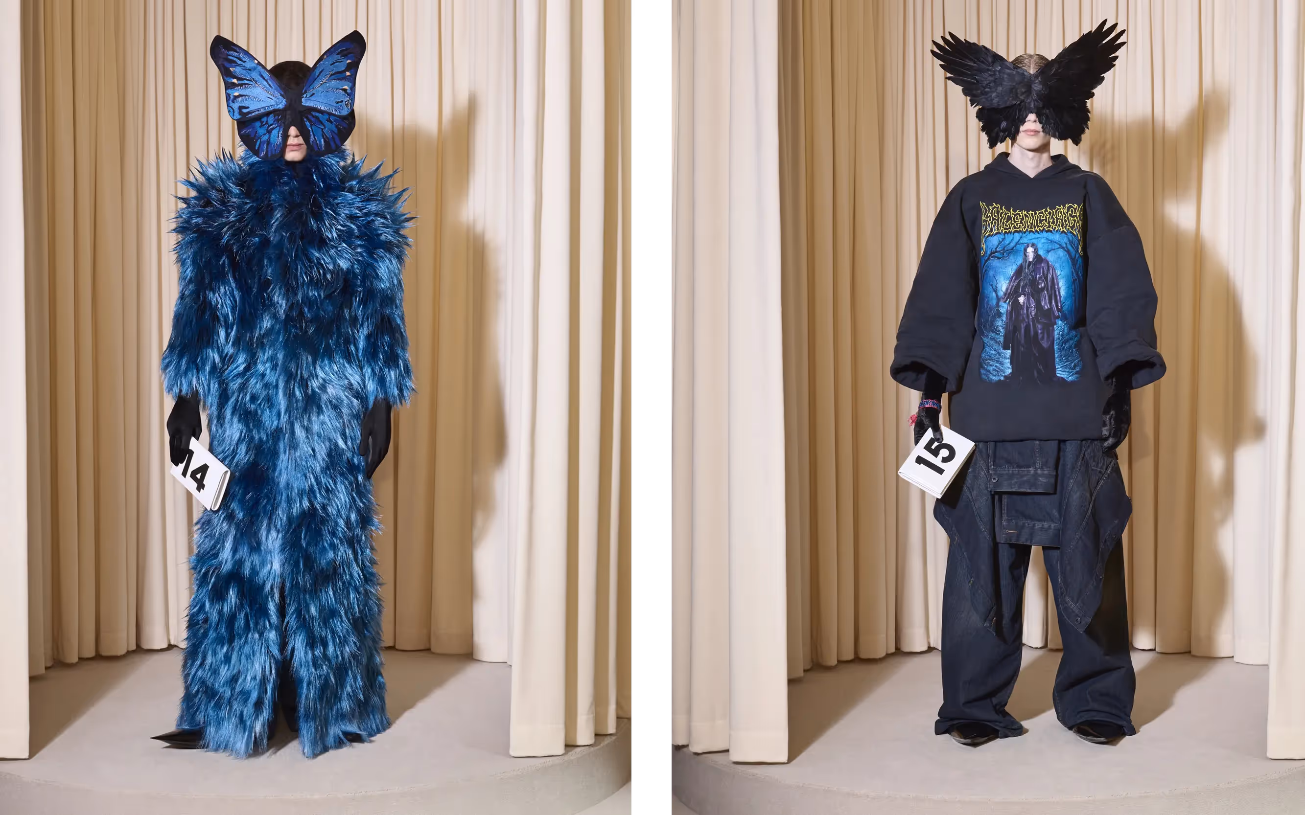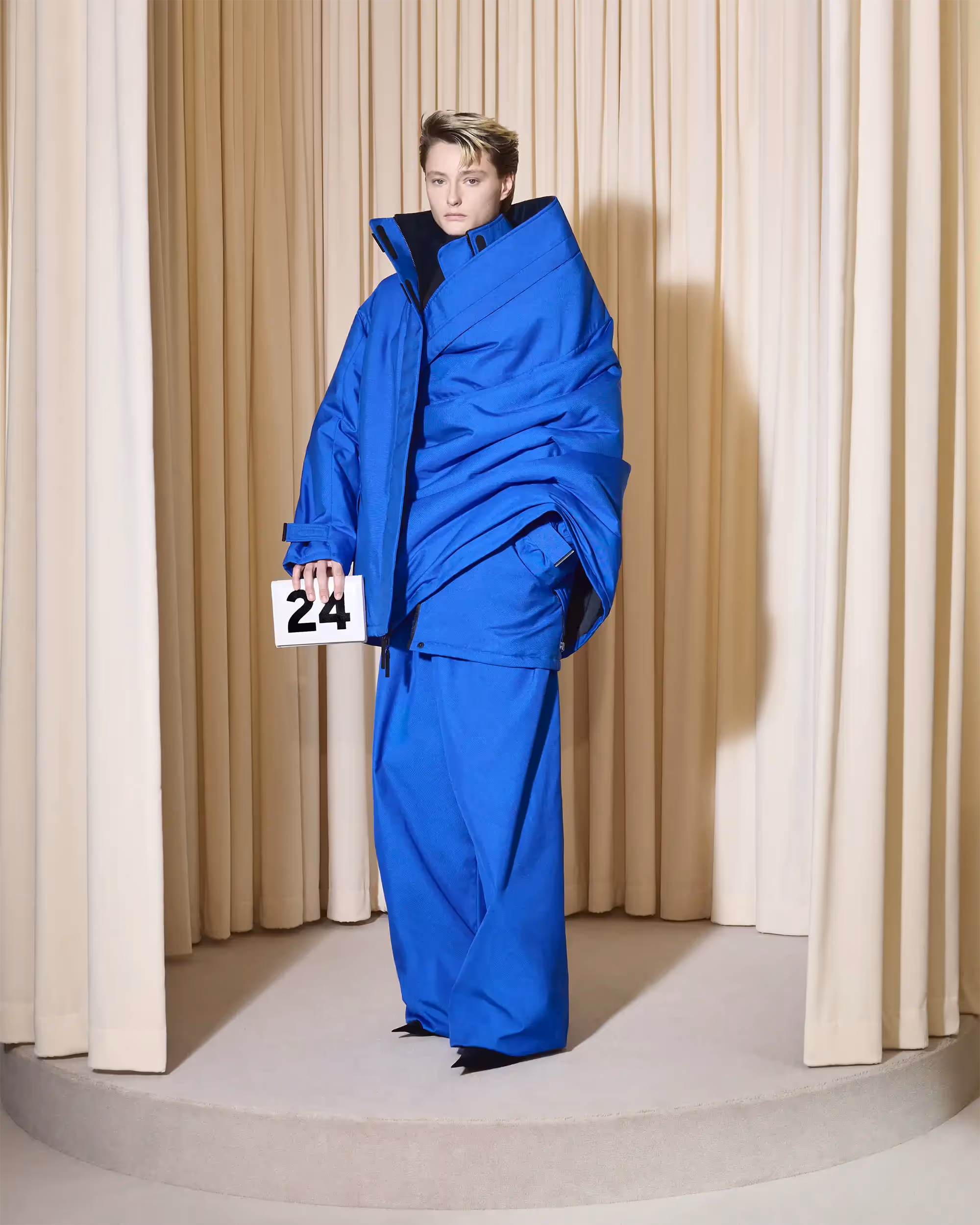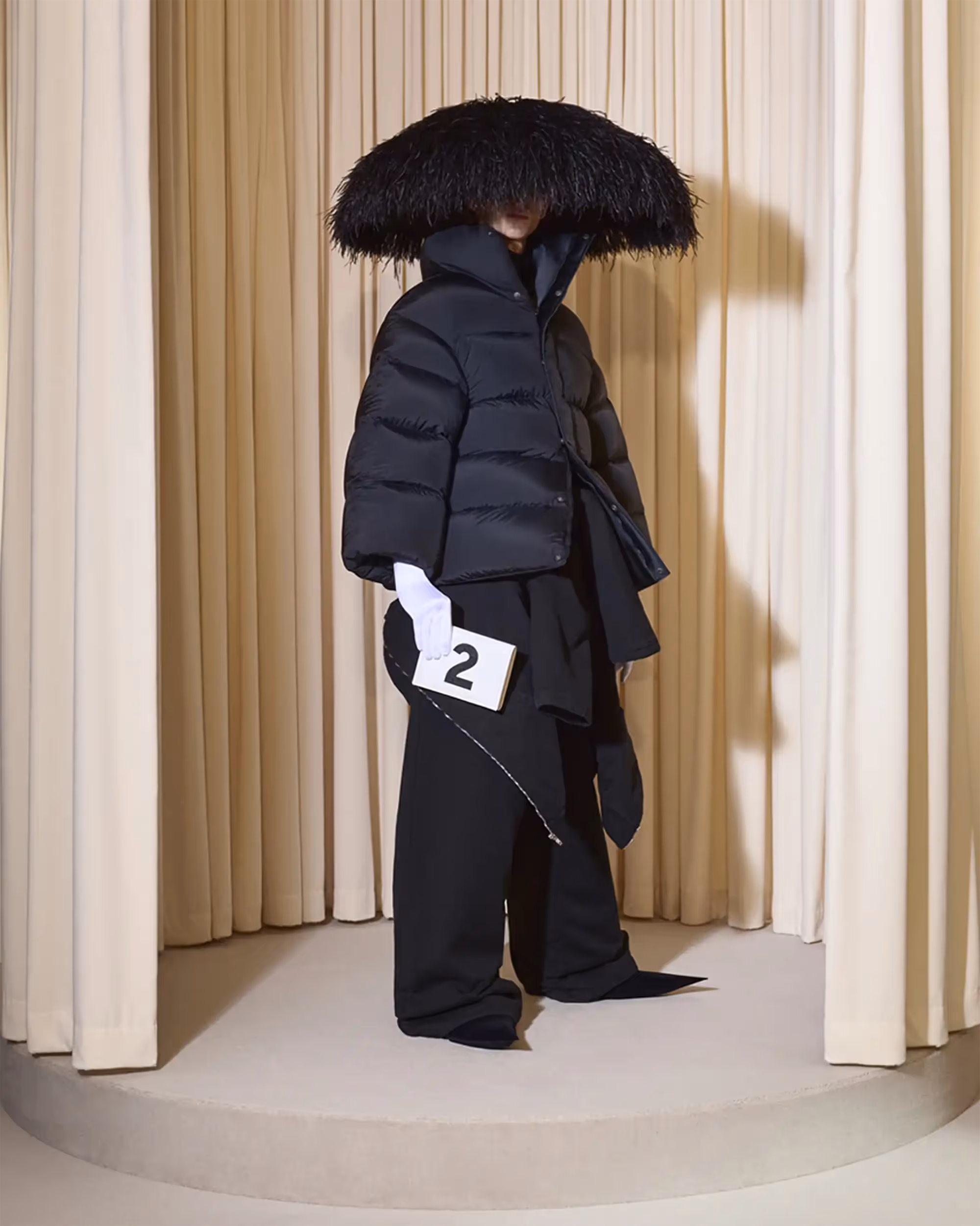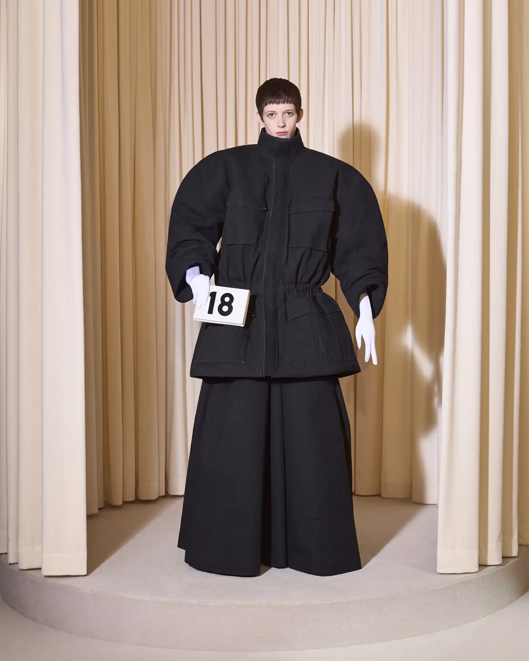 These four omnipresent codes were 3/4 length sleeves, afocus on profile of silhouette and cocoon shapes, extravagant and at timeseccentric headwear and fabric innovation.