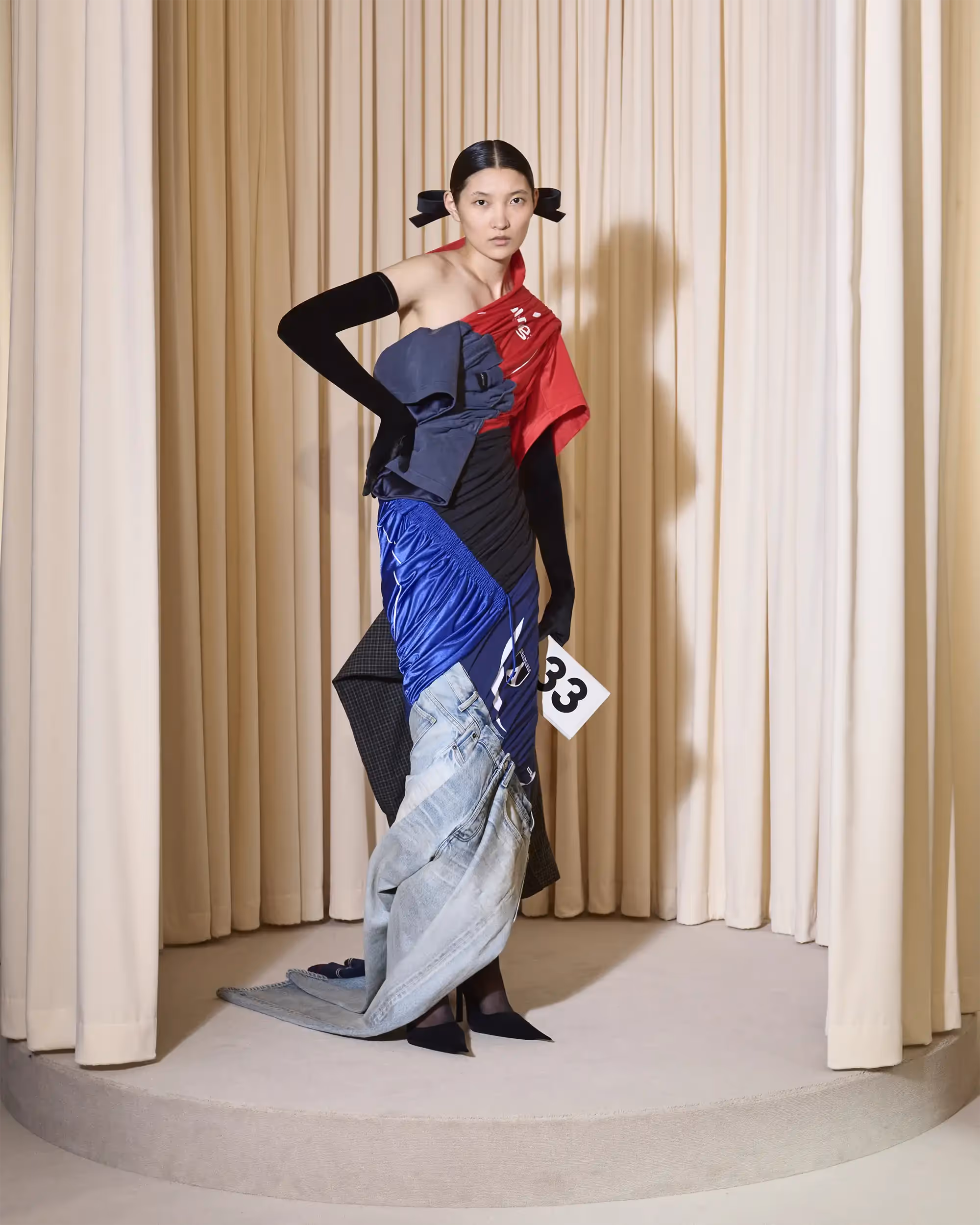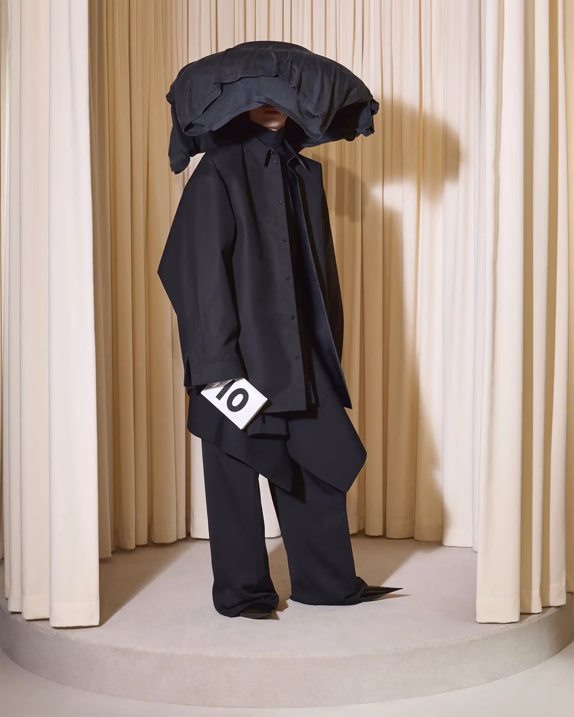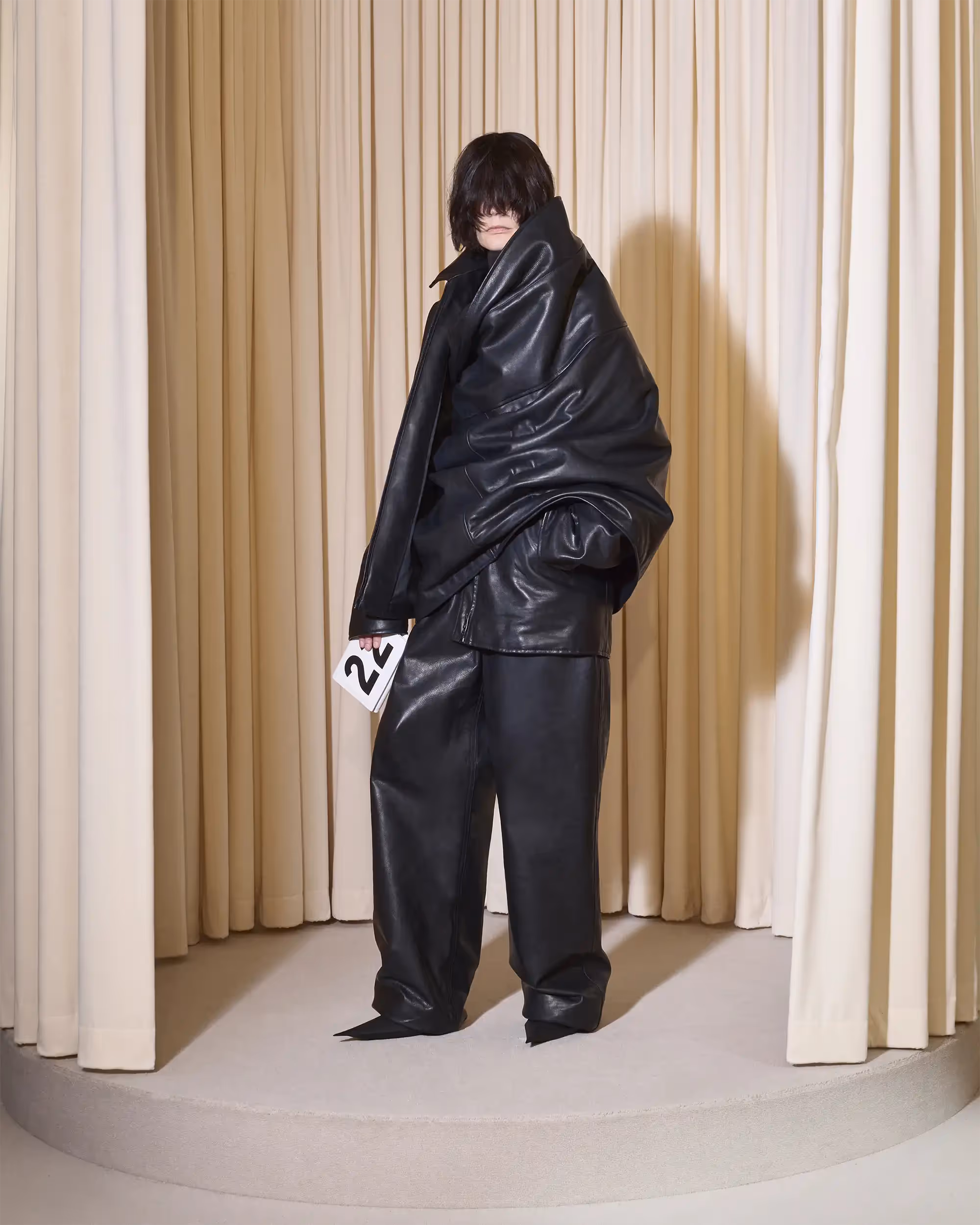 This couture collection is a tribute to subculture dresscodes as important influences of my fashion vocabulary. I chose four permanentcomponents of Cristóbal Balenciaga’s last two decades of collections andapplied them on my design aesthetic in order to create a bridge betweenBalenciaga’s signature elegance and silhouette and my own personal style.