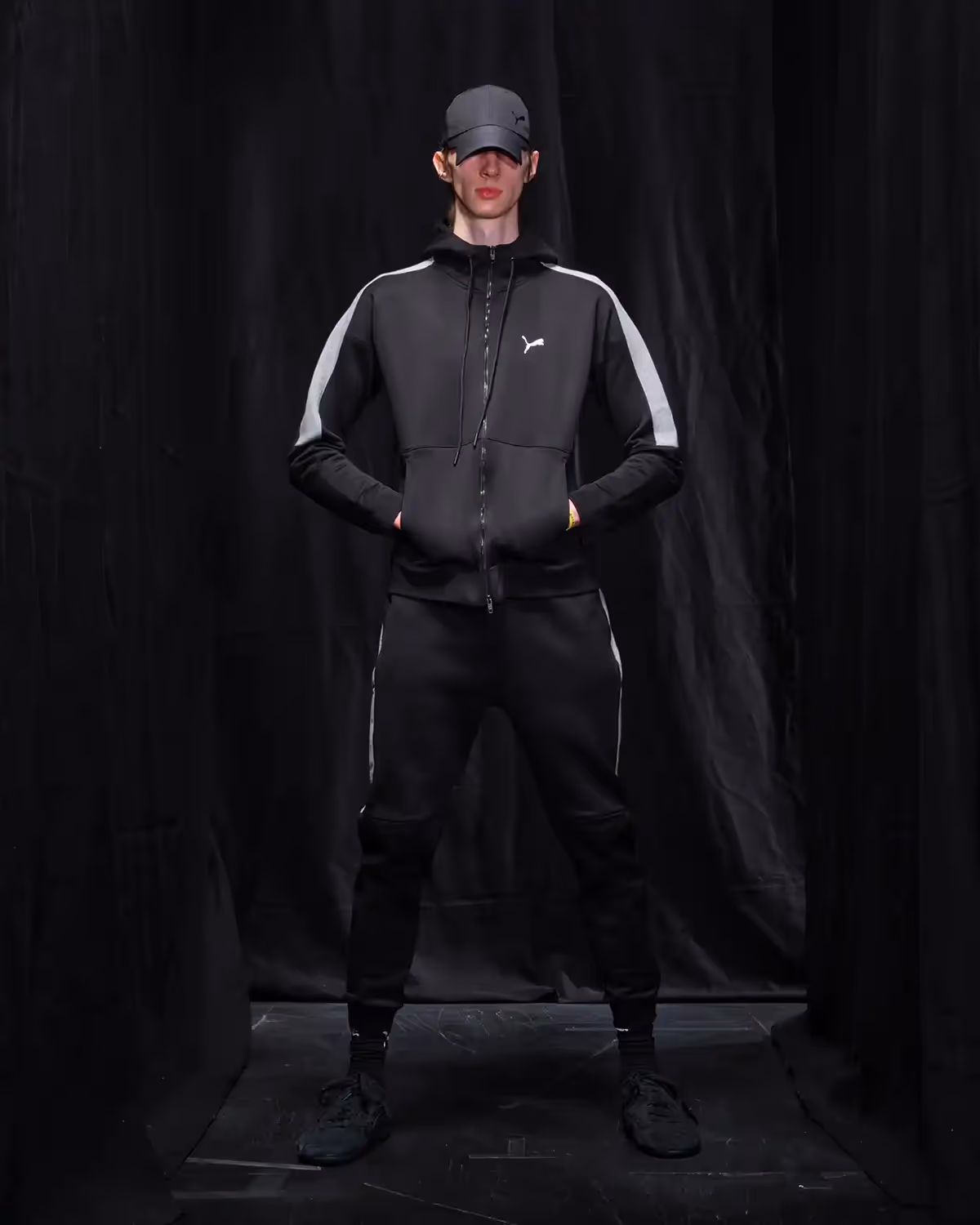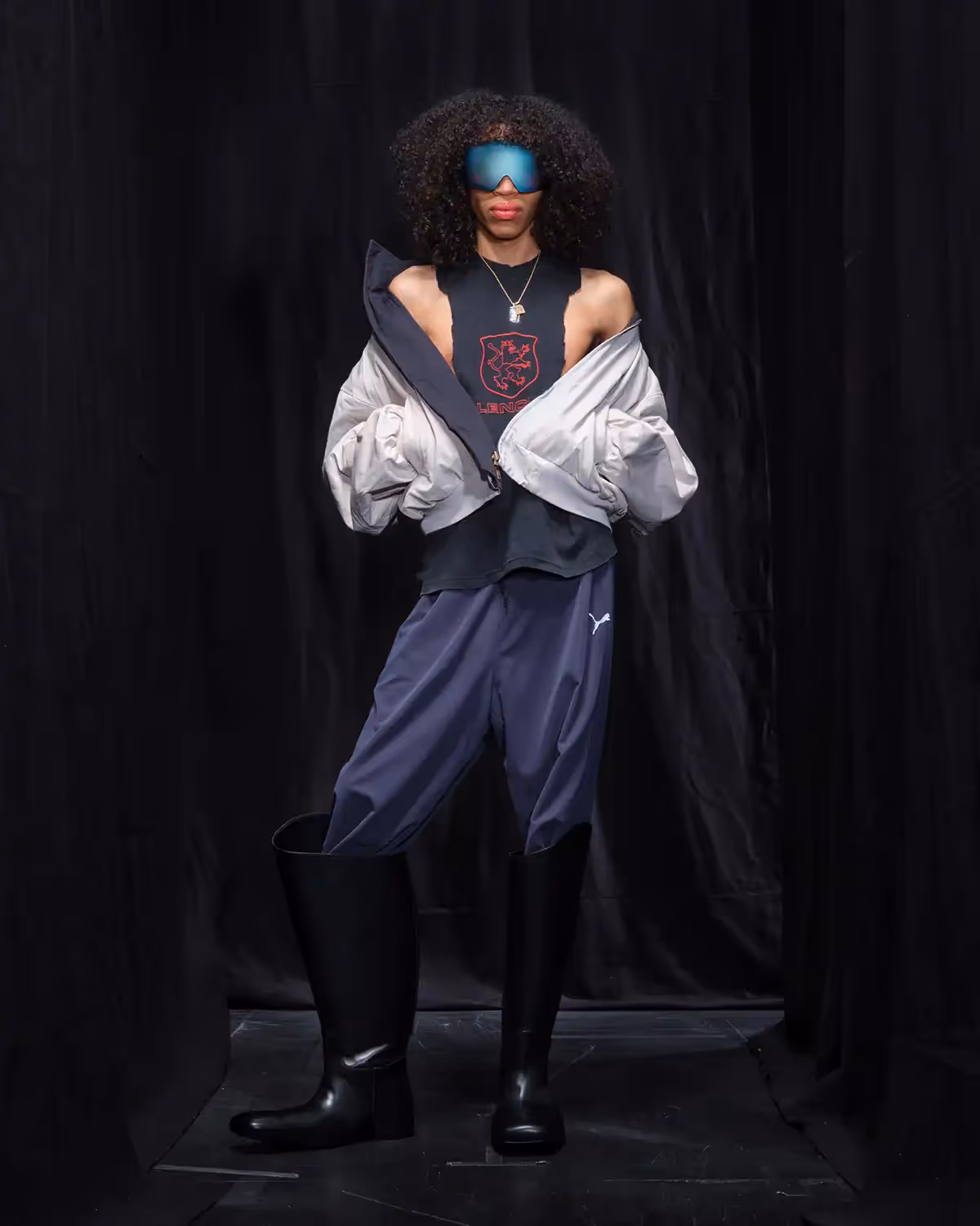 The launch is accompanied by a Balenciaga | PUMA campaign lensed by photographer Ari Versluis—known for his anthropological photography series Exactitudes made with Ellie Uyttenbroek—who recently captured the Balenciaga by Demna, “Exactitudes” Spring 26 lookbook, Demna’s final ready-to-wear collection for the House. The campaign features models Diede, Tianee, Brooks, Yav and Joe in videos and still images wearing looks from the collaboration, styled with pieces from the Winter 25 collection. In the videos, the models perform high-intensity gabber dance styles set against the serene soundtrack of Françoise Hardy’s Tous Les Garçons et Les Filles.