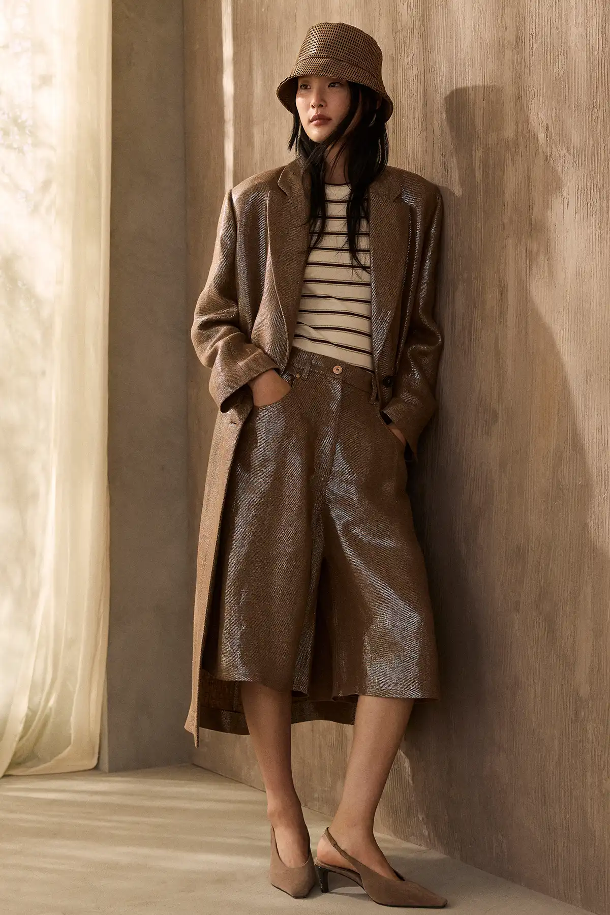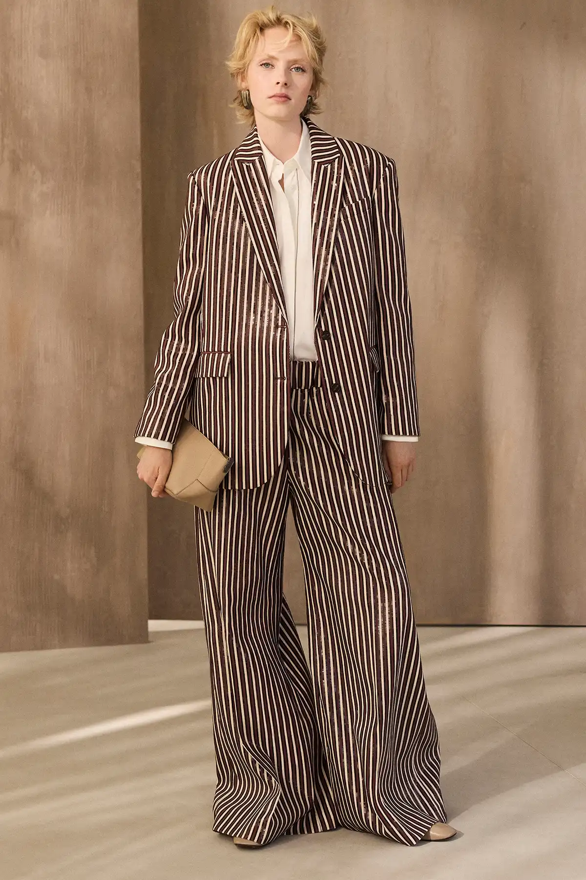 Earth is the beginning, the very essence of the brand and its enduring values. From sand to white clay and earthy browns, the colors create a rich natural palette filled with warmth and stability. Tweed fabrics, bold patterns, and needle punched textures add tangible depth, giving each piece a sense of balance between simplicity and meticulous craftsmanship.